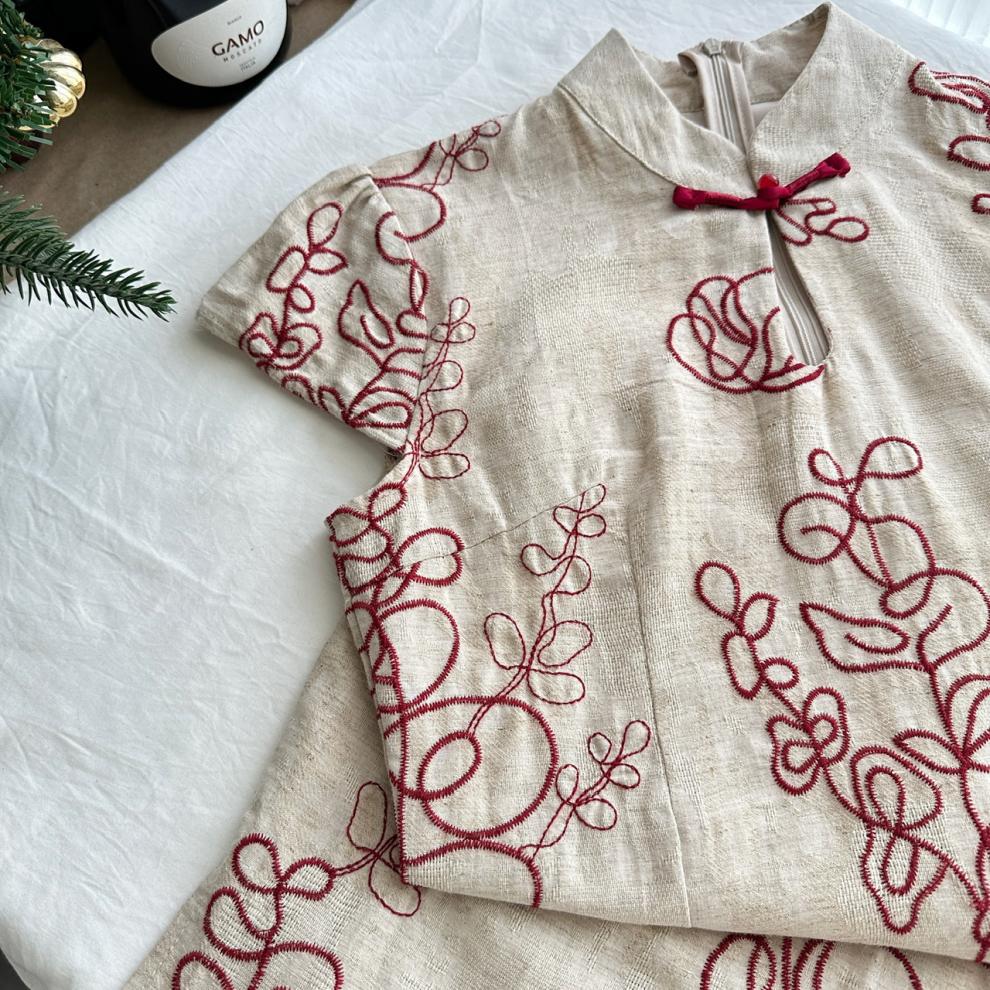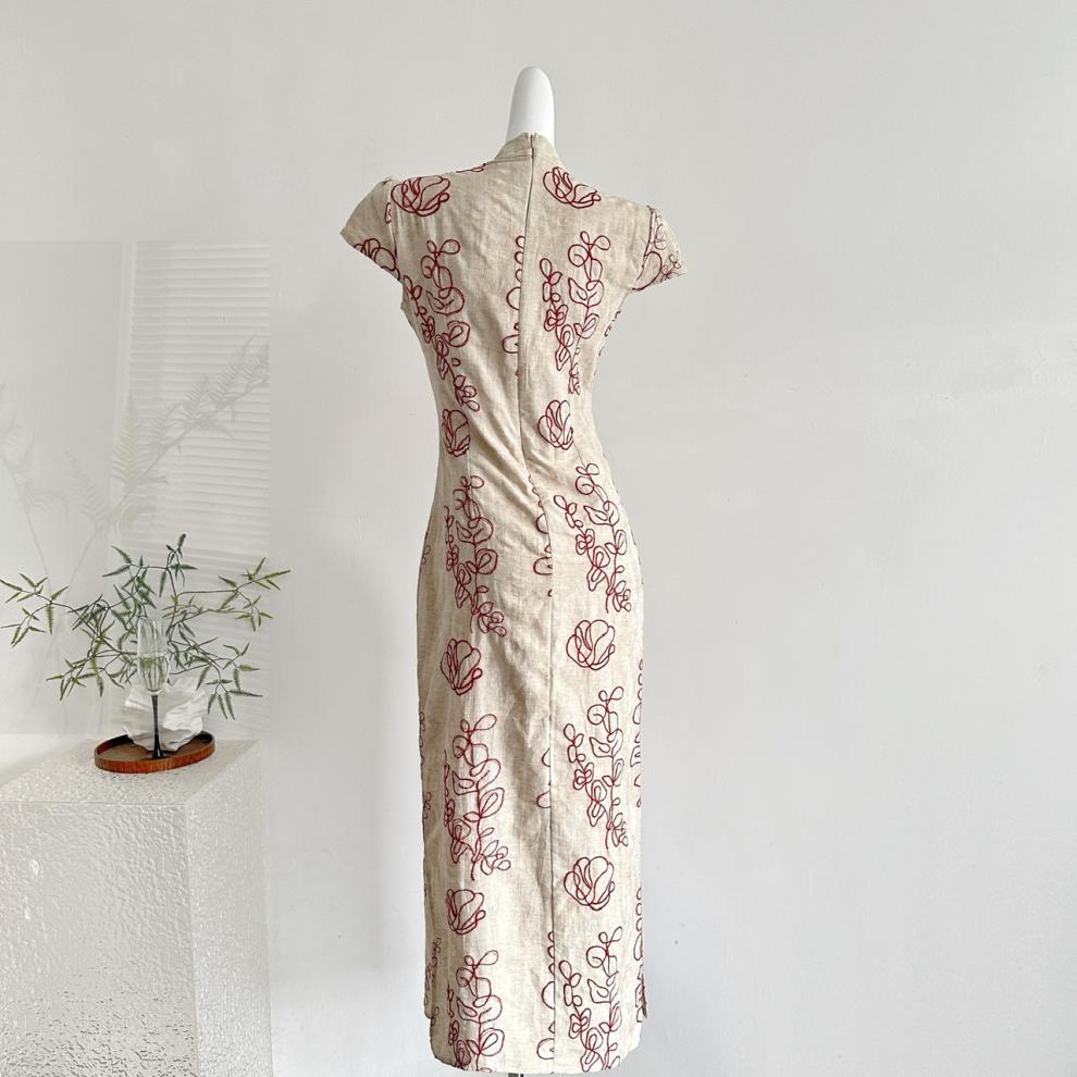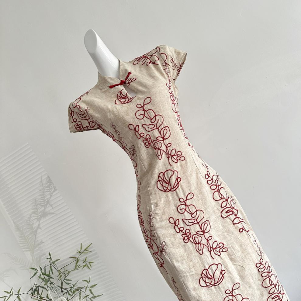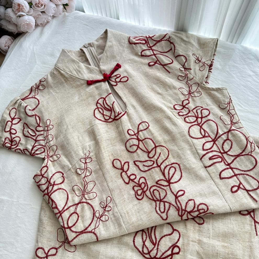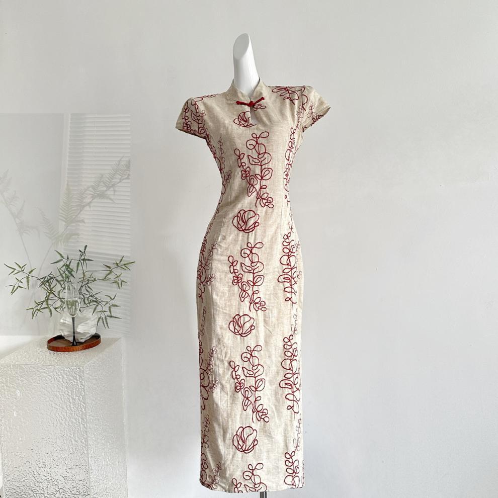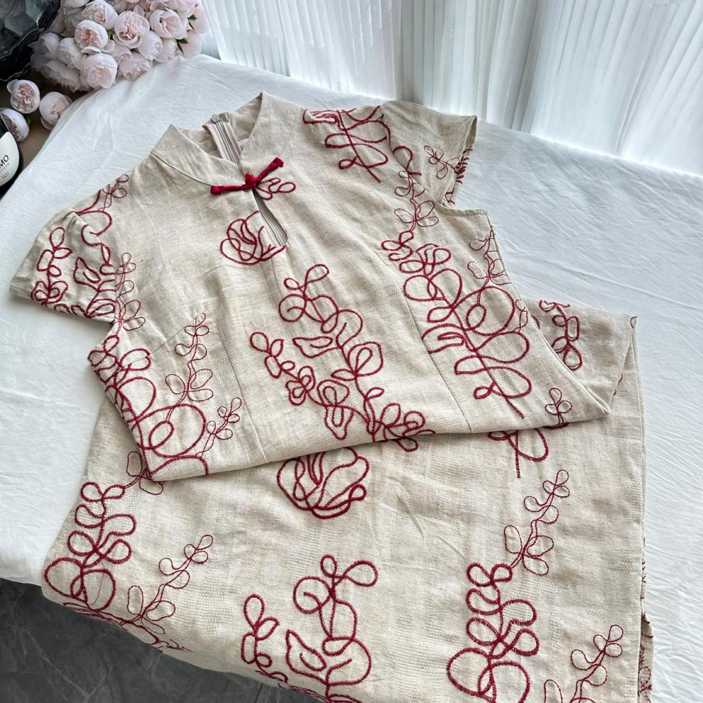 Nuevo Estilo Chino Estilo Nacional Bordado Cheongsam Mejorado Vestido de Verano Calado para Mujer