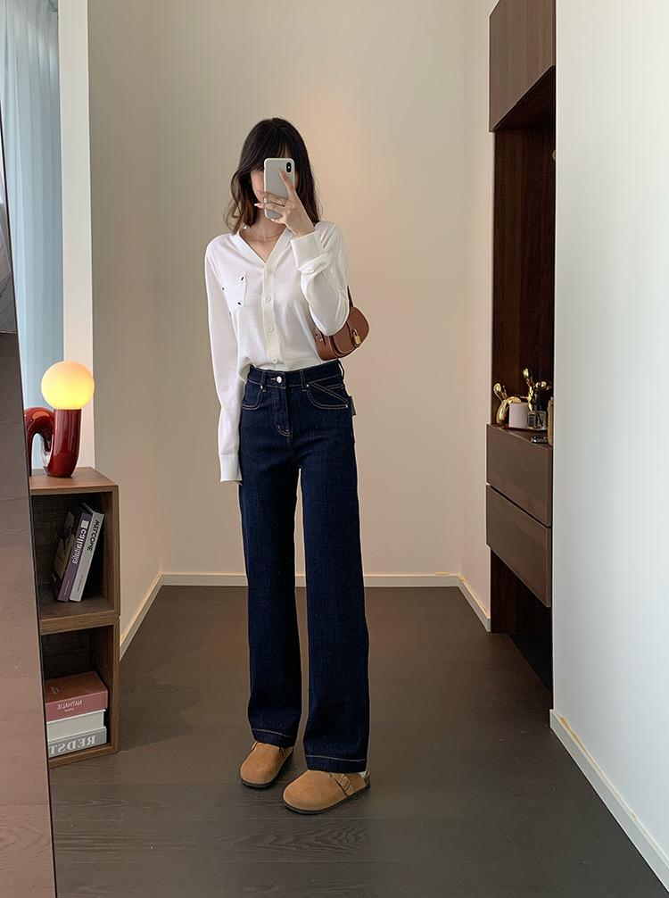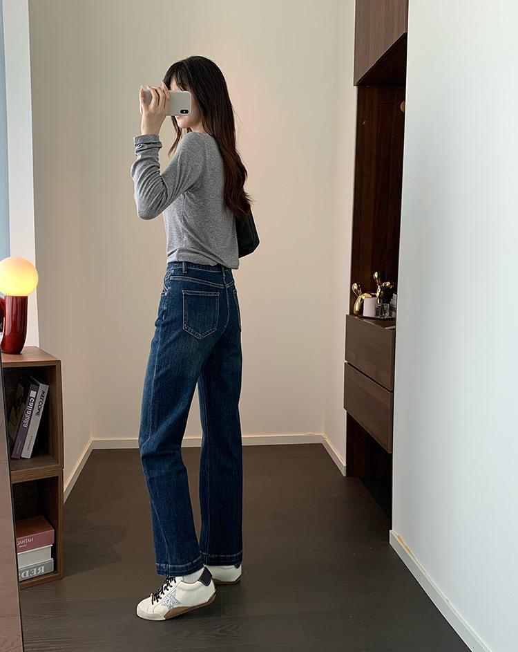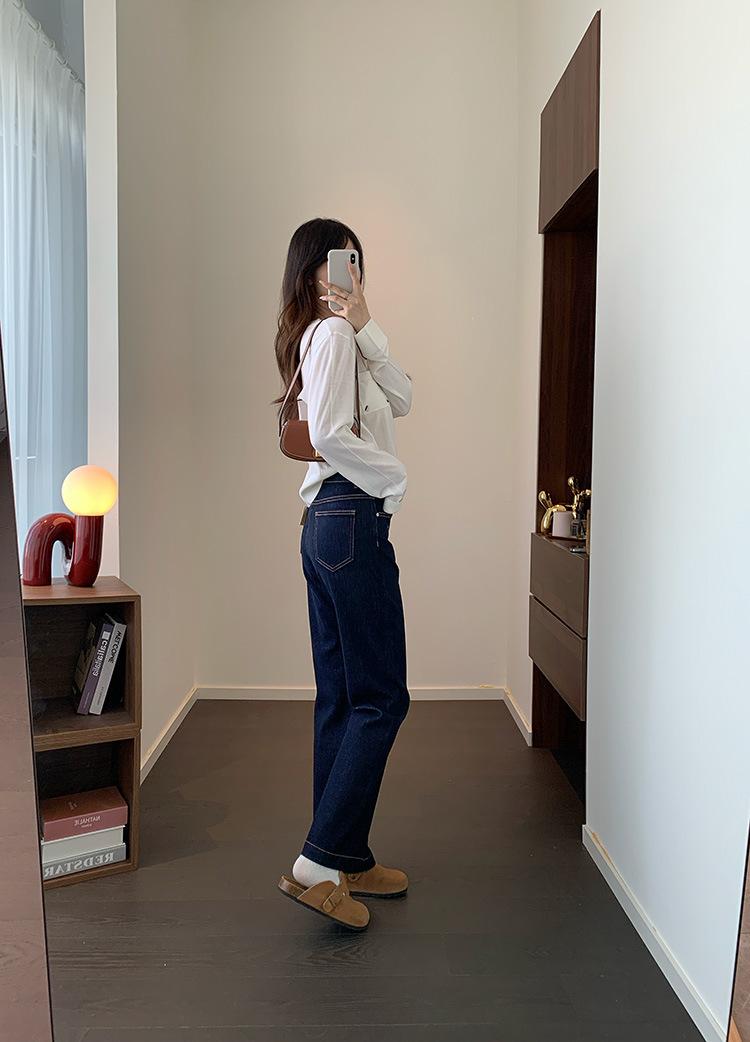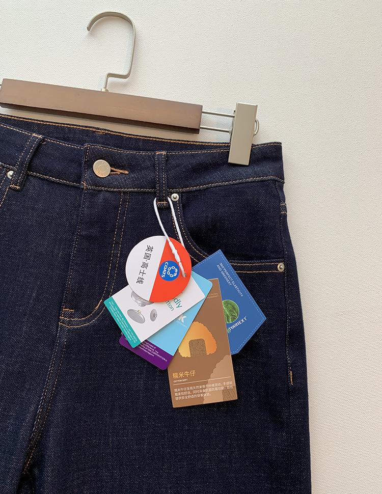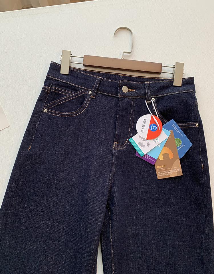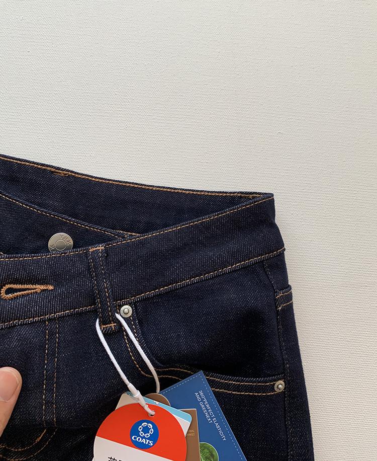 Material azul denim profundo: 64.8% algodón 3.1% spandex 24.5% fibra de poliéster 7.6% lyocell