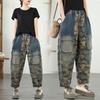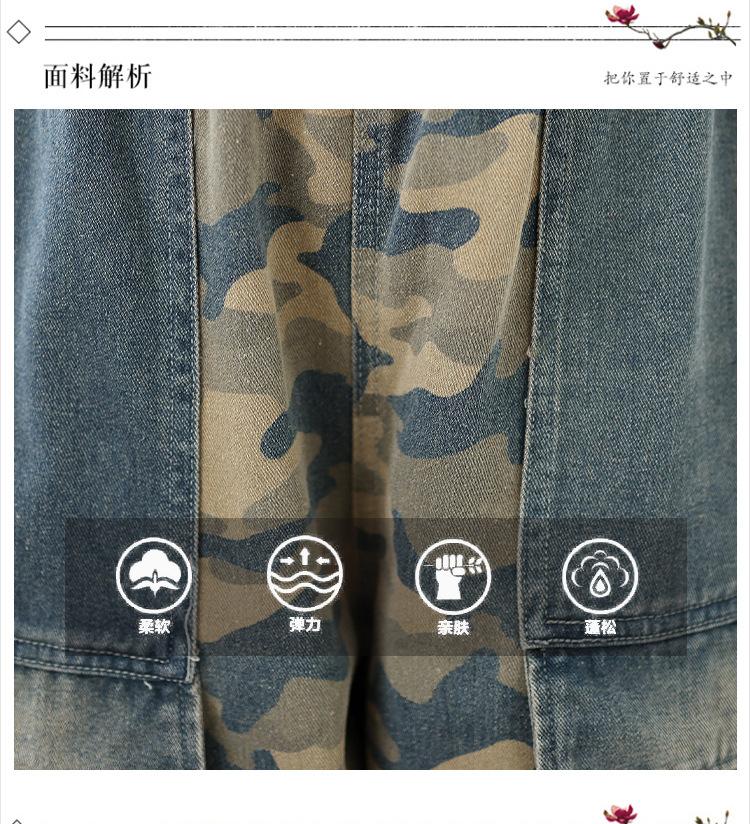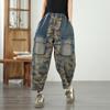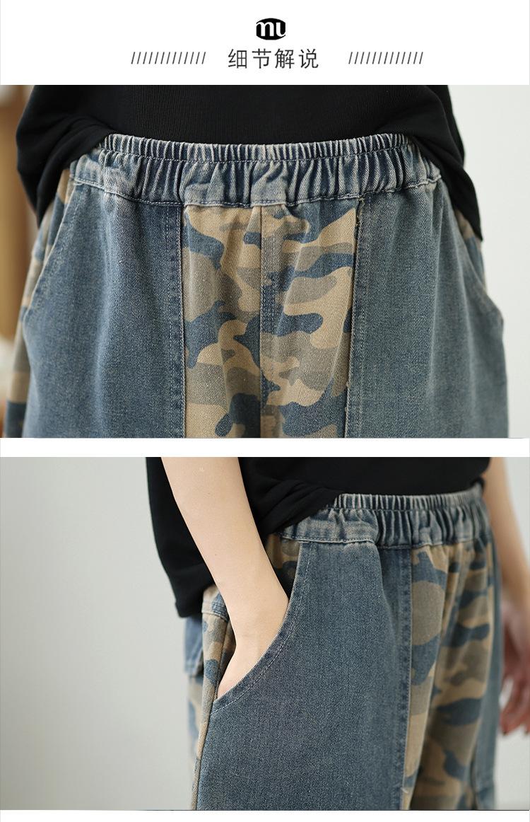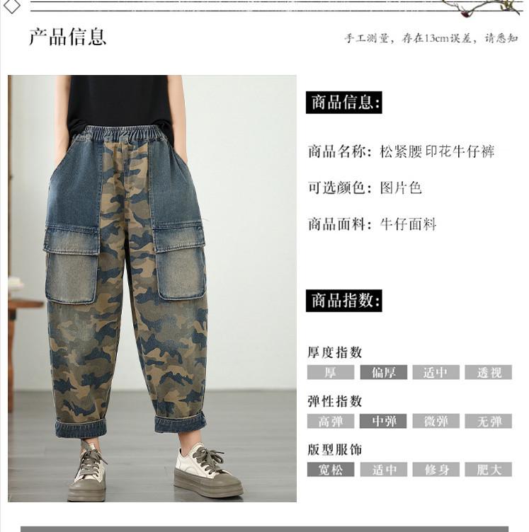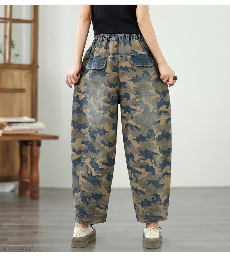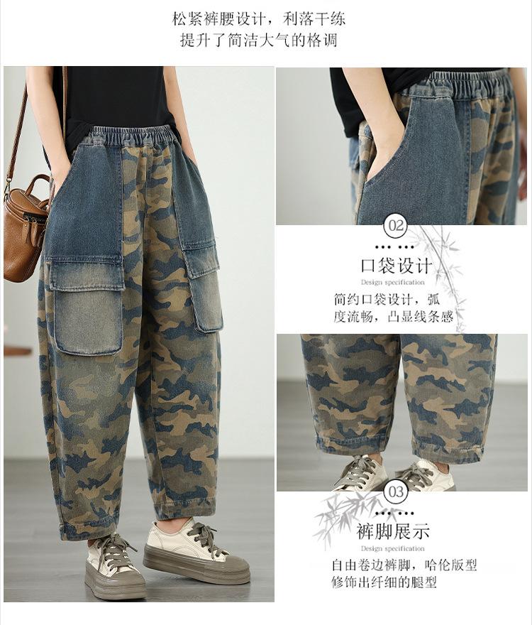 Pantalones Harem de Mezclilla de Talla Grande en Stock Color Camuflaje Bloque de Color Multibolsillos Cintura Elástica