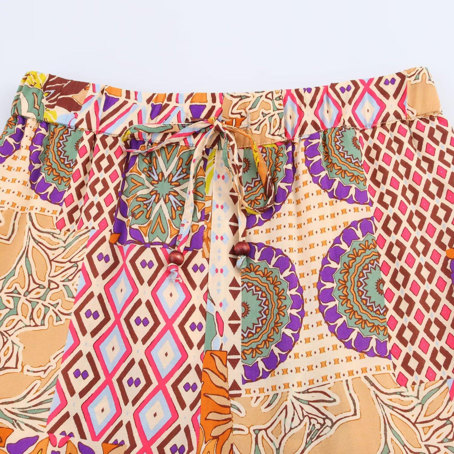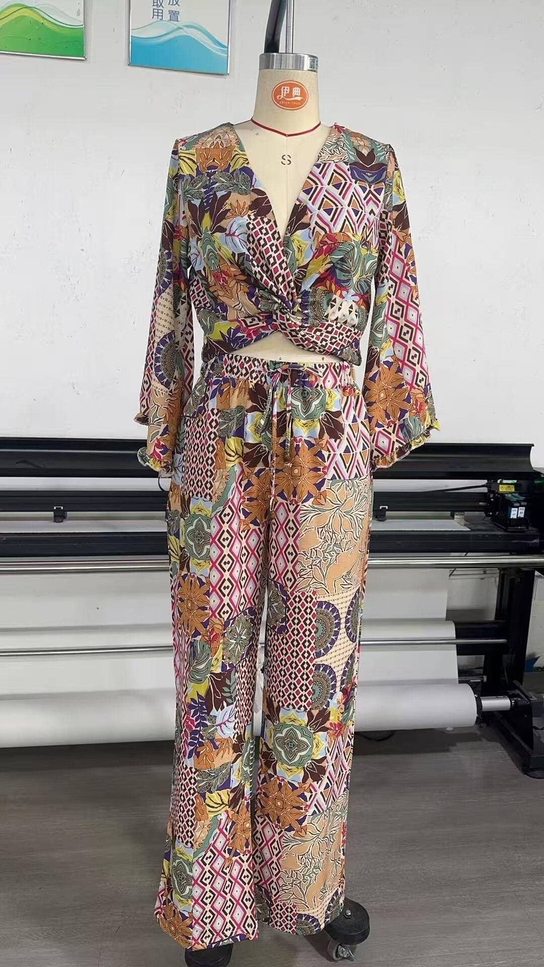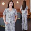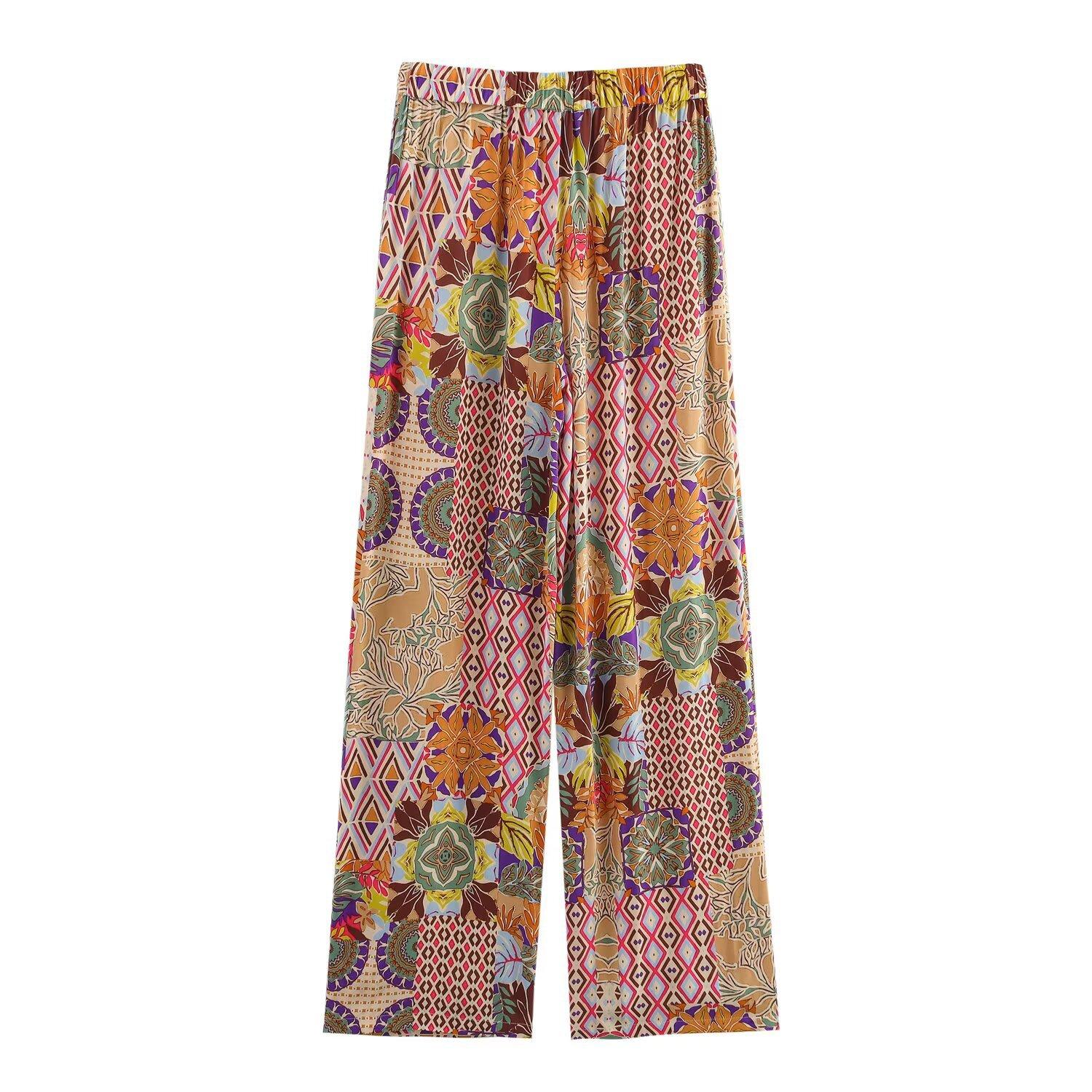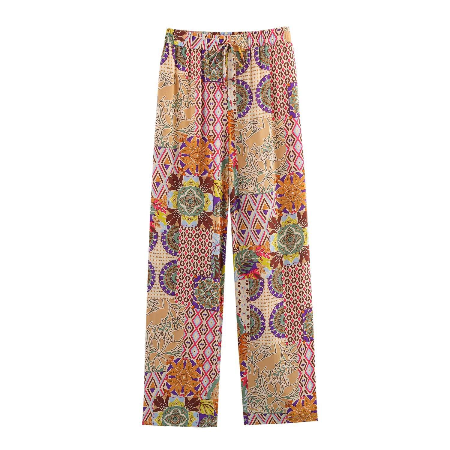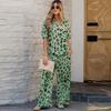 2025 Nuevo Verano Estilo Europeo y Americano Camisa Estampada Anudada + Traje de Pantalones Casuales Rectos Sueltos Slim de Cintura Alta