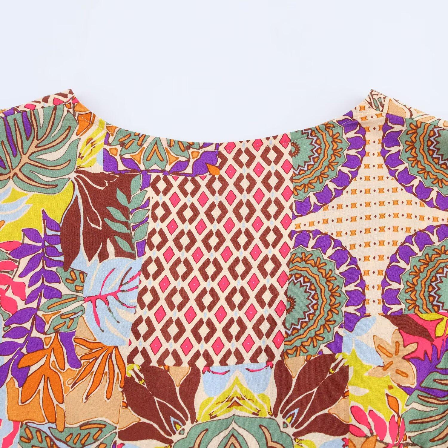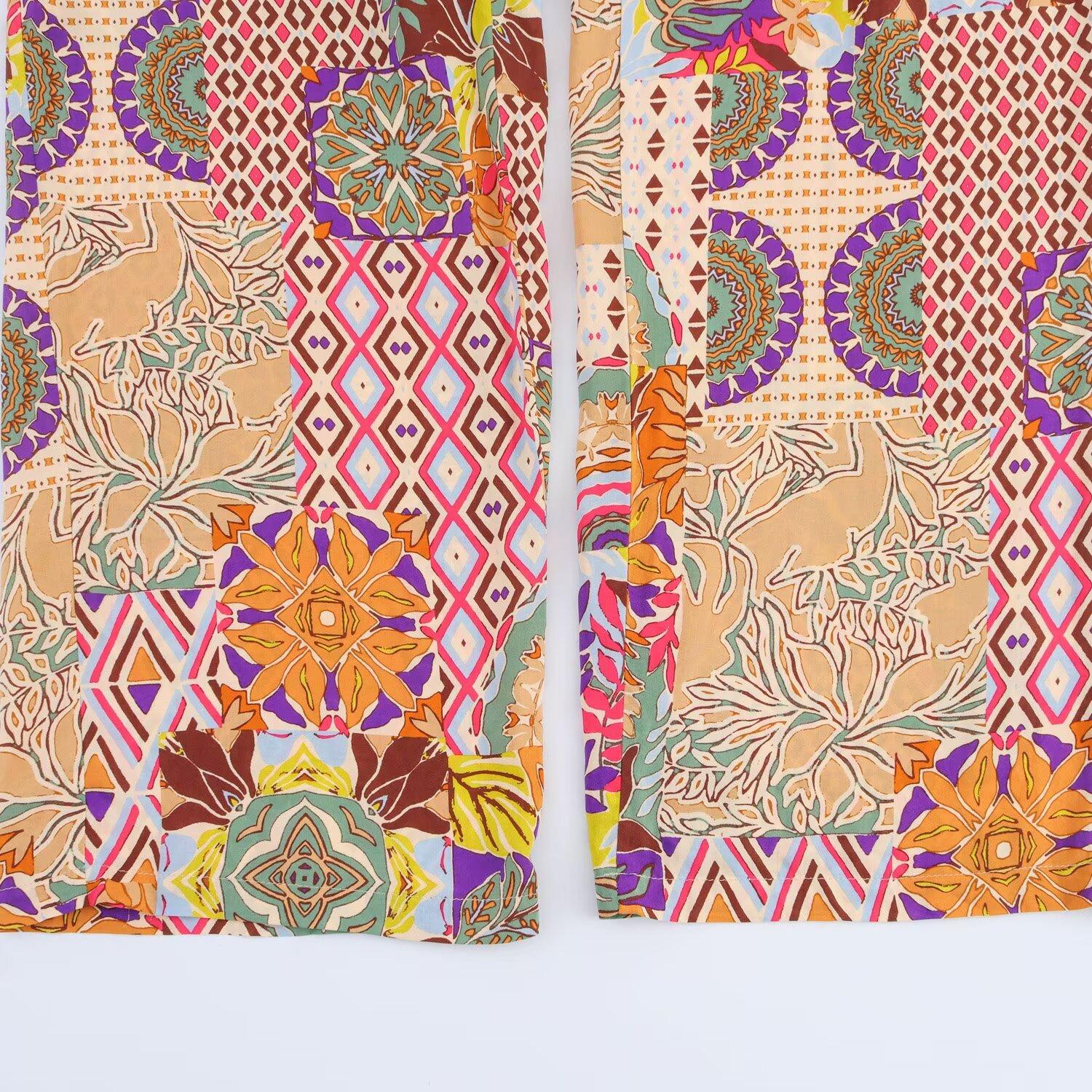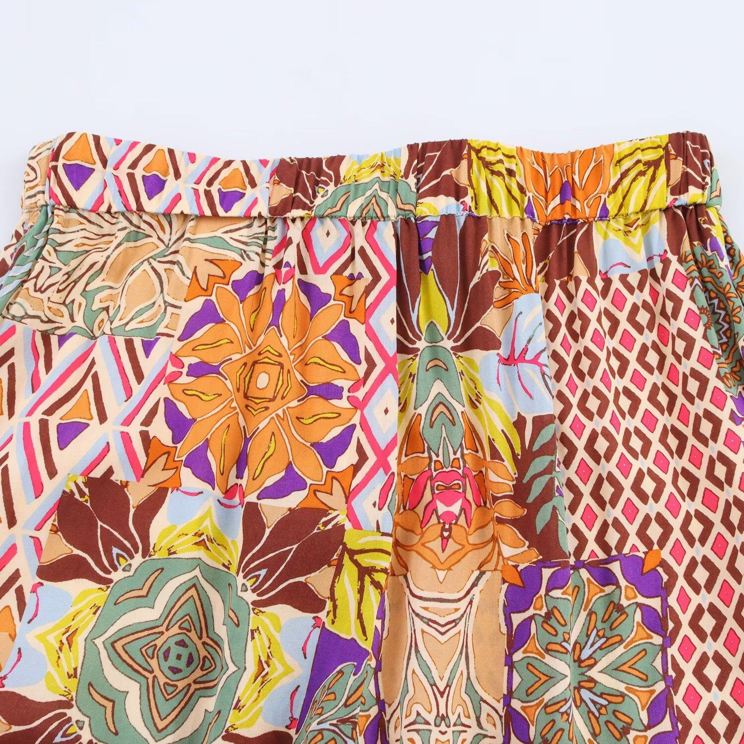 2025 Nuevo Verano Estilo Europeo y Americano Camisa Estampada Anudada + Traje de Pantalones Casuales Rectos Sueltos Slim de Cintura Alta