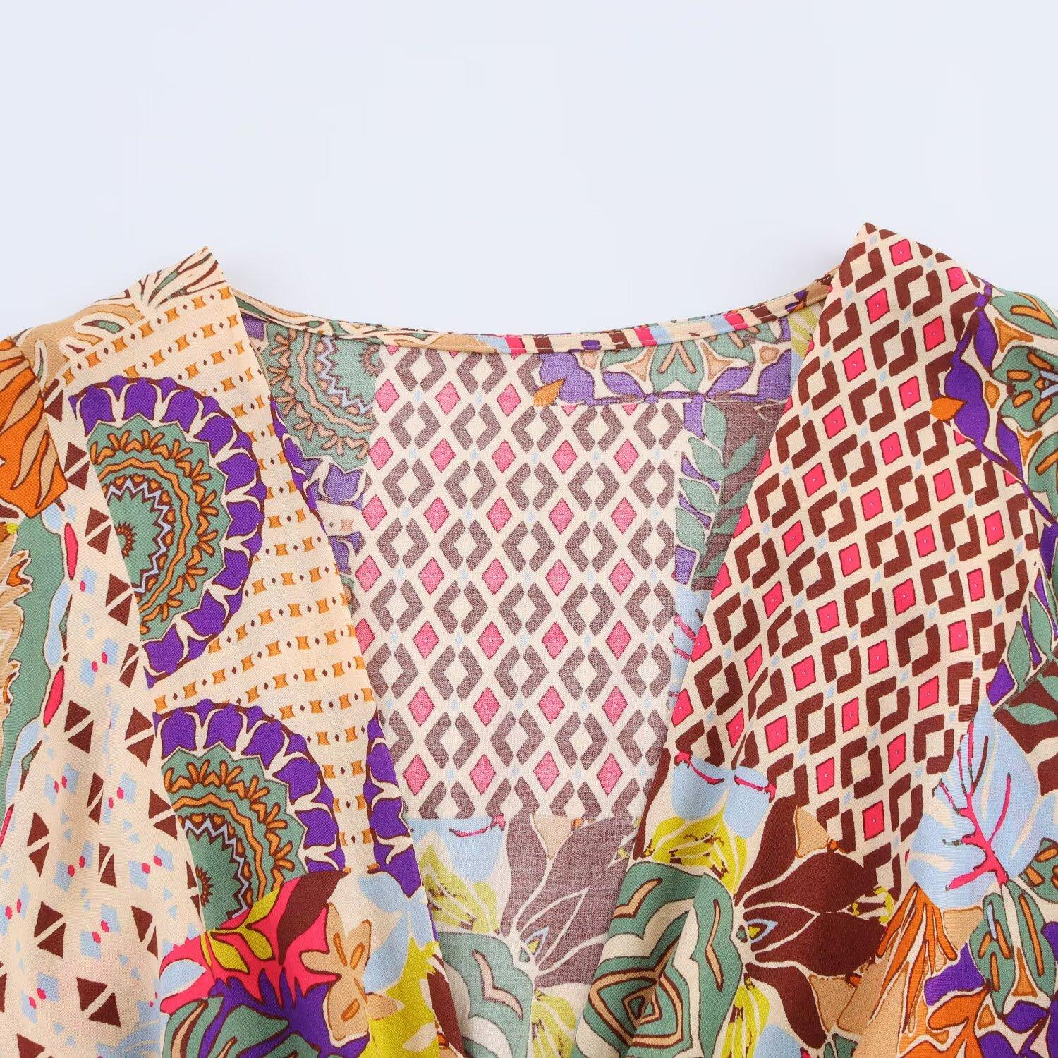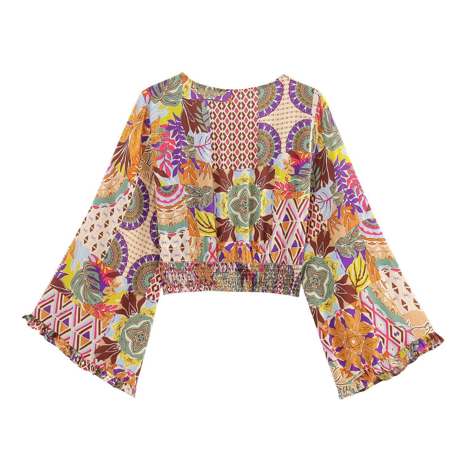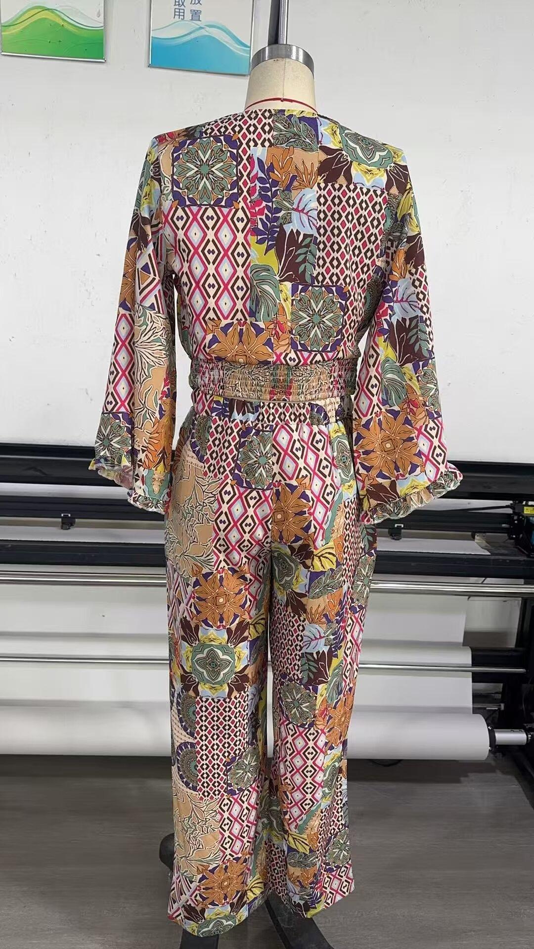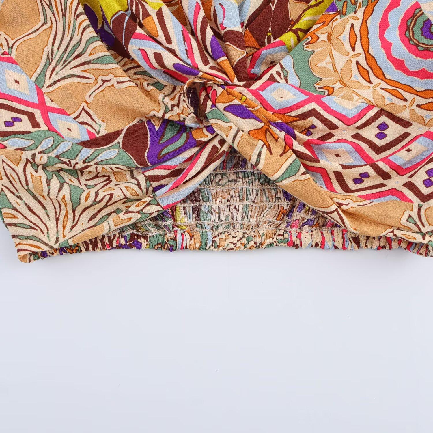 2025 Nuevo Verano Estilo Europeo y Americano Camisa Estampada Anudada + Traje de Pantalones Casuales Rectos Sueltos Slim de Cintura Alta