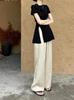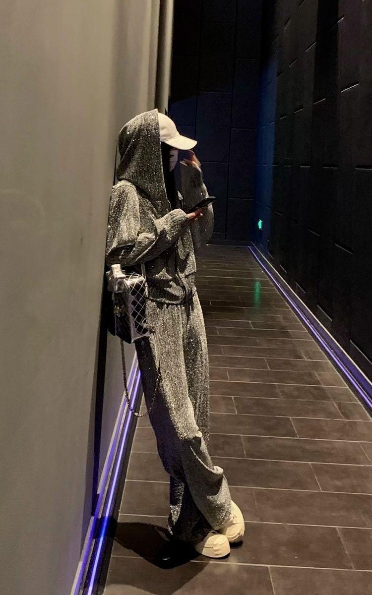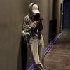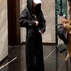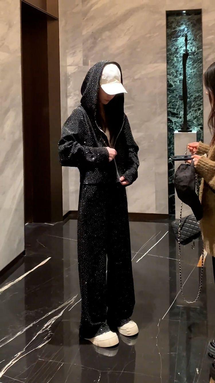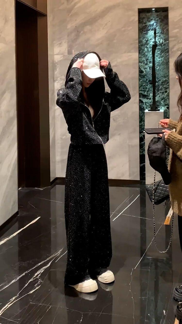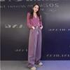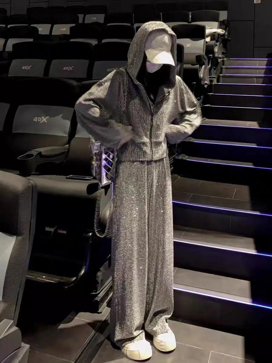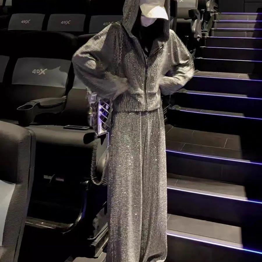 Conjunto Moderno y Casual para Mujer Otoño Nuevo Diamante de Trabajo Pesado Chica Caliente Brillante Seda Cremallera Chaqueta de Manga Larga Pantalones de Pierna Ancha Conjunto de Dos Piezas