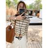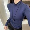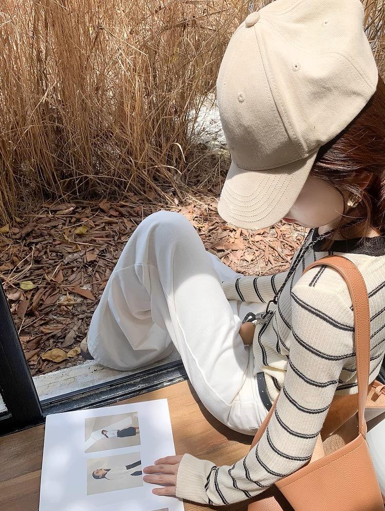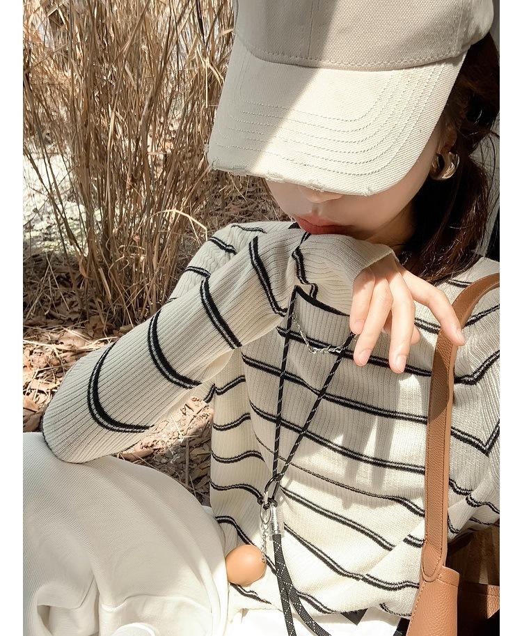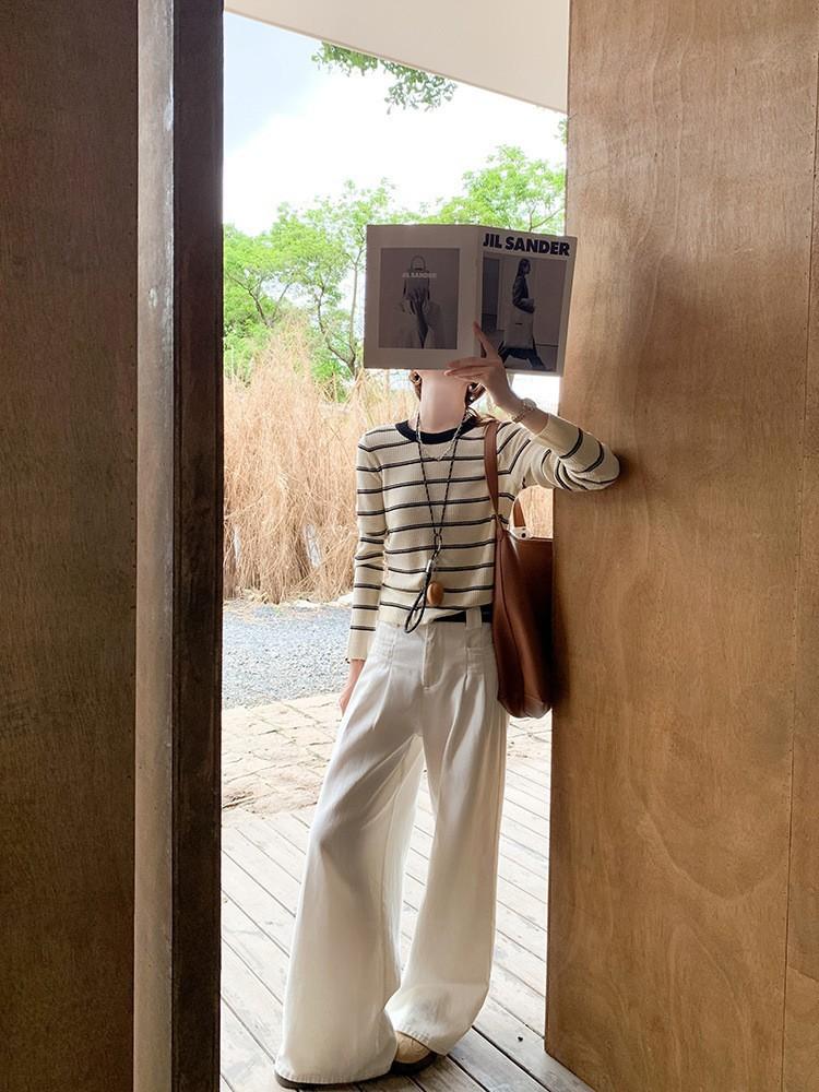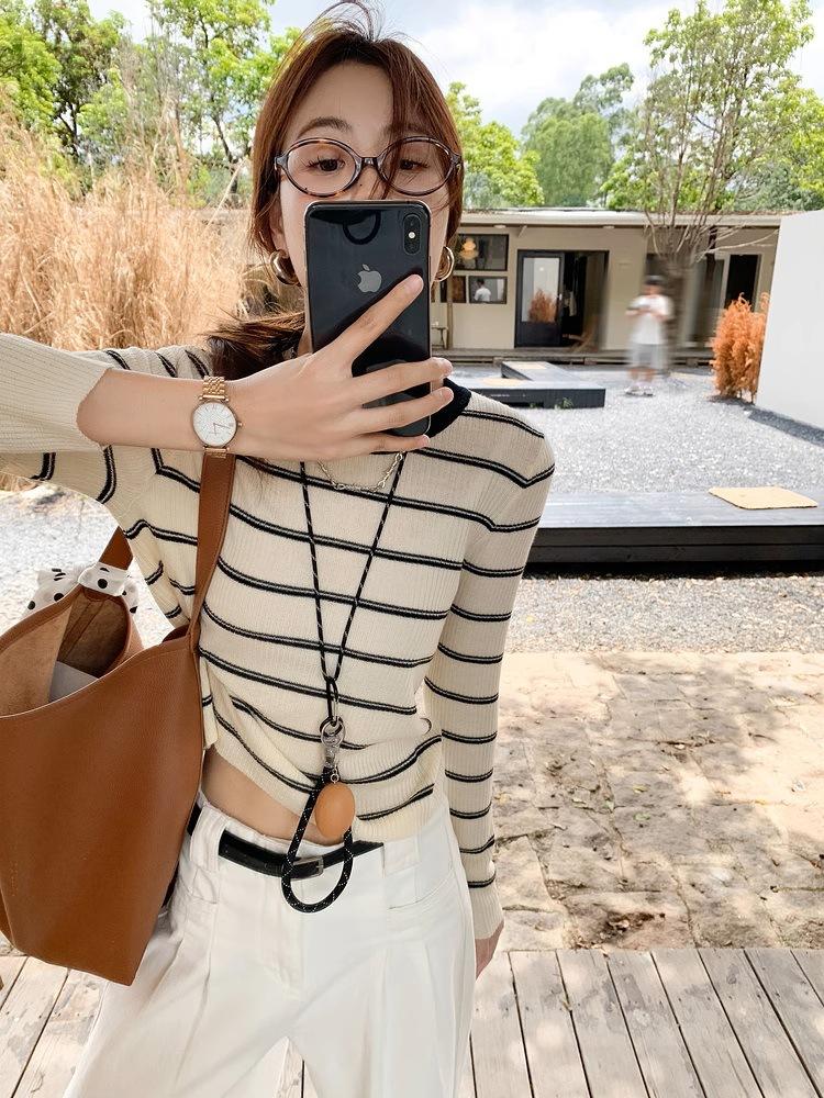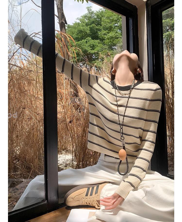 Top de rayas de manga larga para mujer, elegante de principios de otoño, nuevo, talla pequeña, diseño de camisa básica de punto ajustada