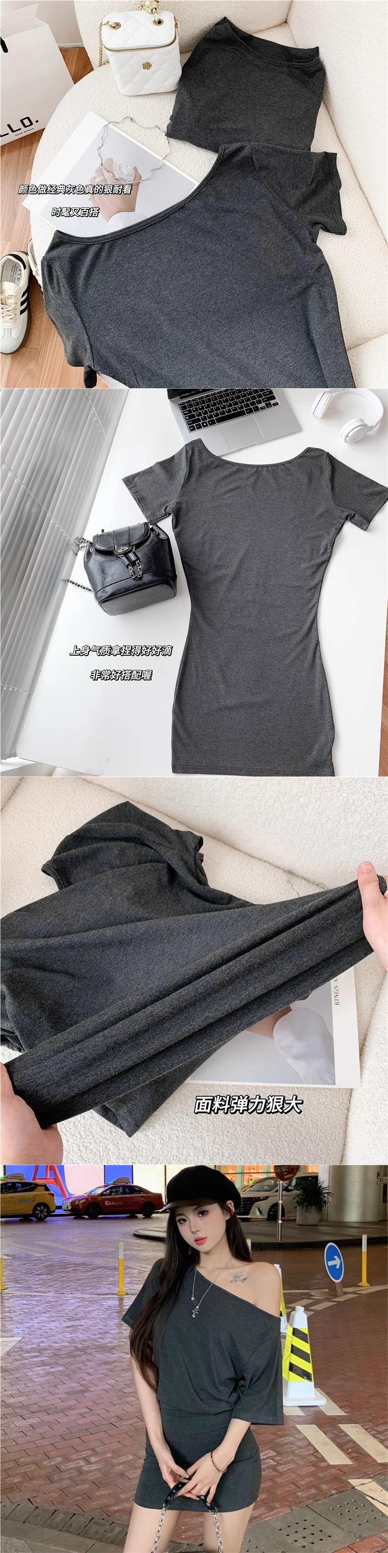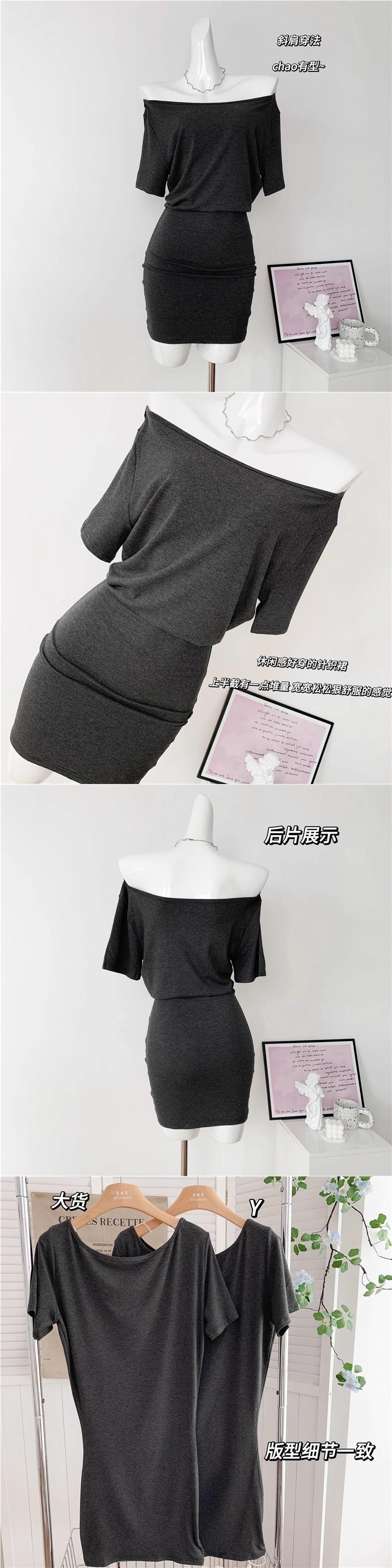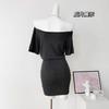 Vestido Mini de Diosa Sexy con Hombro Descubierto y Hombro Inclinado, Estilo Occidental a la Moda, Ajustado a la Cintura, con Frunces en el Cuerpo y Cuello de Cisne, Puro Deseo