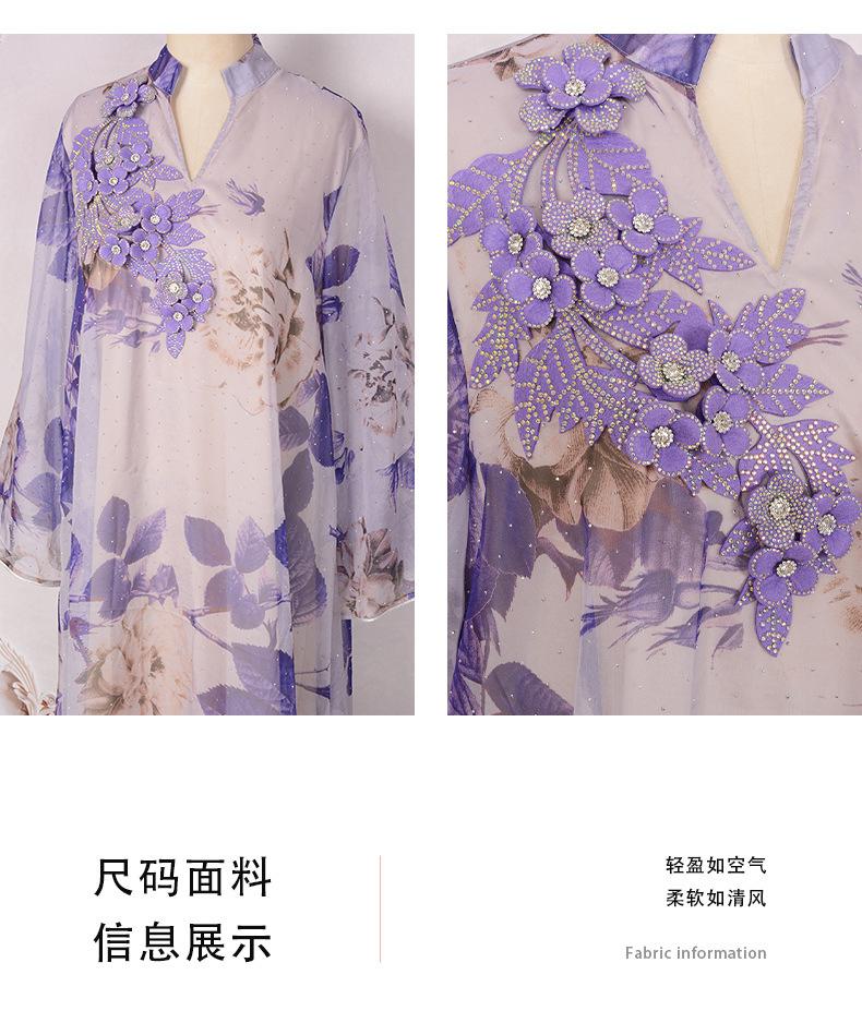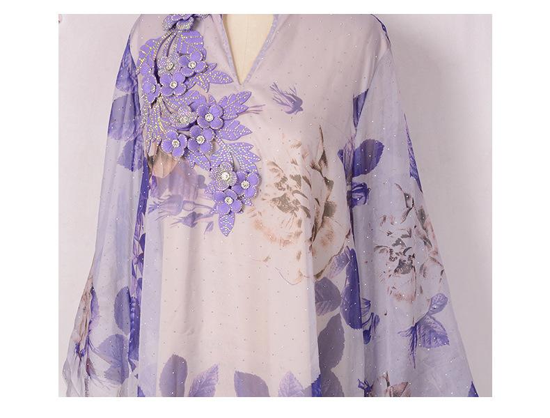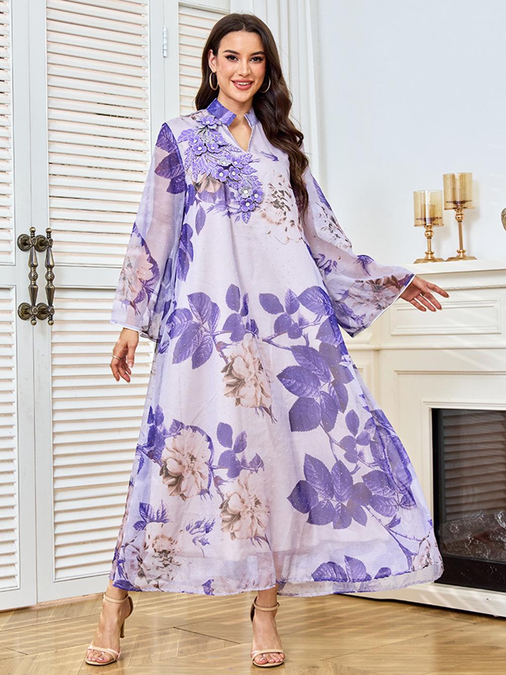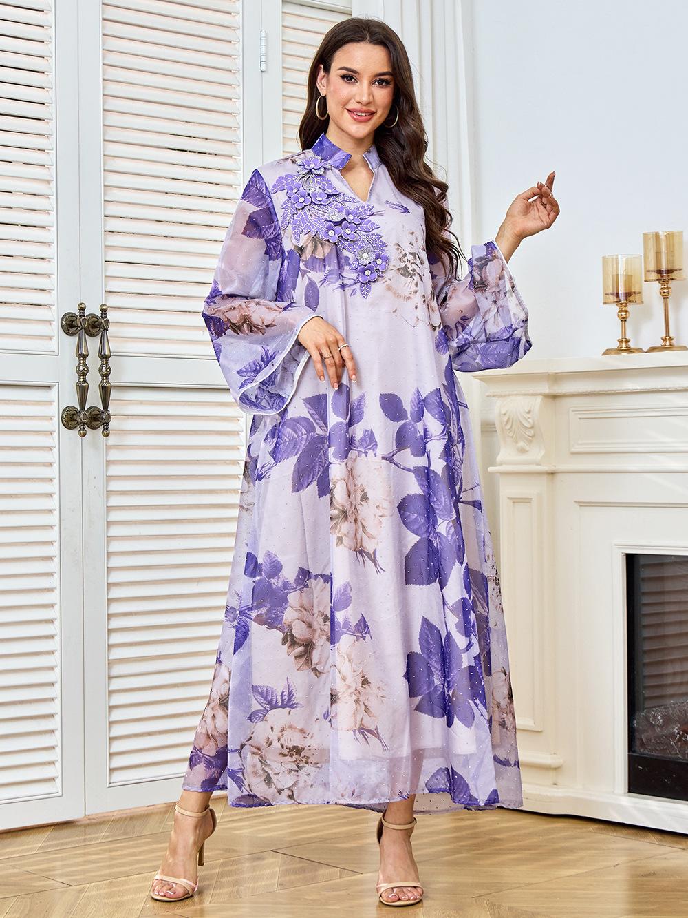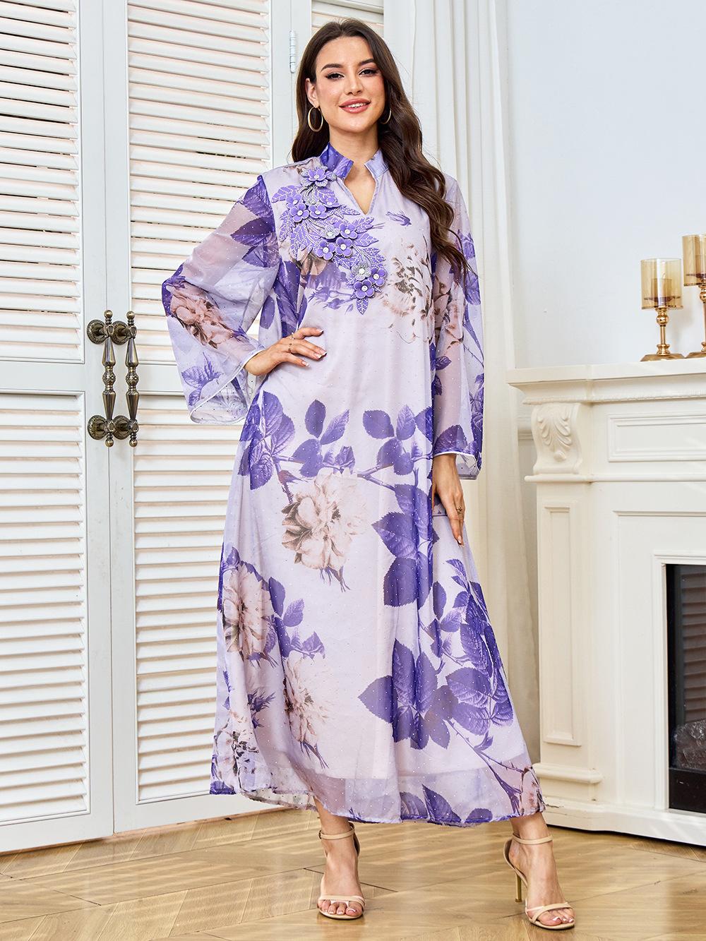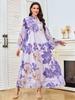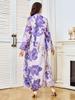 Comercio transfronterizo de Medio Oriente Bata musulmana de Dubái Moda Cuello en V Morado Elegante Vestido con pedrería caliente Ropa de mujer Vestido largo