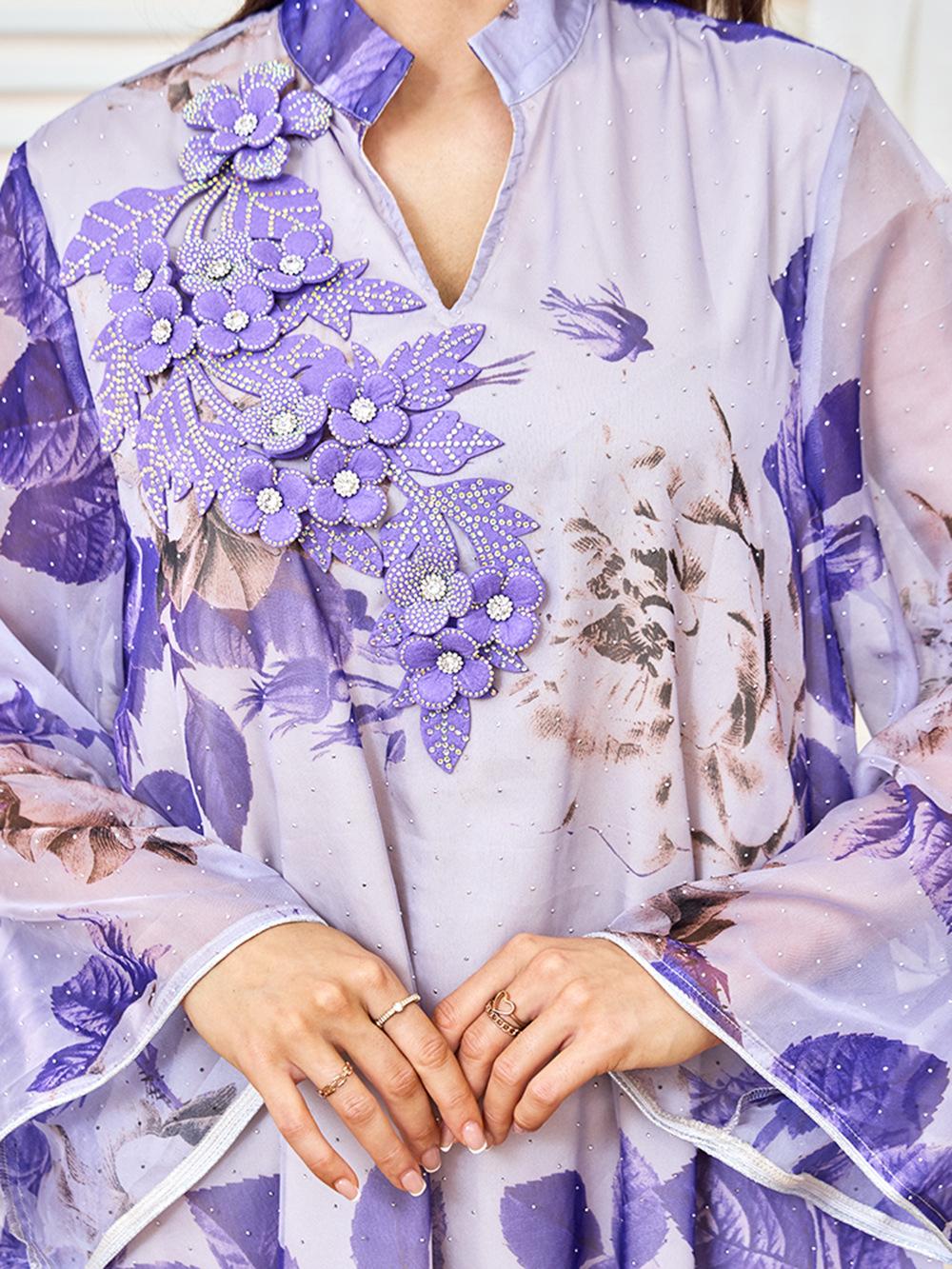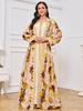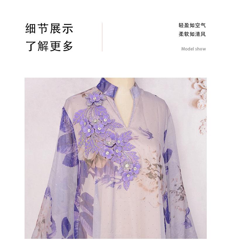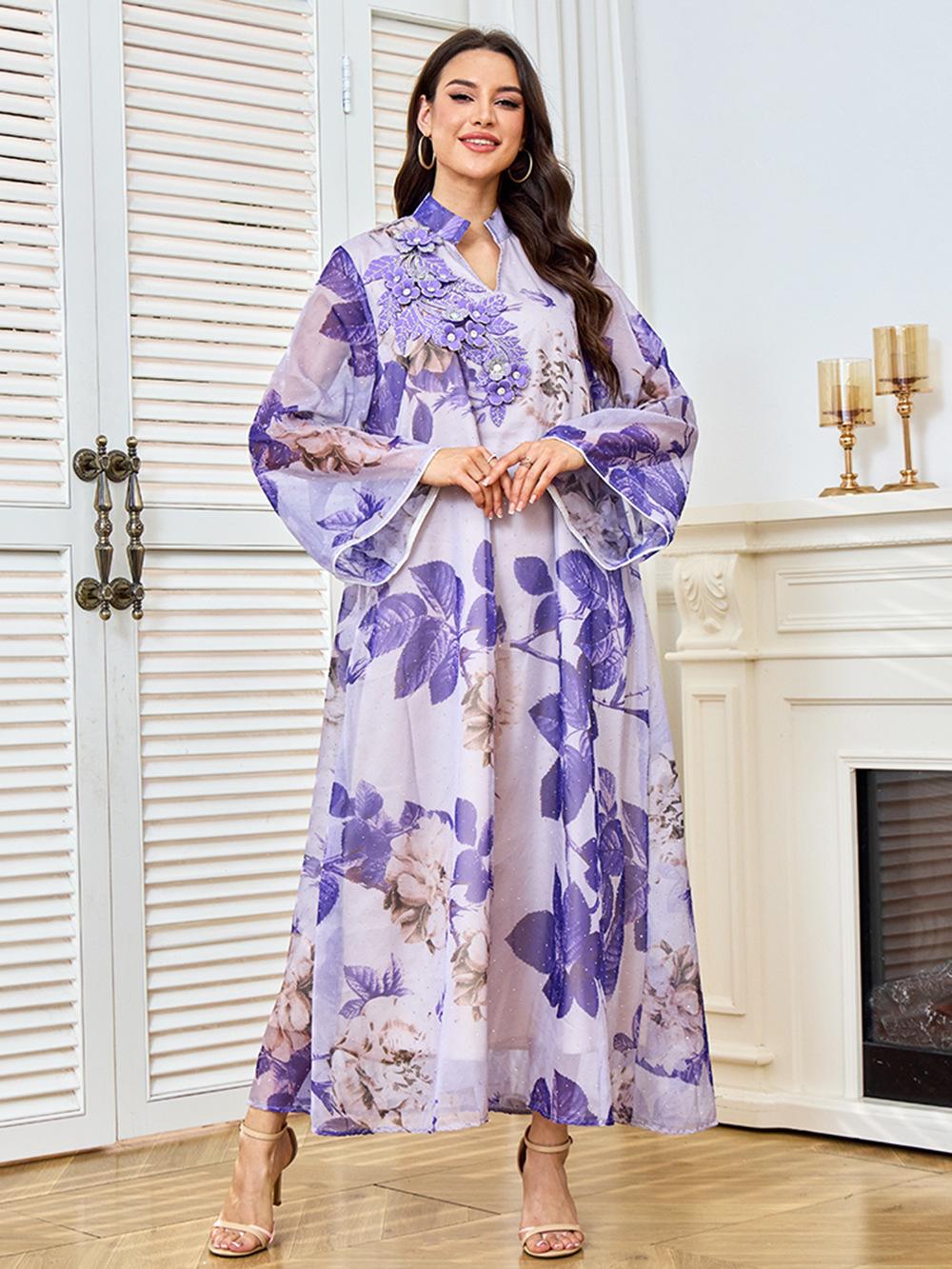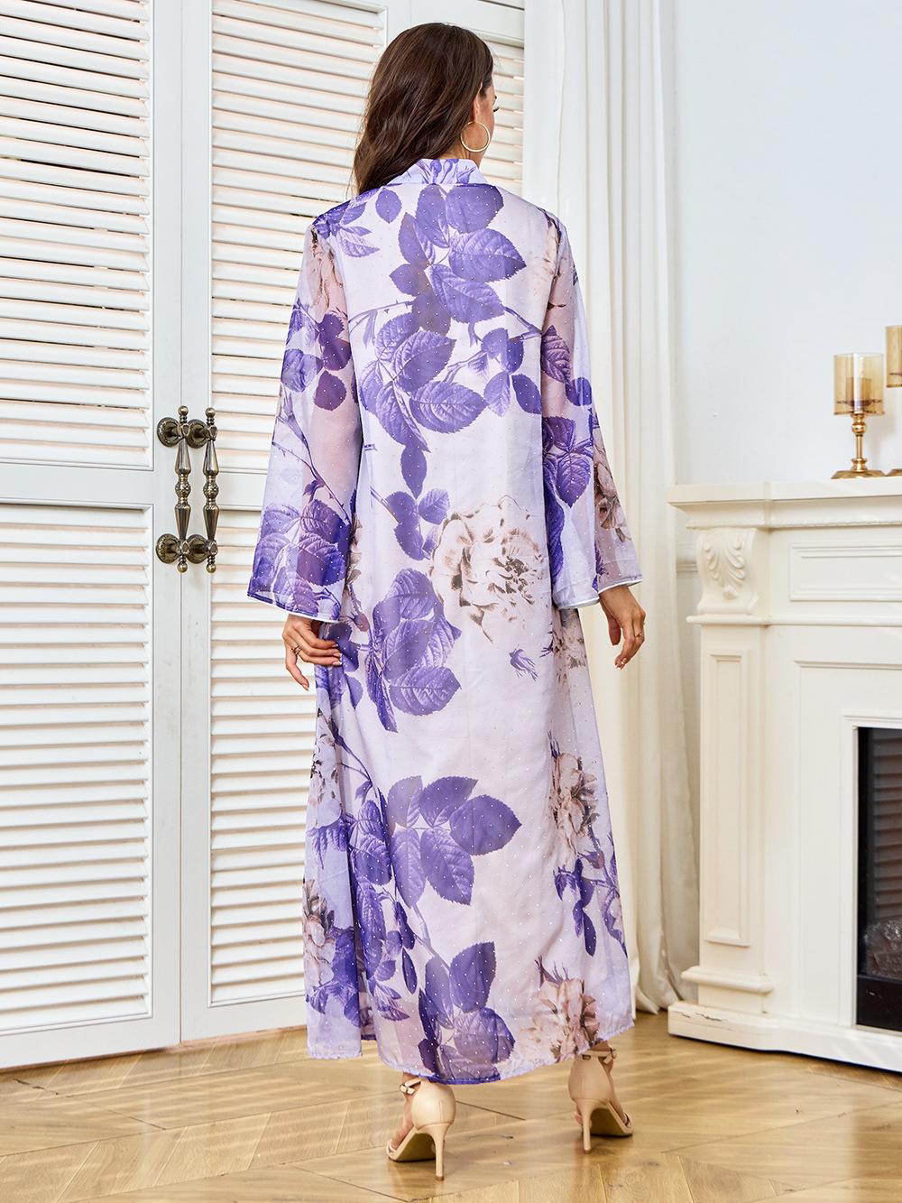 Comercio transfronterizo de Medio Oriente Bata musulmana de Dubái Moda Cuello en V Morado Elegante Vestido con pedrería caliente Ropa de mujer Vestido largo