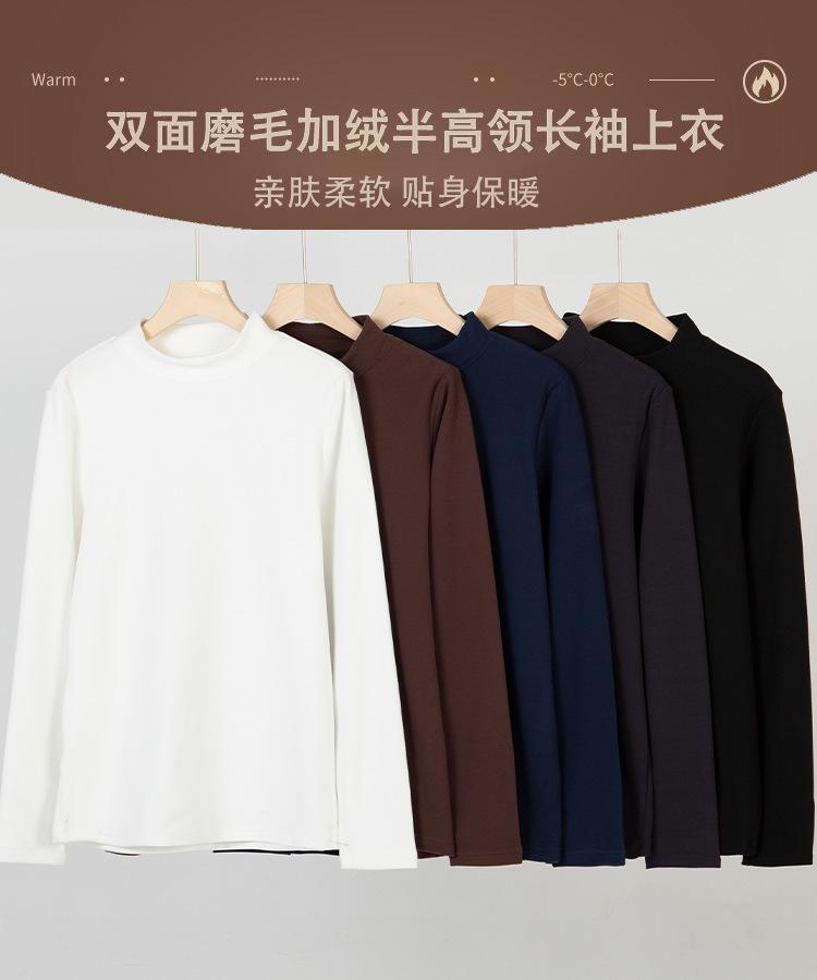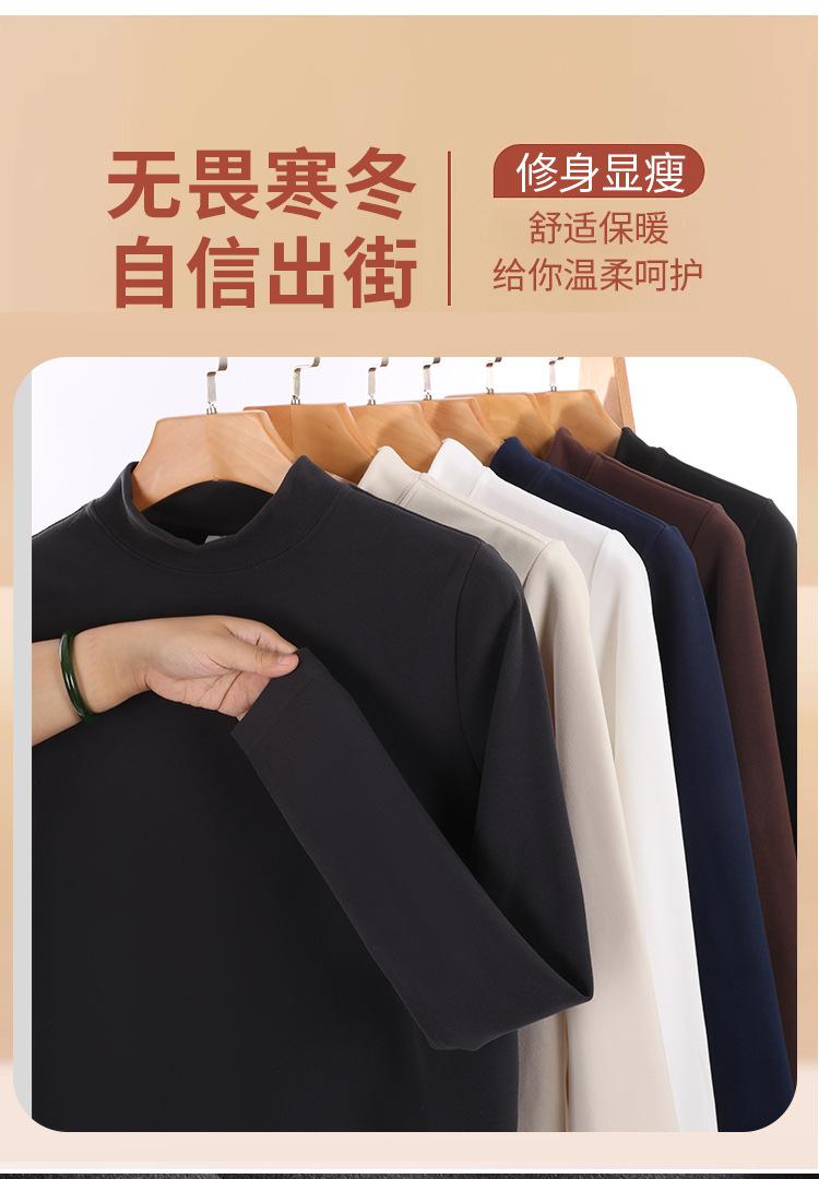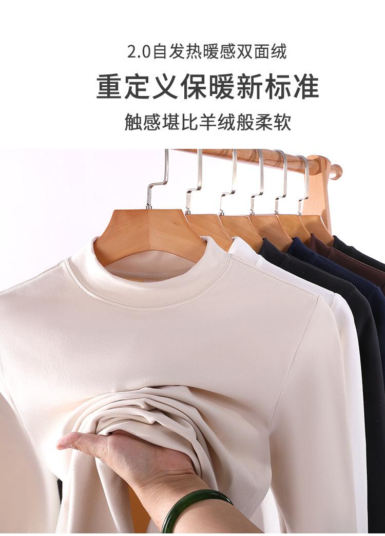 Camiseta Básica de Terciopelo Alemán de Doble Cara con Cuello Medio Alto para Mujer para Primavera y Otoño Capa Interior Autocalentable Color Puro Gruesa Cálida Top de Manga Larga Versátil