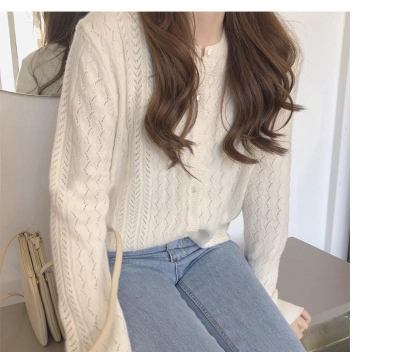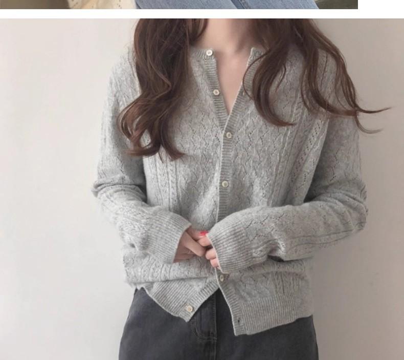 Cárdigan de Punto para Mujer Calado 2025 Primavera y Otoño Nuevo Manga Larga Top Exterior Otoño e Invierno Suéter Base Fino Abrigo