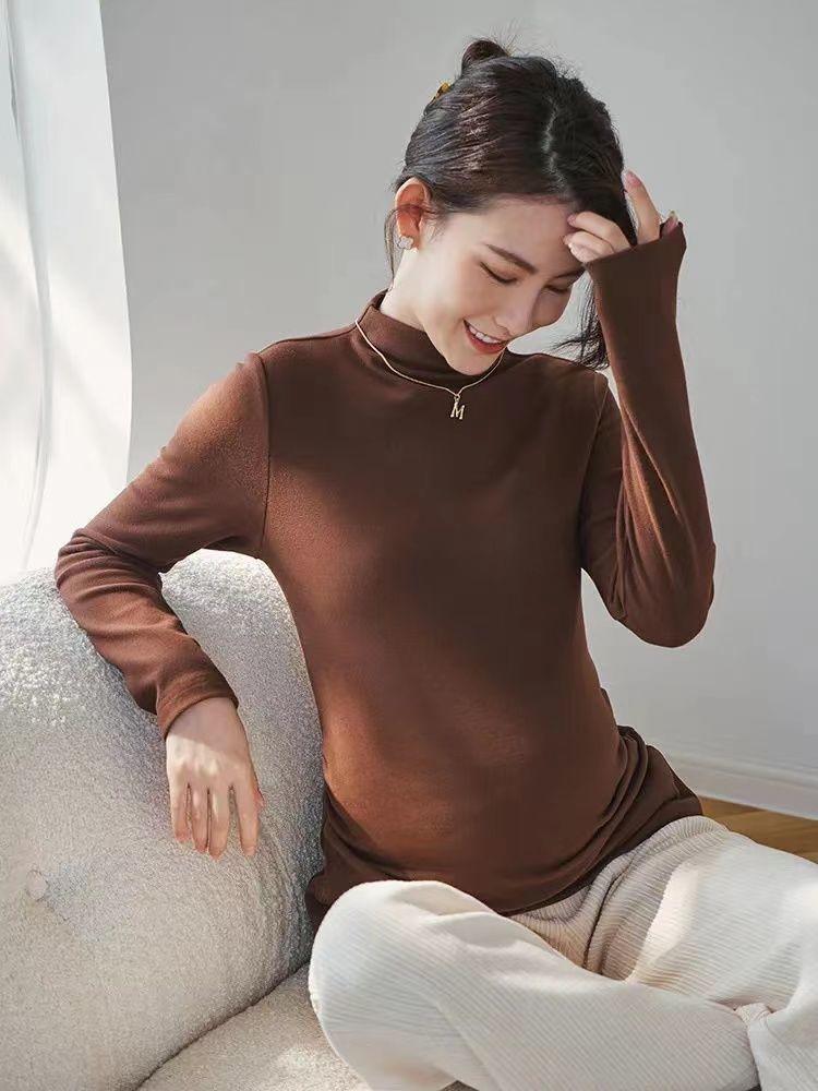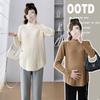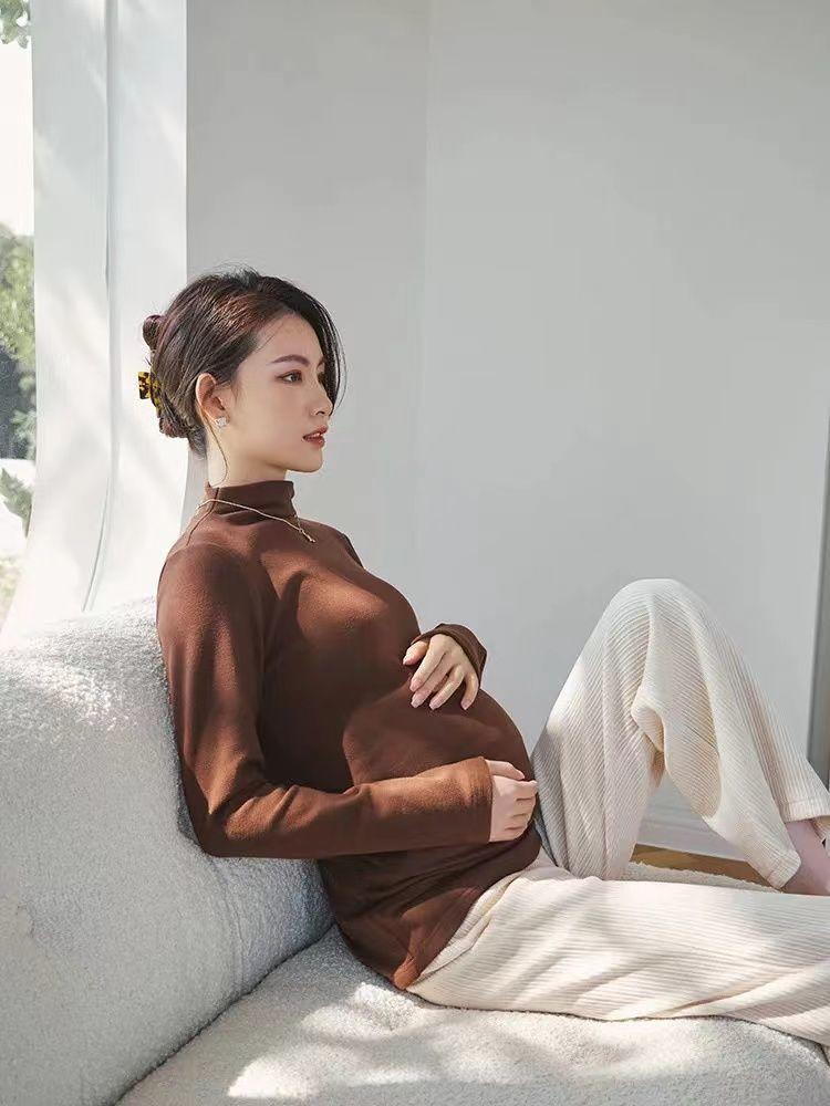 Abrigo de primavera y otoño para mujeres embarazadas, camisa básica de otoño e invierno, pantalones de chenilla para mujeres embarazadas con cuello medio alto, camisa cálida, traje para mujeres embarazadas