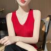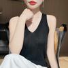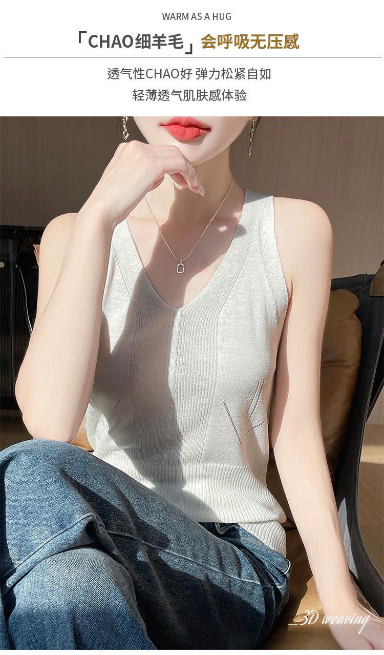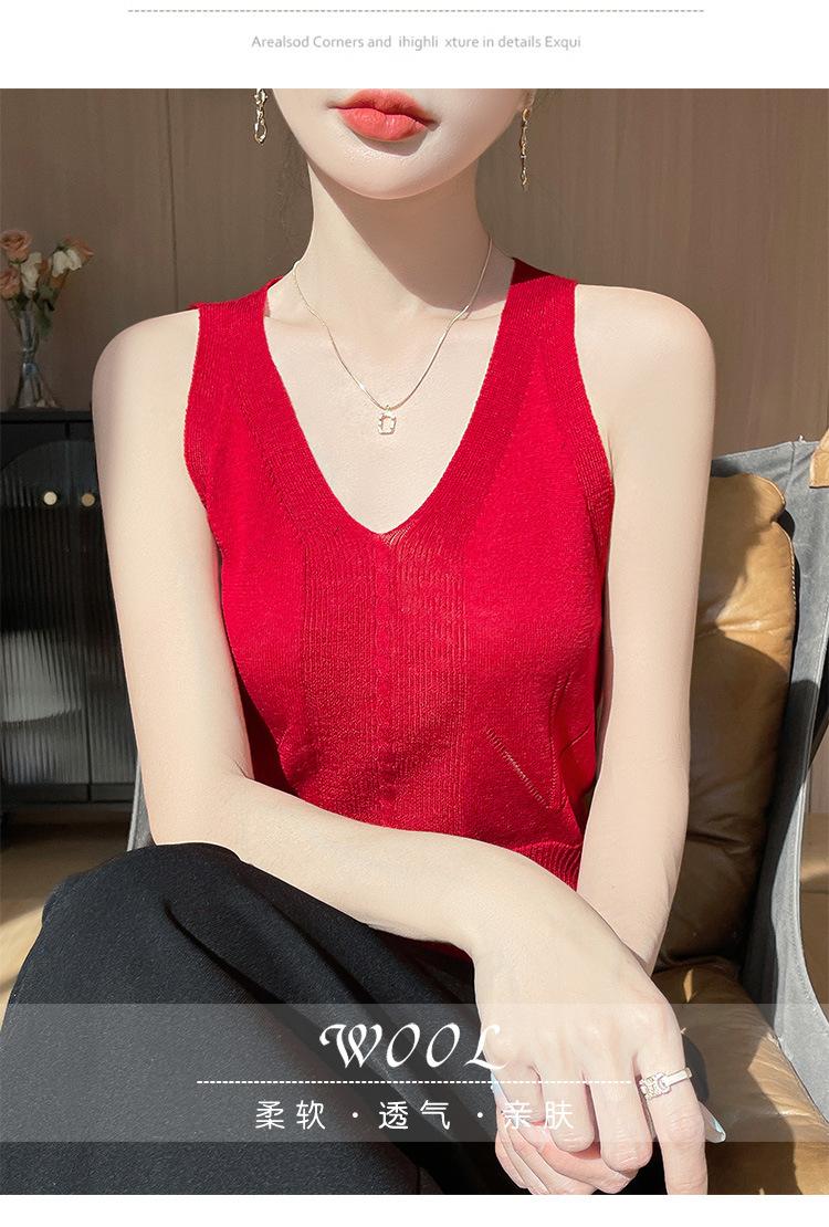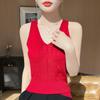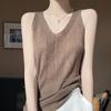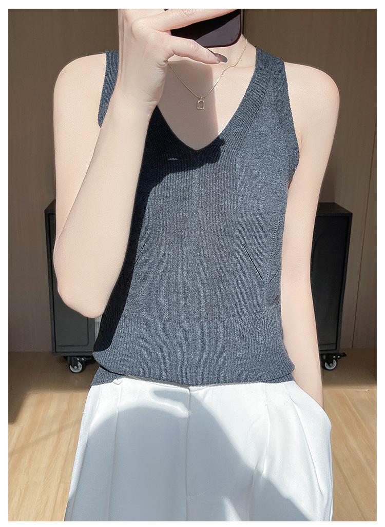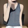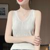 Camisola de Punto Fino con Cuello en V Nueva Primavera Verano 2025 Color Puro Sin Mangas Interior Jersey Top