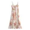 2021 Nuevo Estilo Europeo y Americano Cintura Alta Elegante Para Ir al Trabajo Sexy Tirantes Estilo Francés Vestido Corto Estampado
