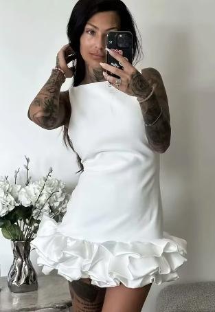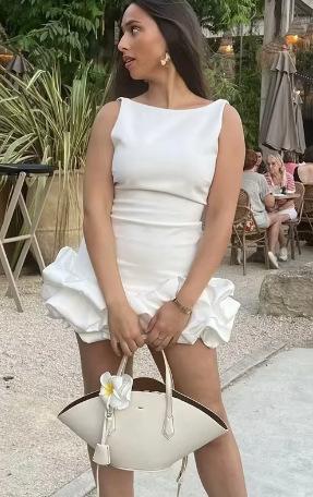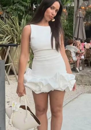 Comercio Exterior Amazon Otoño Nuevo Vestido Corto Blanco sin Mangas con Volantes de Moda para Mujer Estilo Europeo y Americano