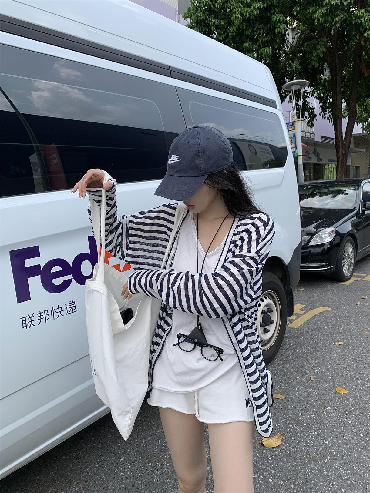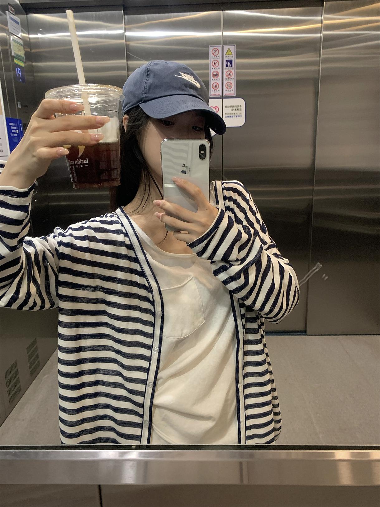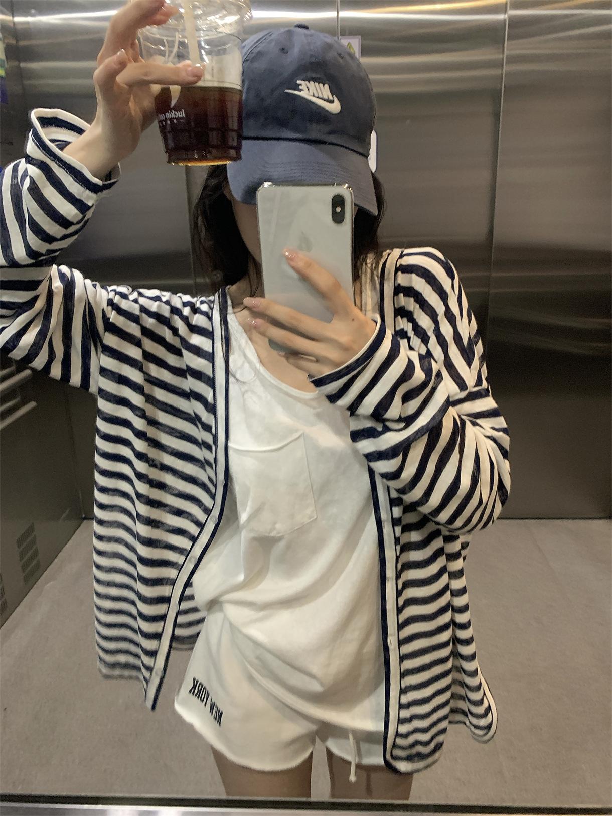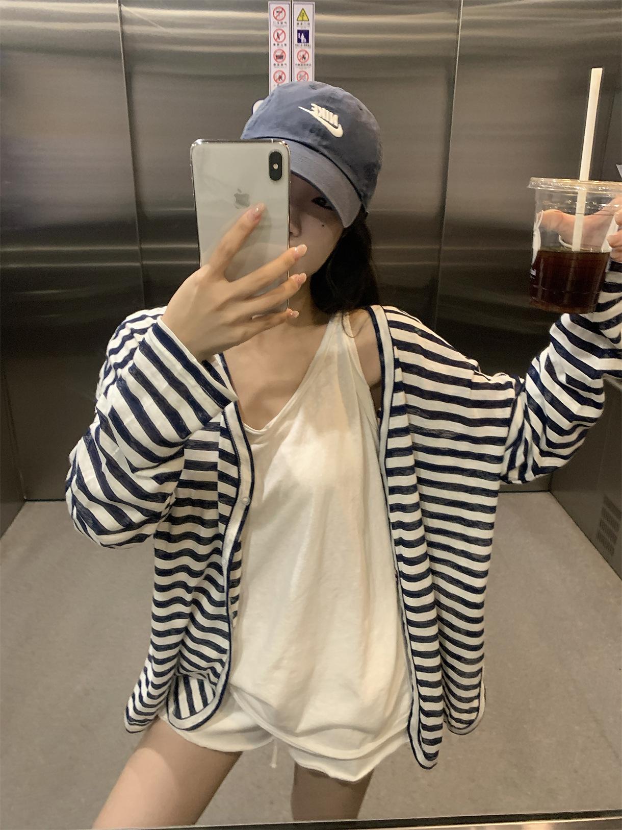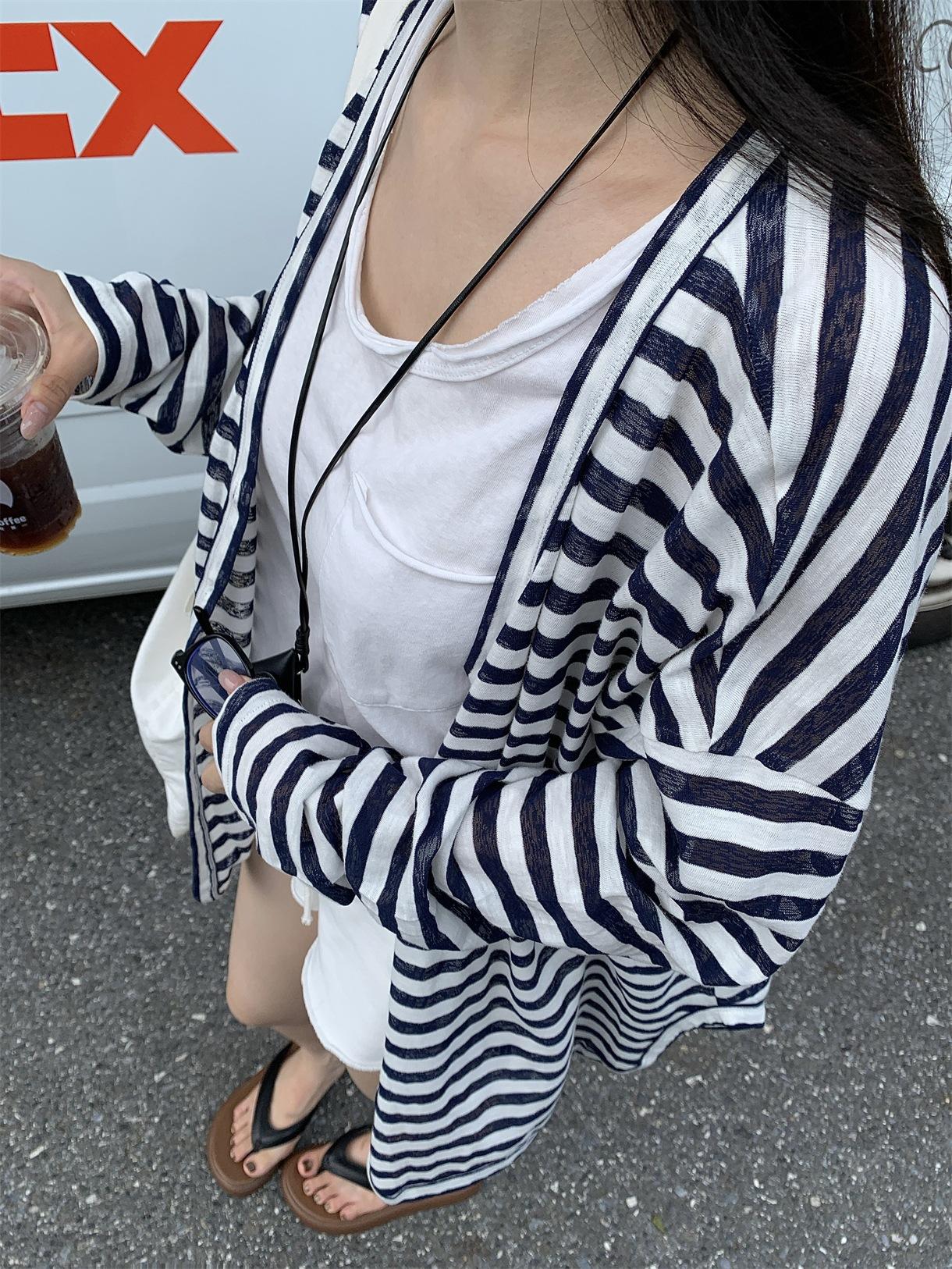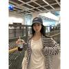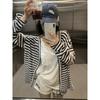 Cárdigan Casual Holgado Adelgazante Estilo Perezoso Protección Solar Manga Larga Primavera Otoño Diseño de Rayas con Bloque de Color Top Versátil Mujeres ins