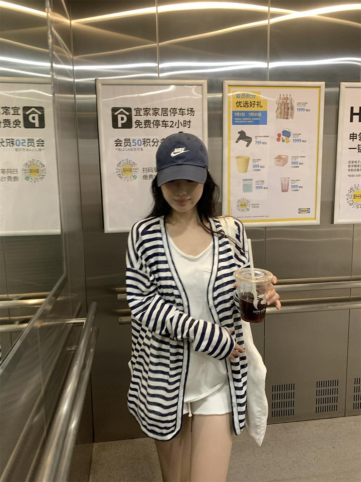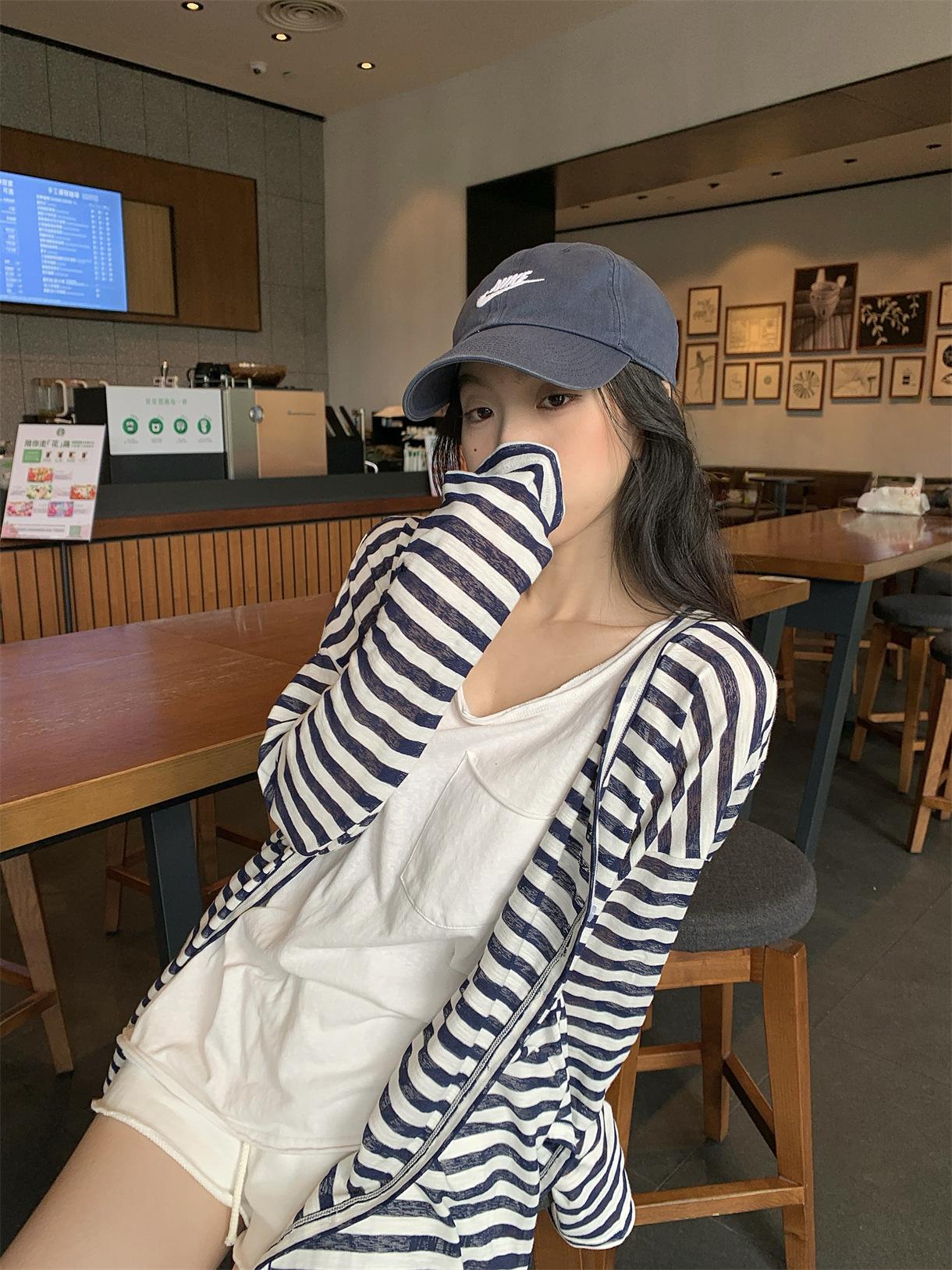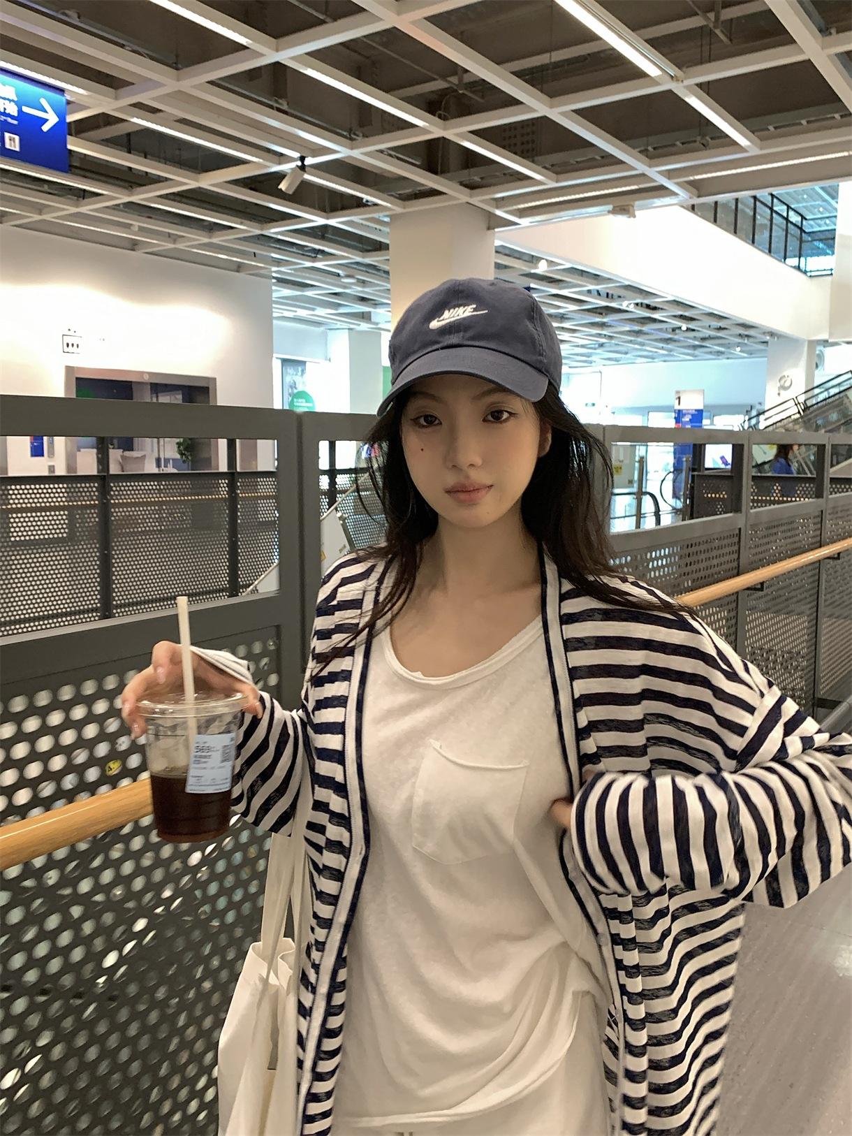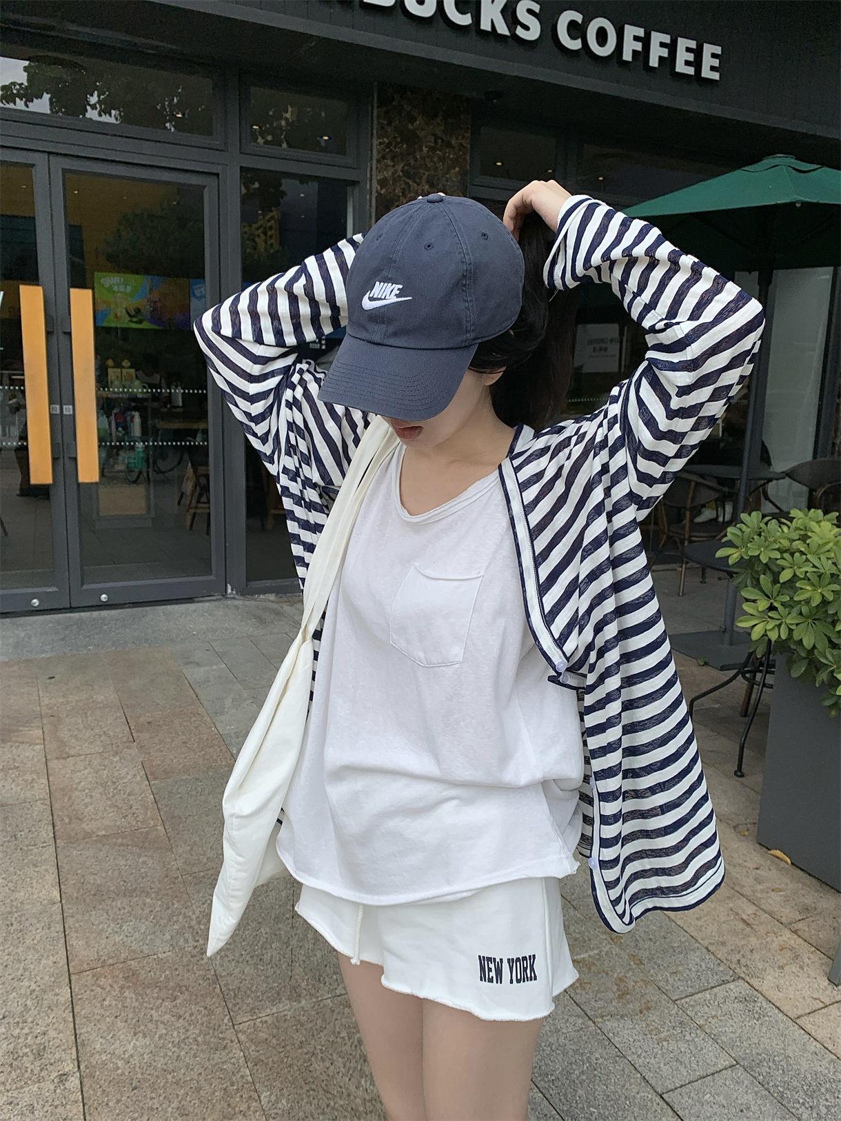 Cárdigan Casual Holgado Adelgazante Estilo Perezoso Protección Solar Manga Larga Primavera Otoño Diseño de Rayas con Bloque de Color Top Versátil Mujeres ins