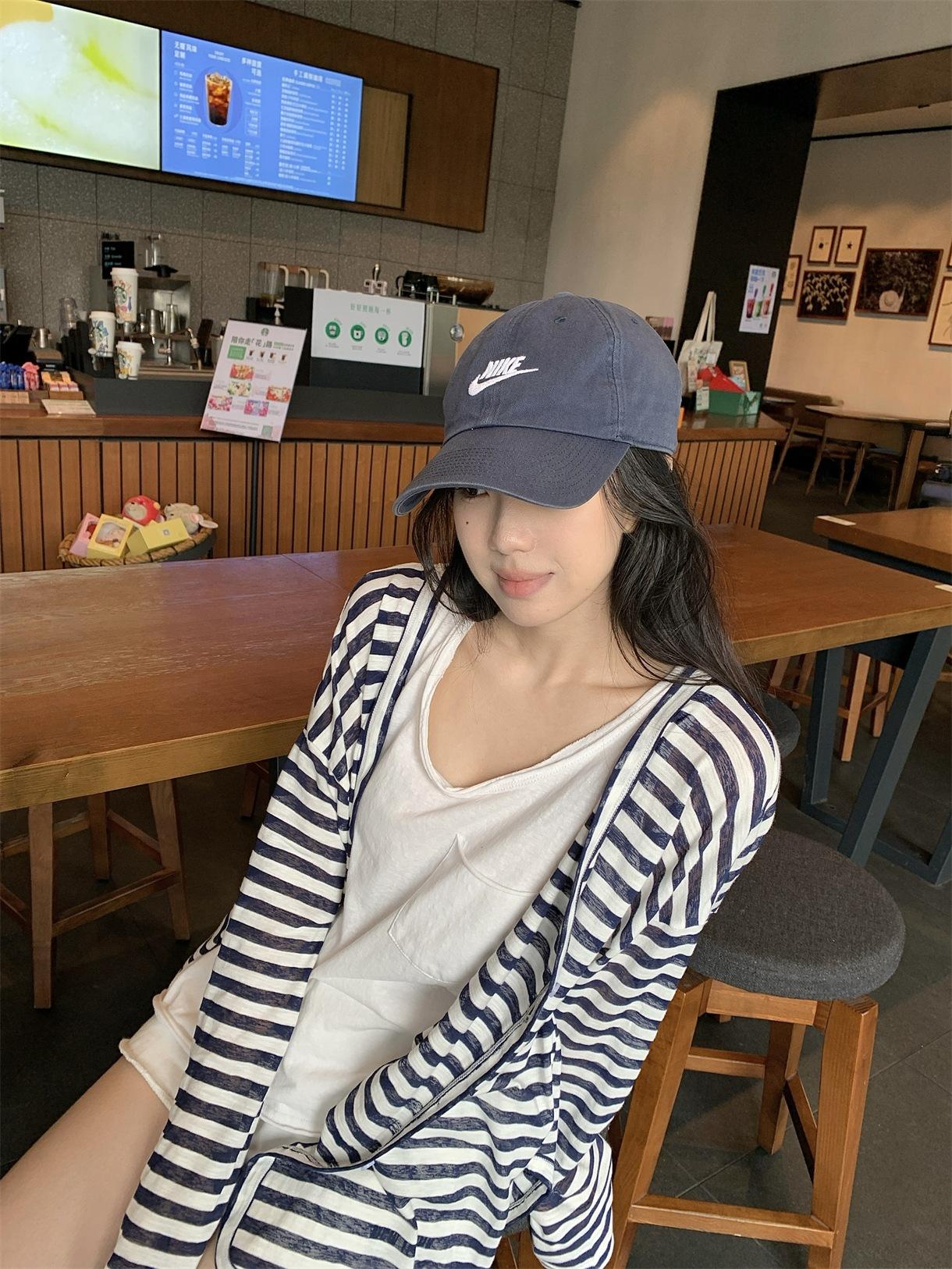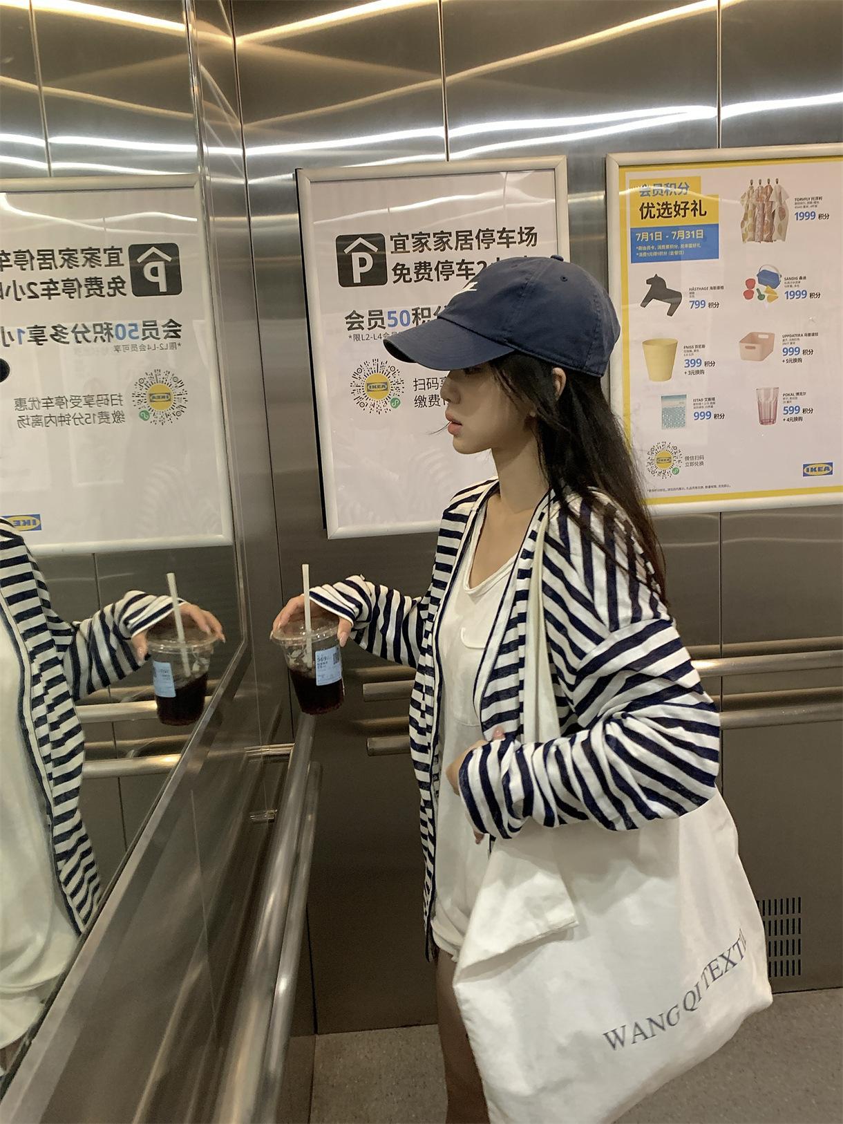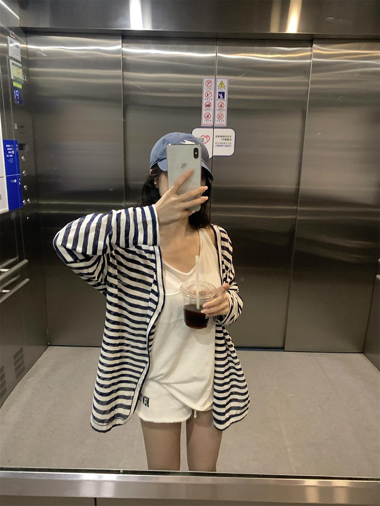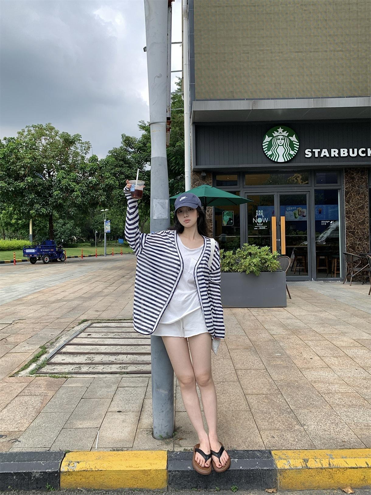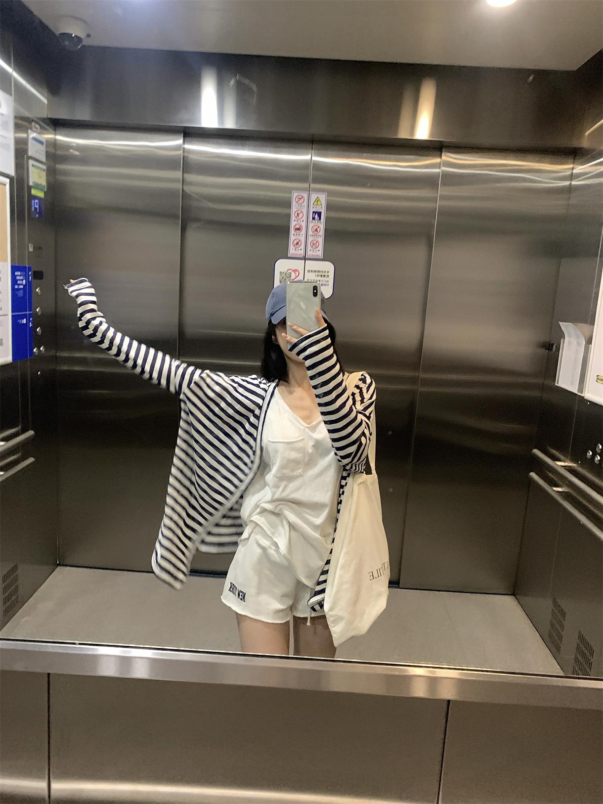 Cárdigan Casual Holgado Adelgazante Estilo Perezoso Protección Solar Manga Larga Primavera Otoño Diseño de Rayas con Bloque de Color Top Versátil Mujeres ins