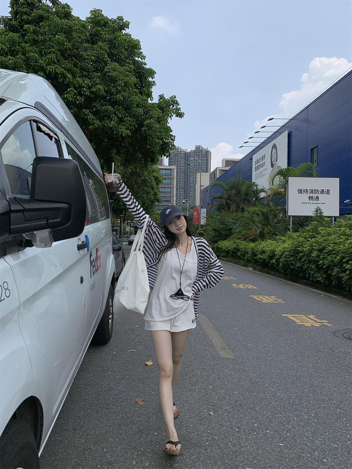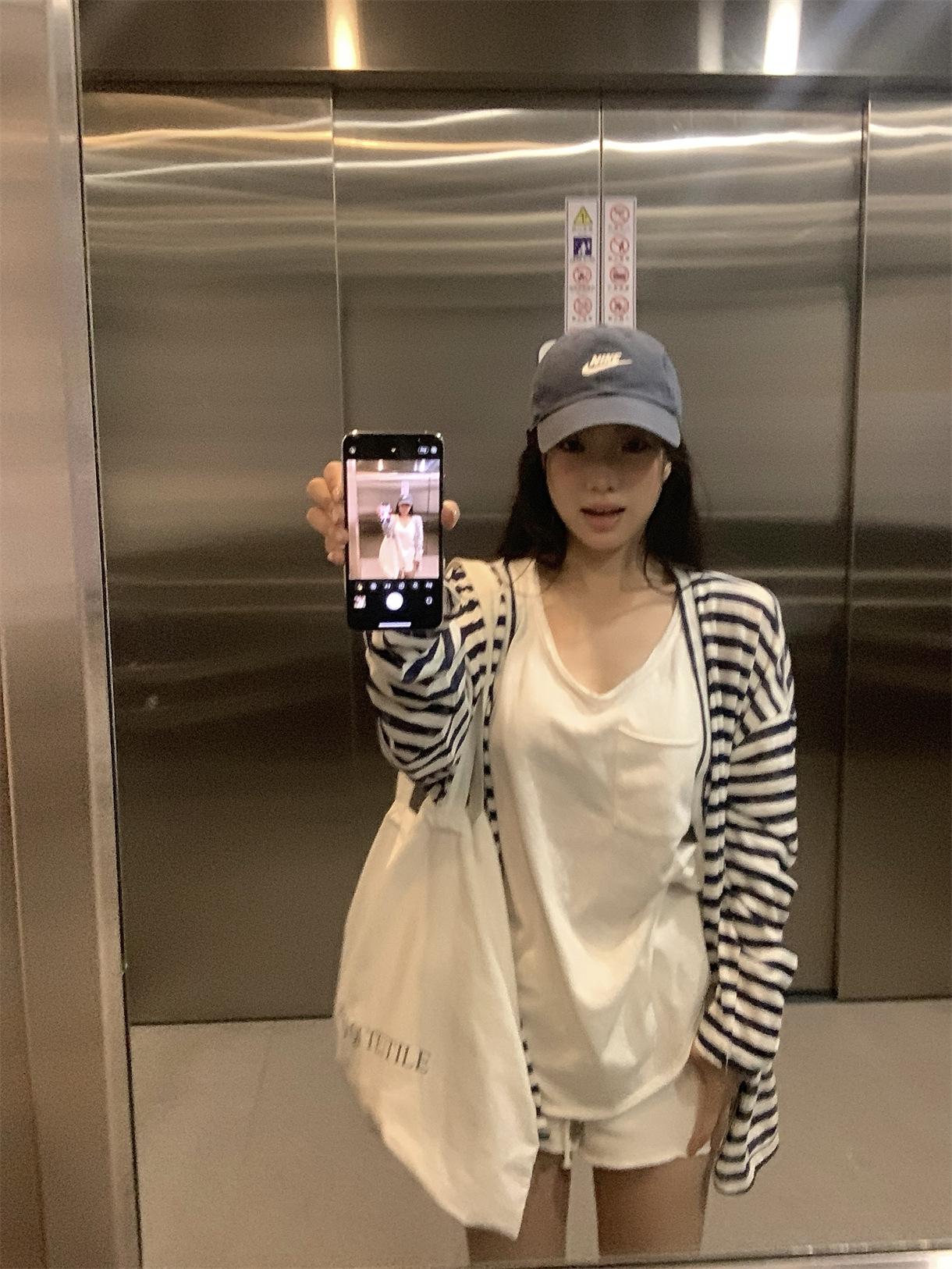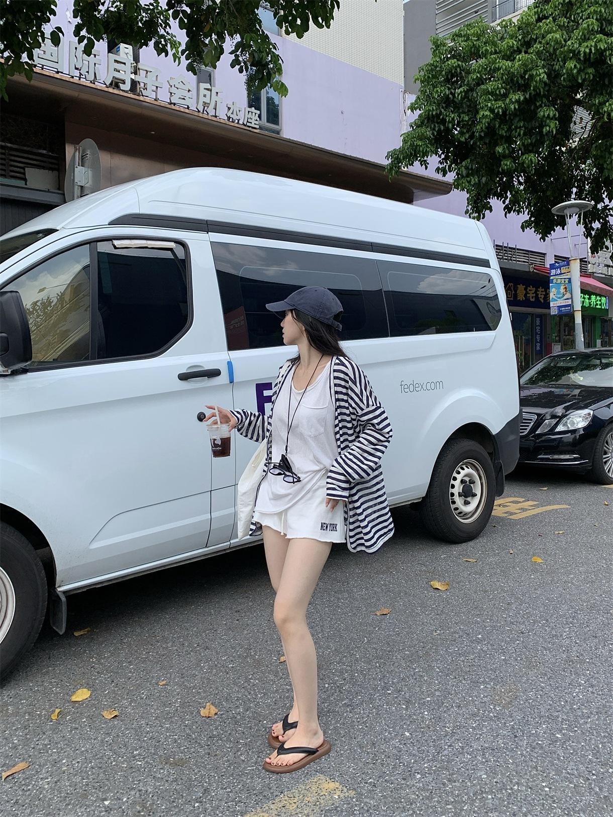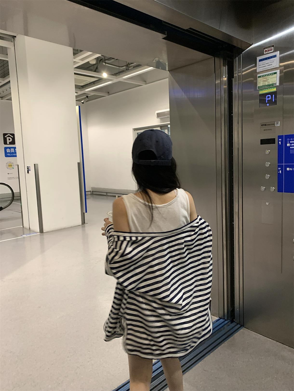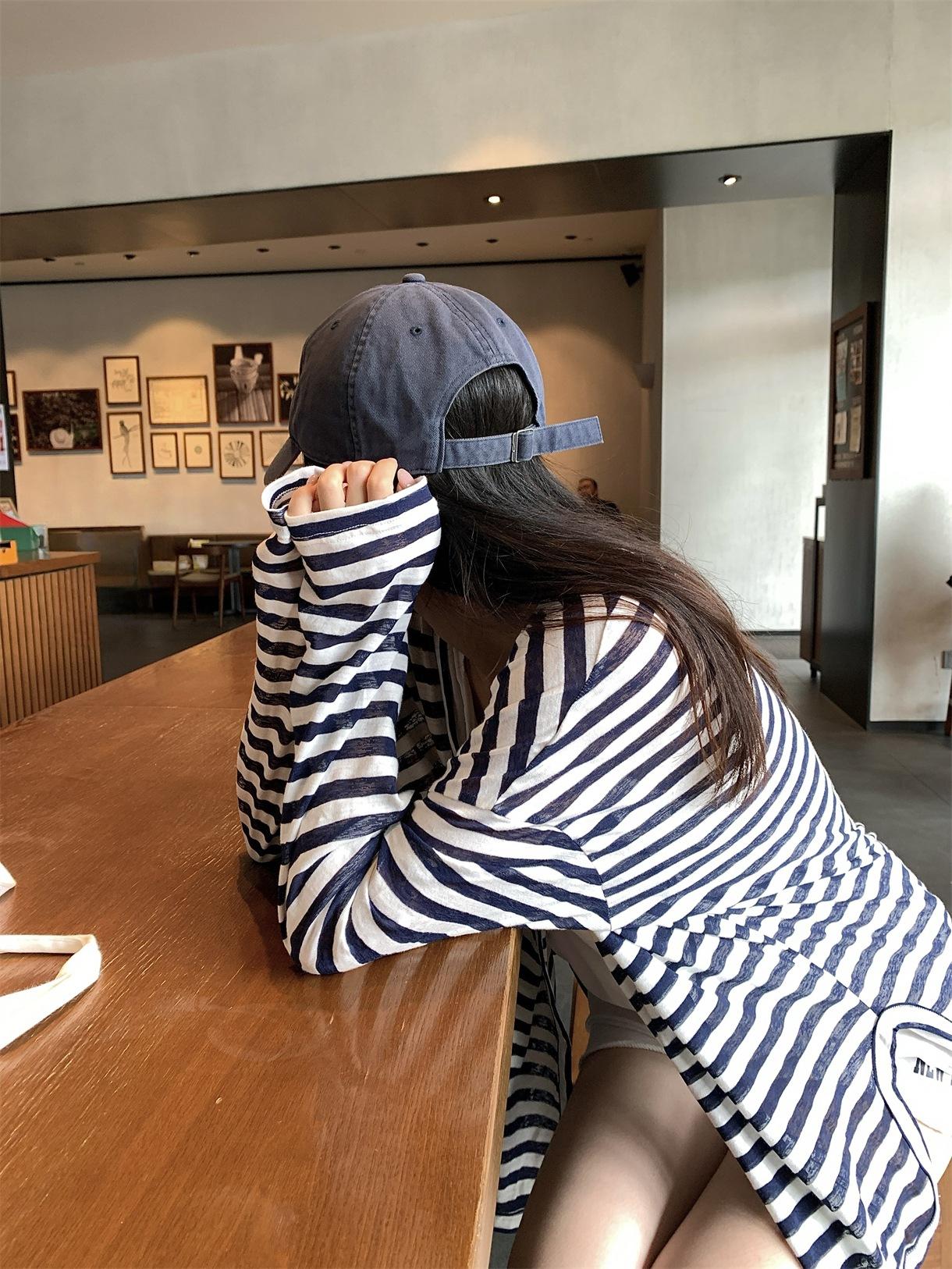 Cárdigan Casual Holgado Adelgazante Estilo Perezoso Protección Solar Manga Larga Primavera Otoño Diseño de Rayas con Bloque de Color Top Versátil Mujeres ins