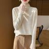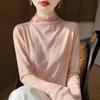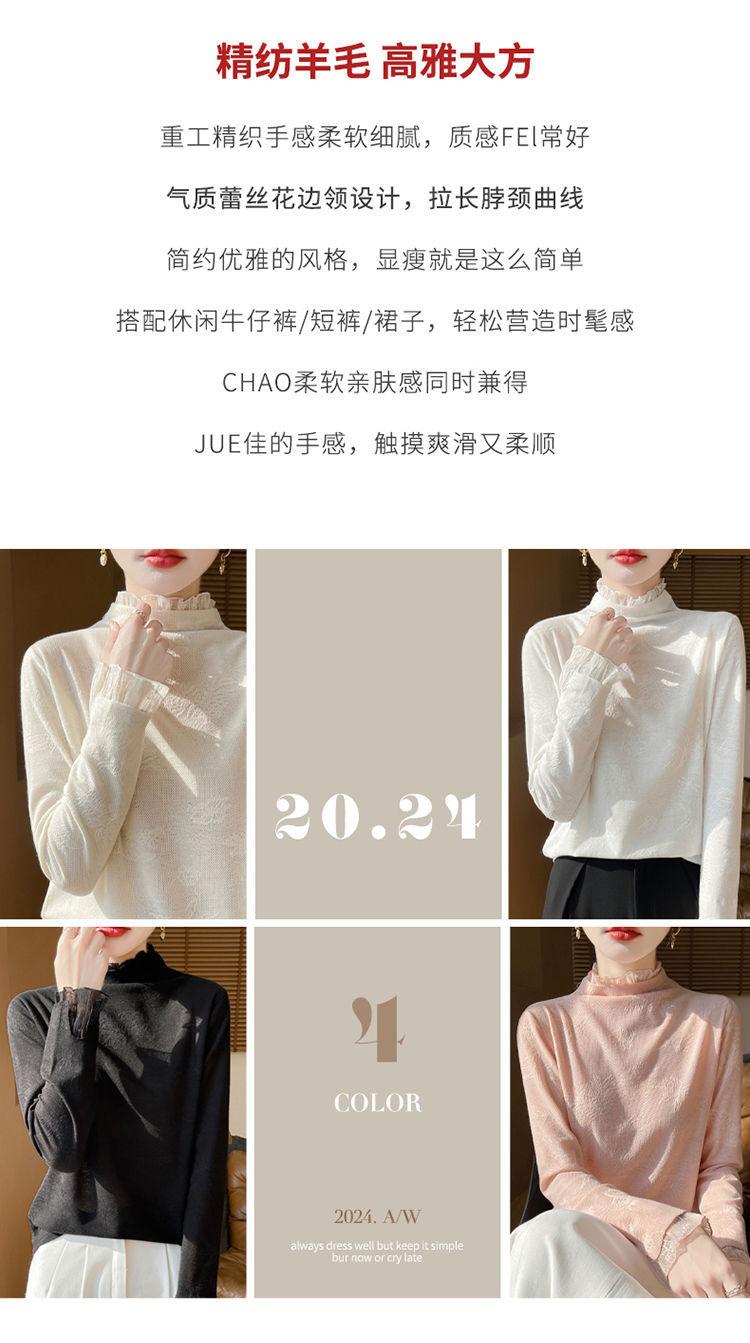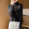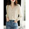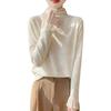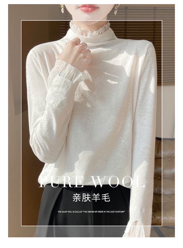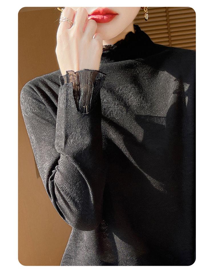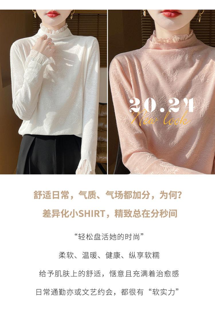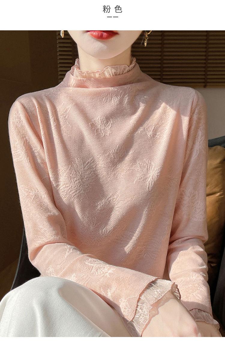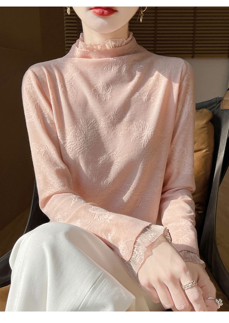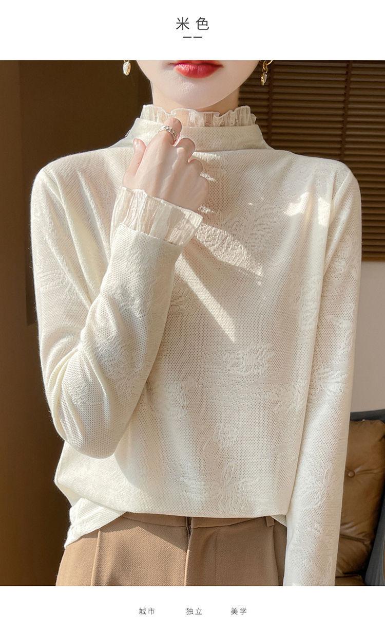 Nueva Primavera y Otoño Elegante Camisa Básica con Dobladillo de Volantes para Mujer Top Tejido Calado Suave de Alta Gama Reductor de Edad Adelgazante Manga Larga