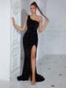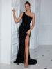 Lujoso Sexy Temperamento Europeo y Americano Nuevo Vestido de Lentejuelas de Moda Un Hombro Abertura de Alta Gama Banquete de Noche Reunión Anual Vestido de Noche