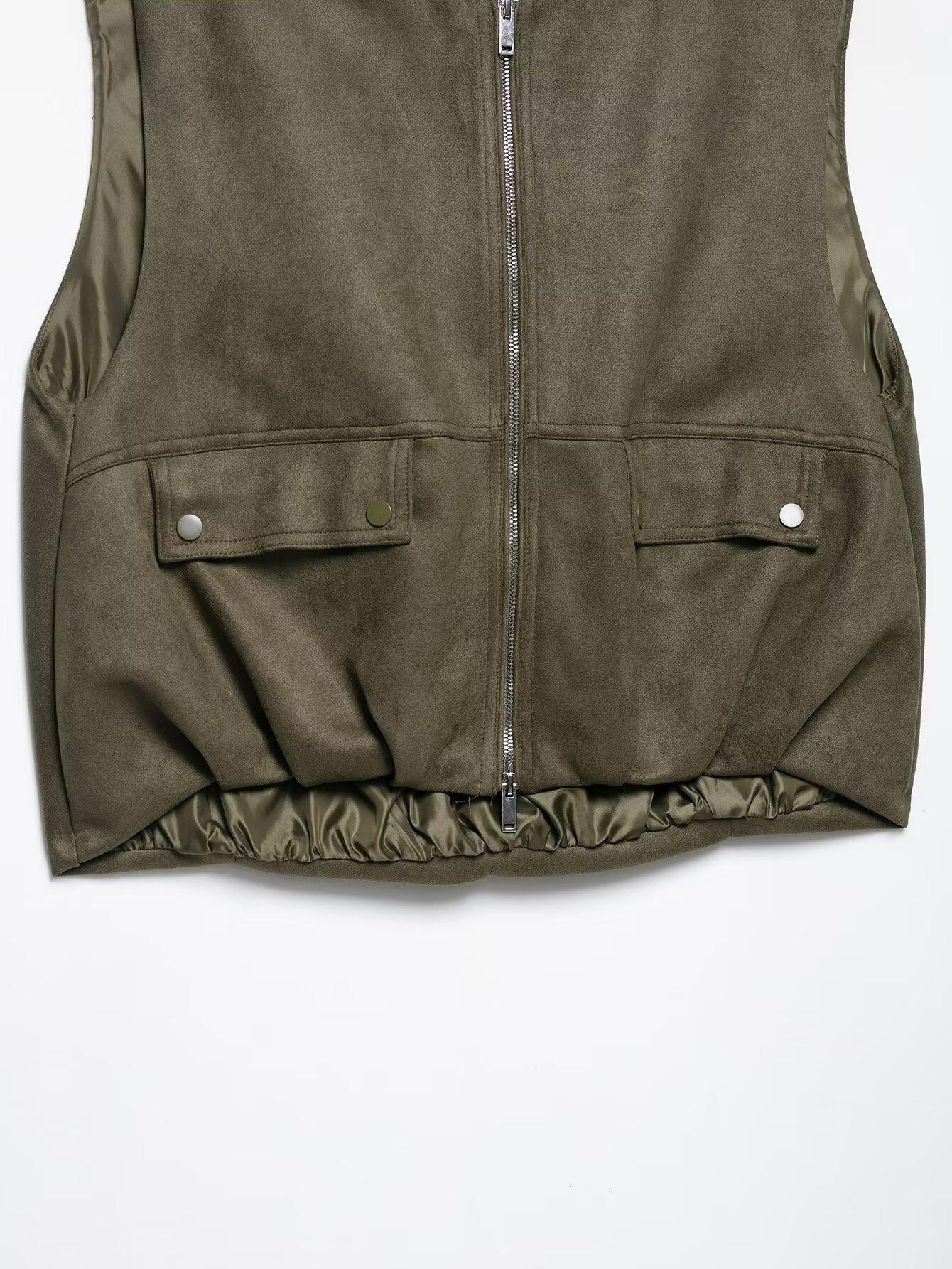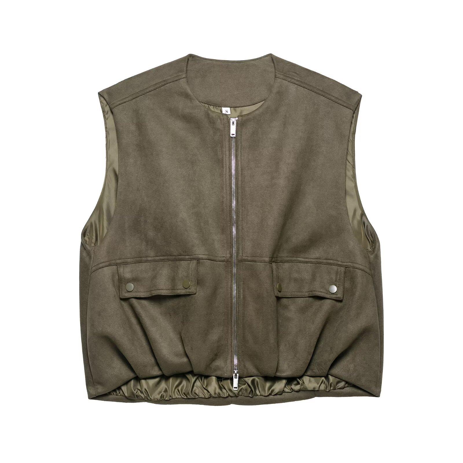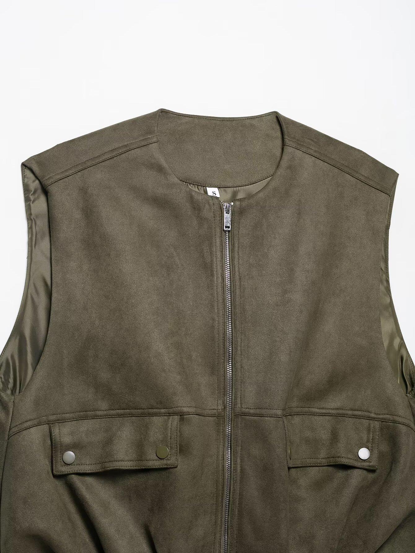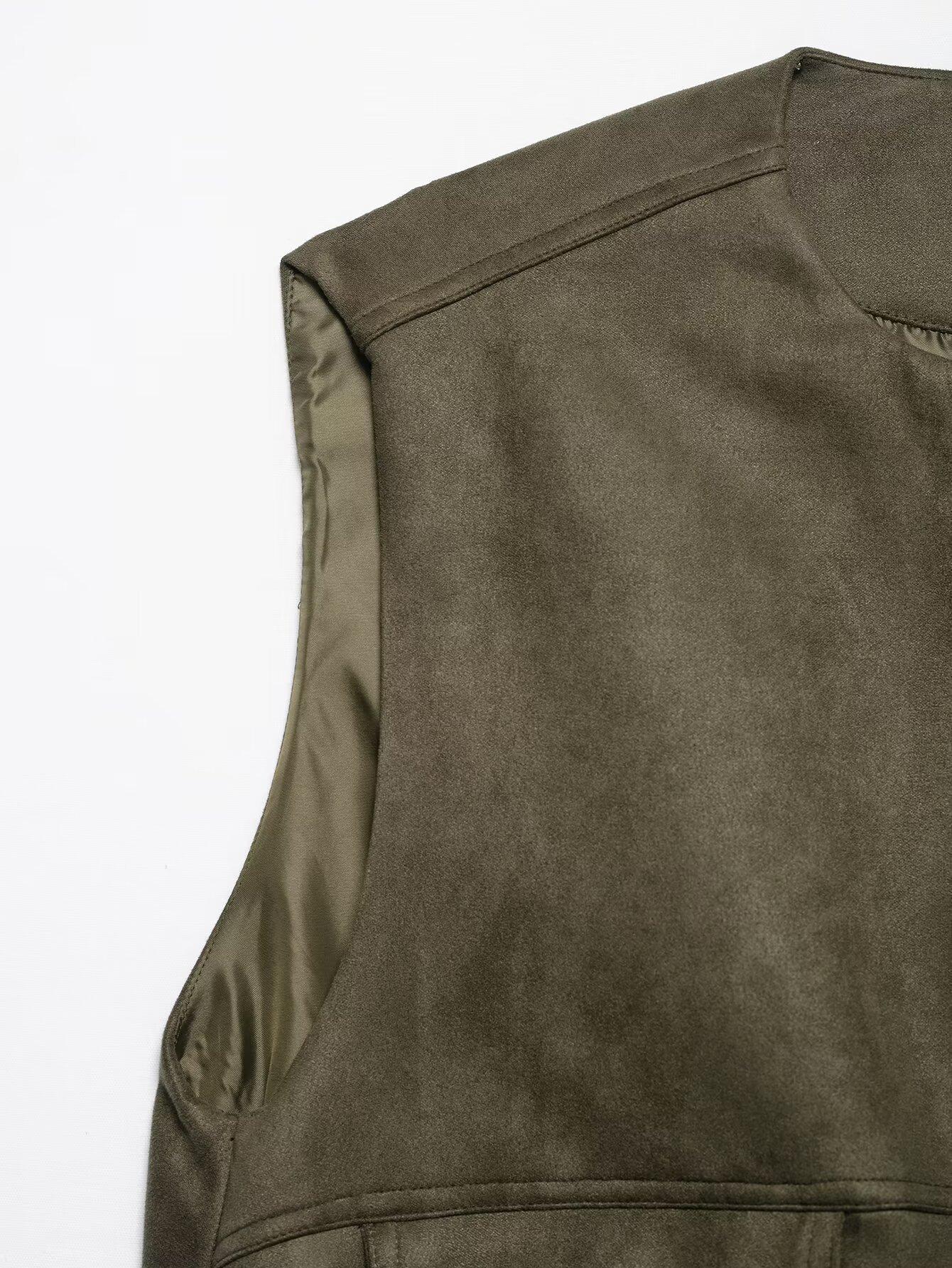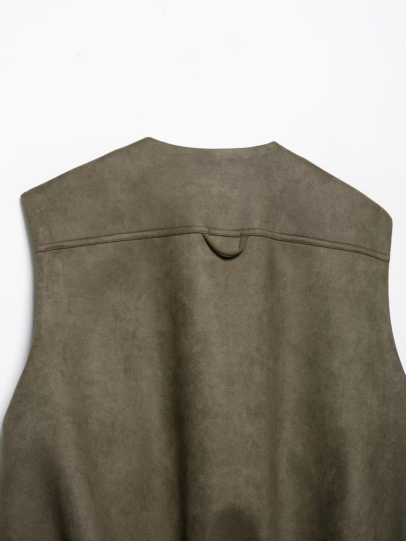 Ropa de Verano para Mujer 2025 Nuevo Estilo Europeo y Americano Moda Sencillo Versátil Terciopelo Piel de Ciervo Ropa de Trabajo Chaleco Suelto