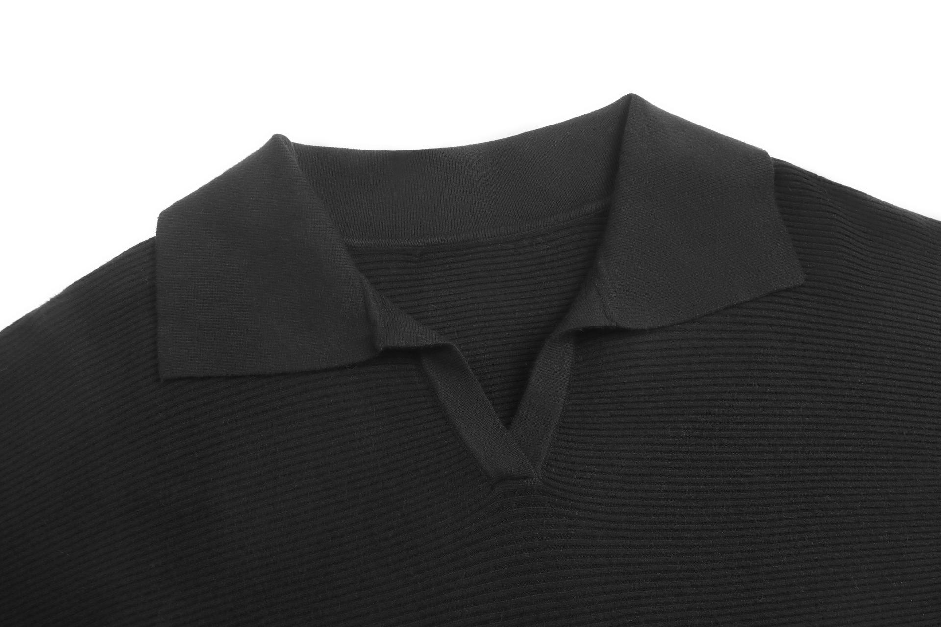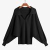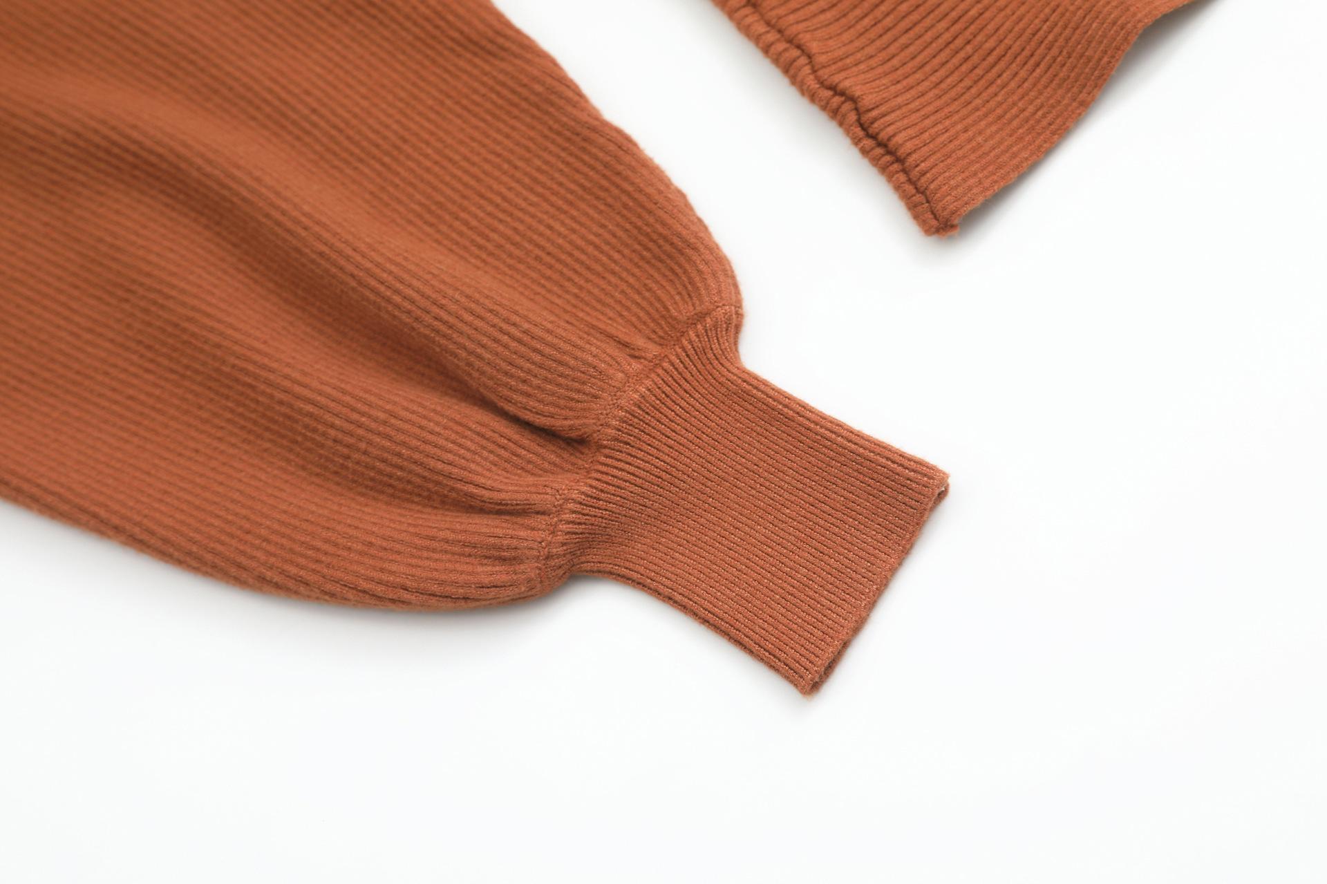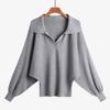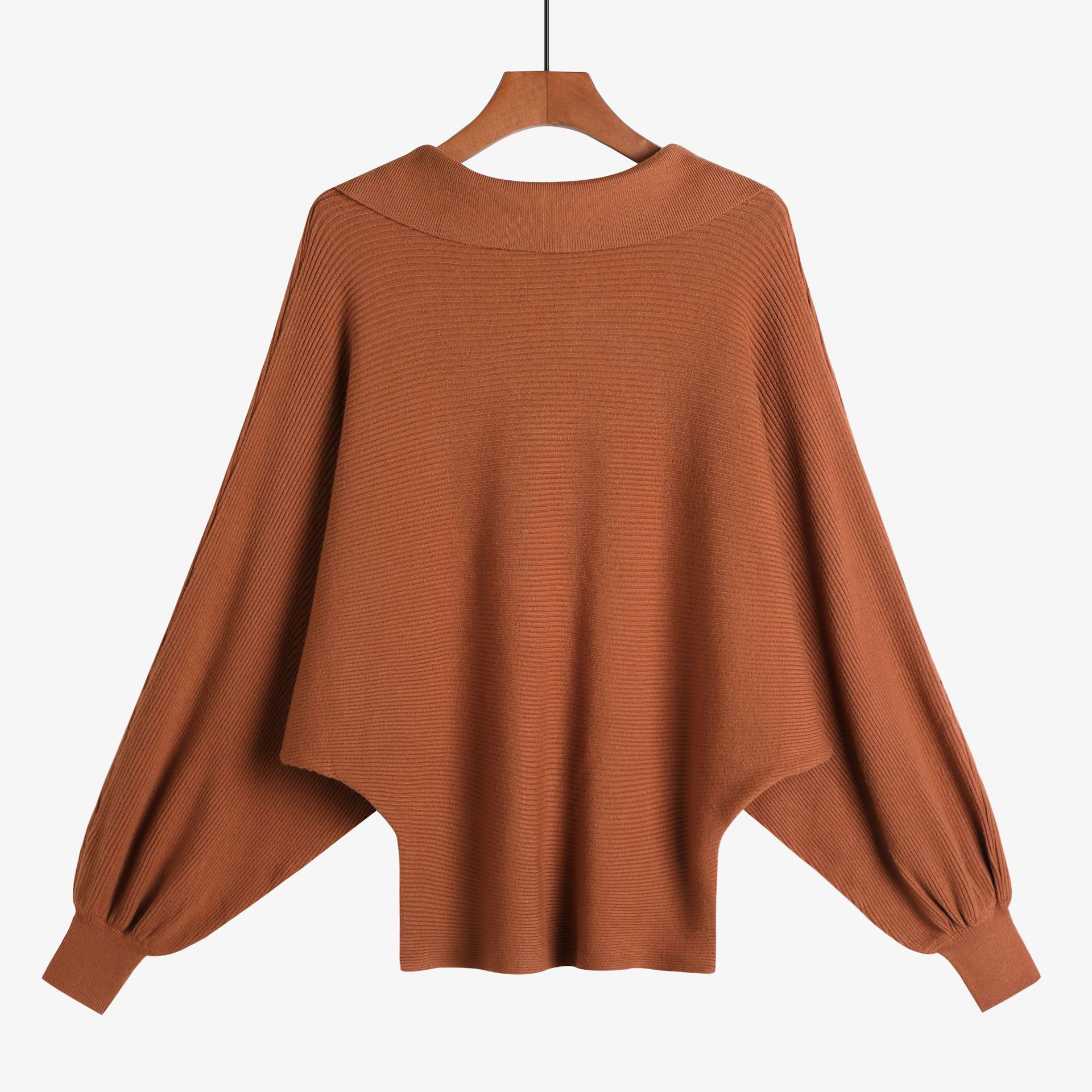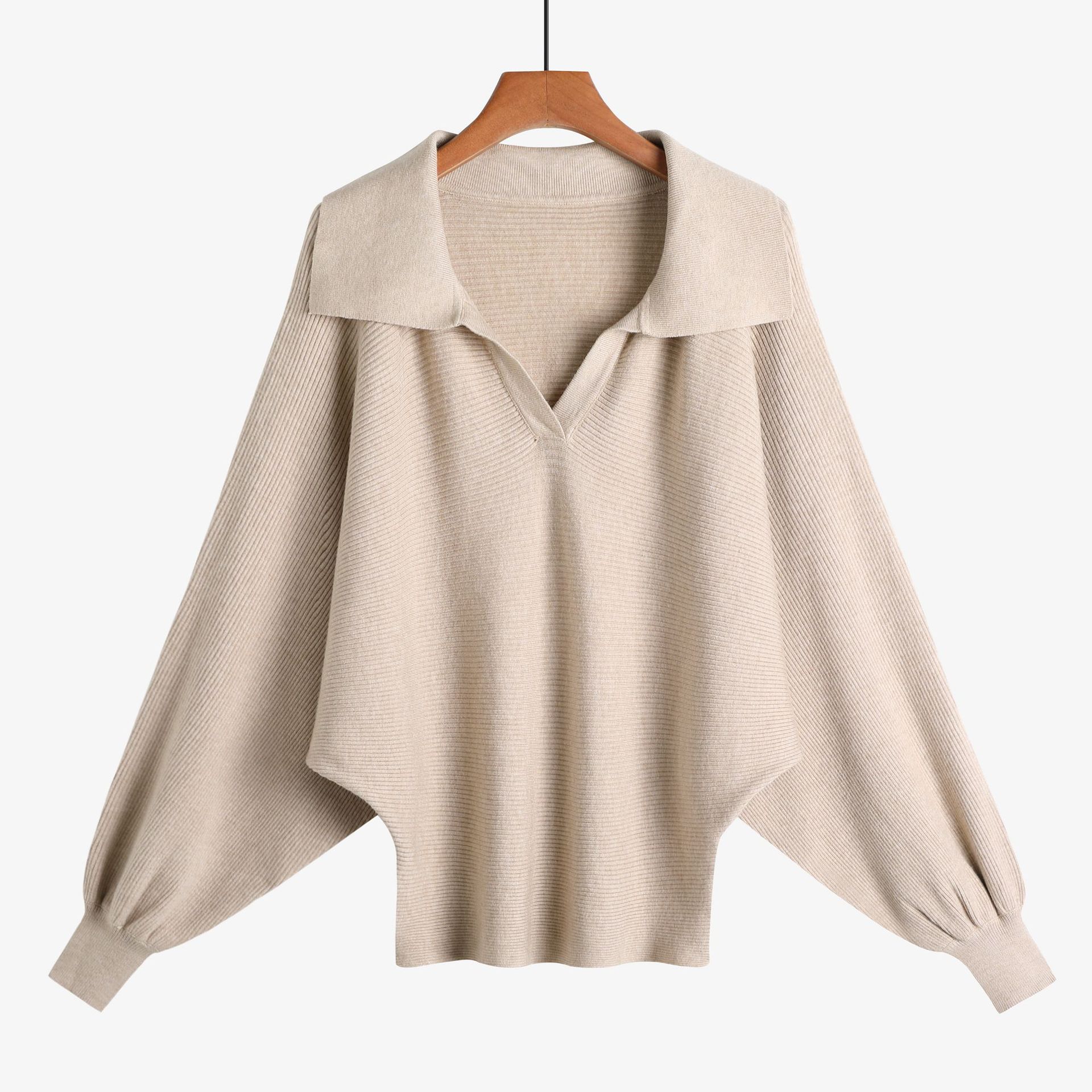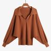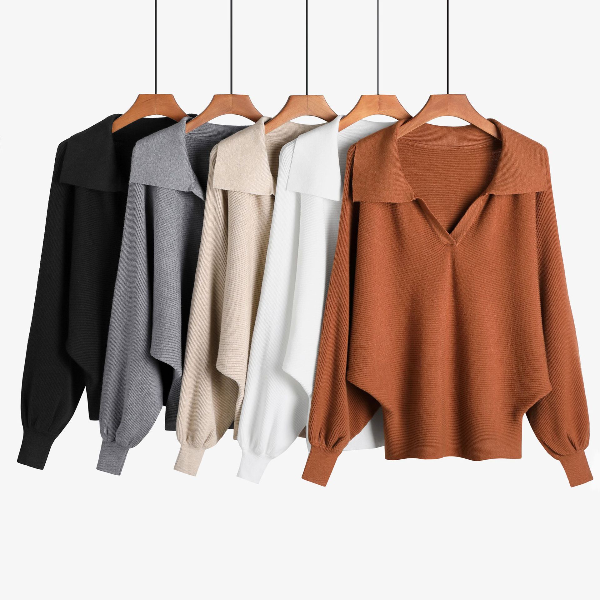 Suéter de Color Sólido Europeo y Americano Otoño/Invierno 2025 para Mujer, Suelto, Tejido, Manga Linterna, Cuello Polo, Talla Grande, Suéter Murciélago