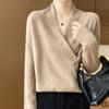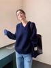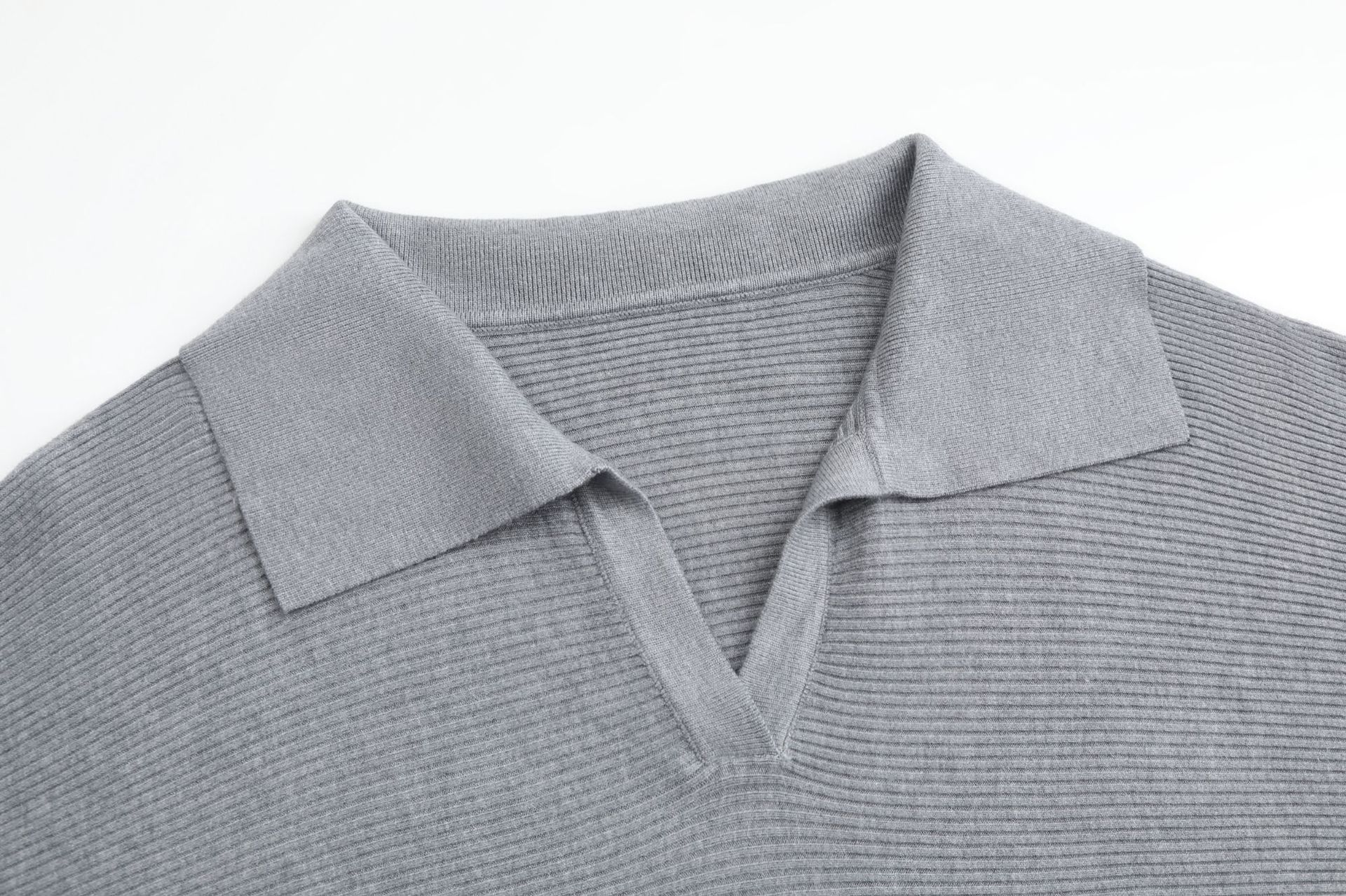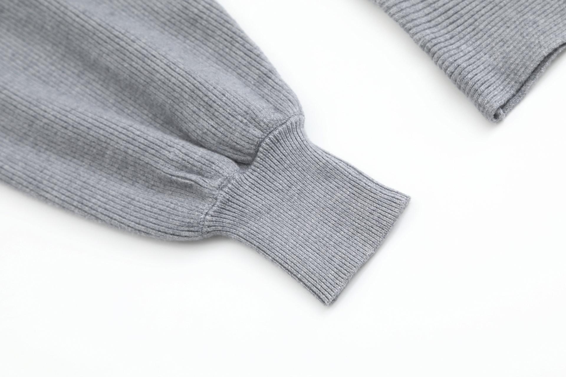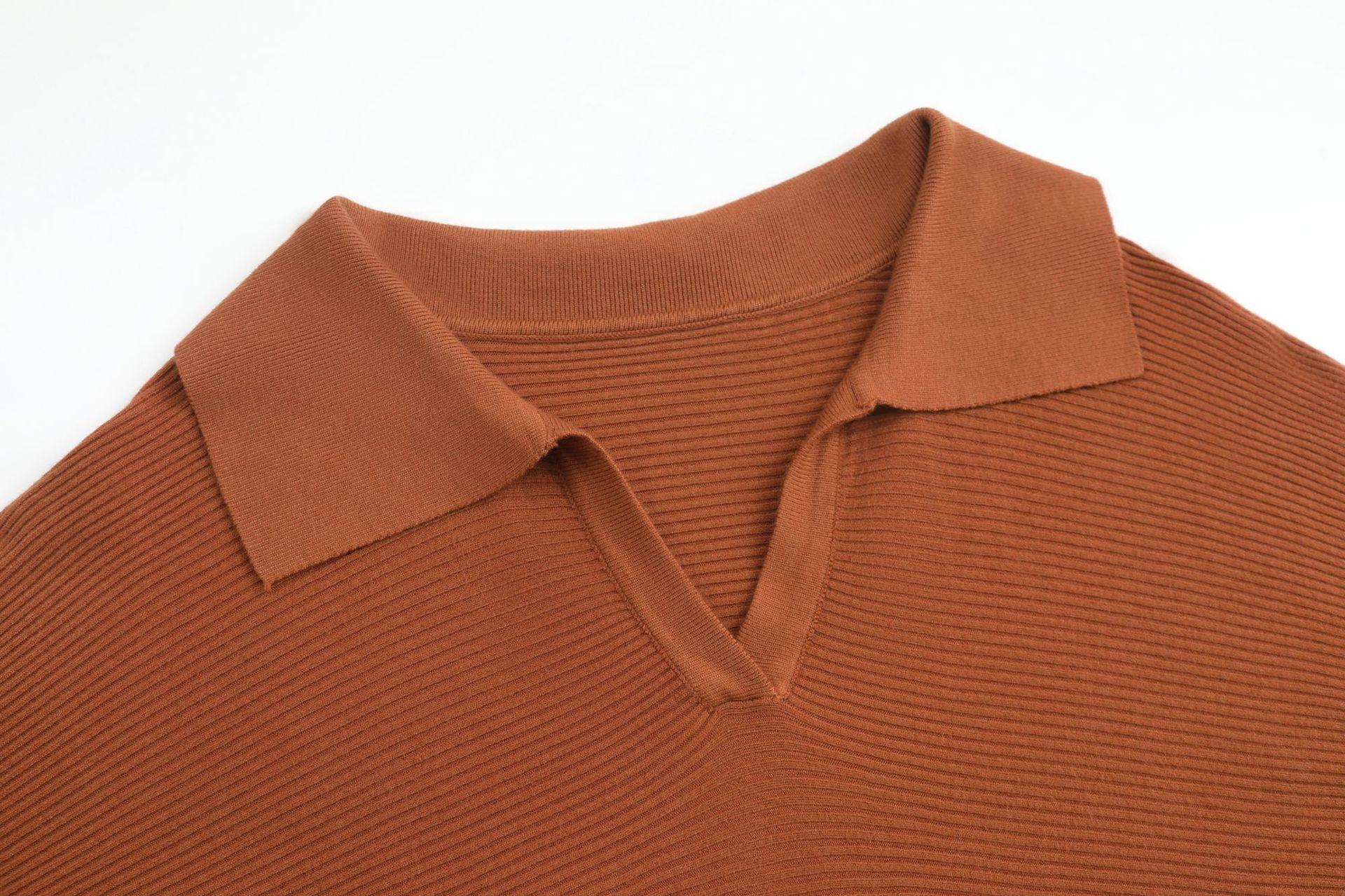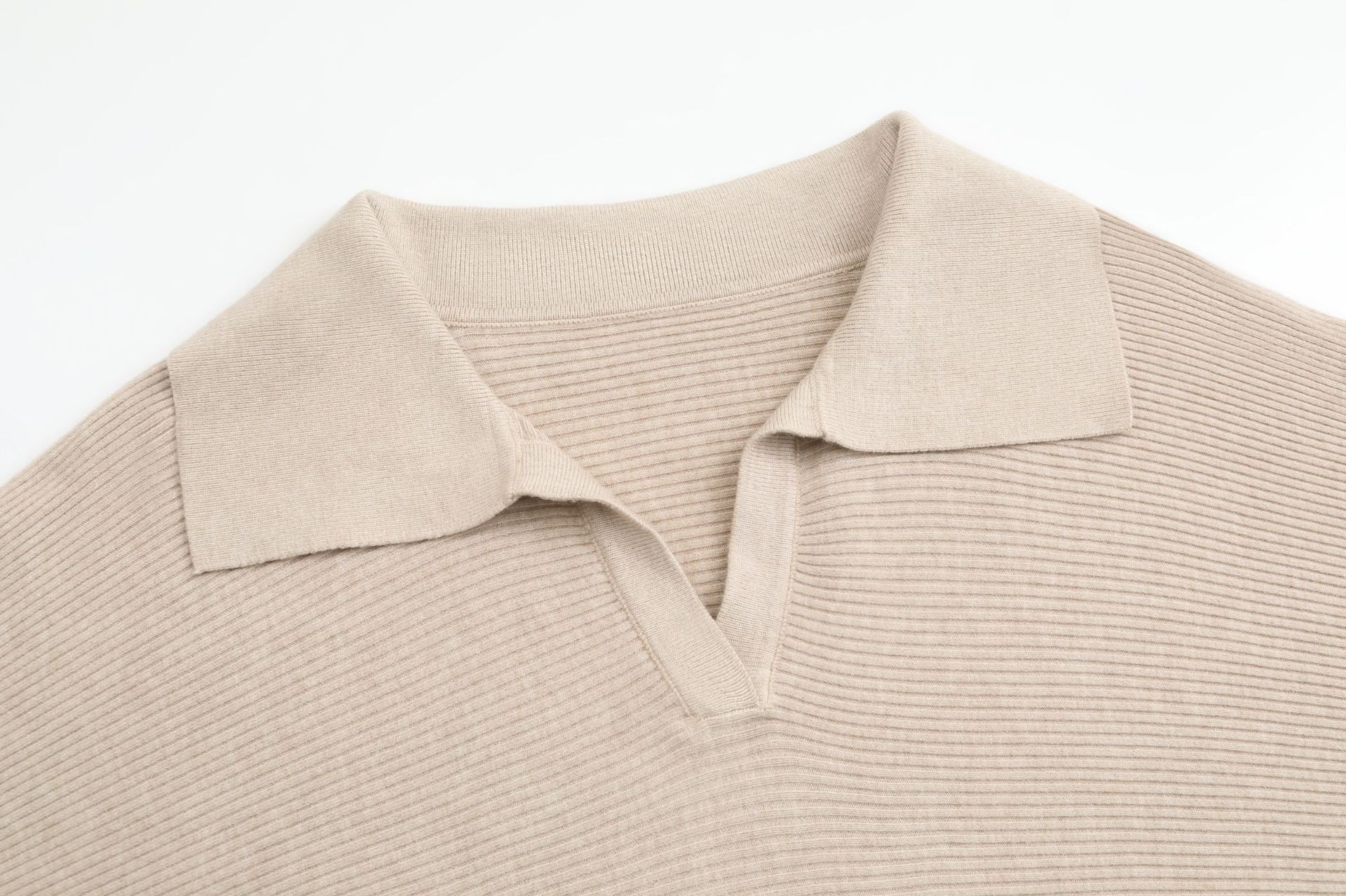 Suéter de Color Sólido Europeo y Americano Otoño/Invierno 2025 para Mujer, Suelto, Tejido, Manga Linterna, Cuello Polo, Talla Grande, Suéter Murciélago
