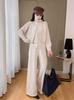 Moda Transfronteriza Casual Conjunto de Punto para Mujer Otoño e Invierno Nuevo Cárdigan Corto Engrosado Chaleco de Cuello Alto Pantalones de Pierna Ancha Conjunto de Tres Piezas