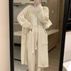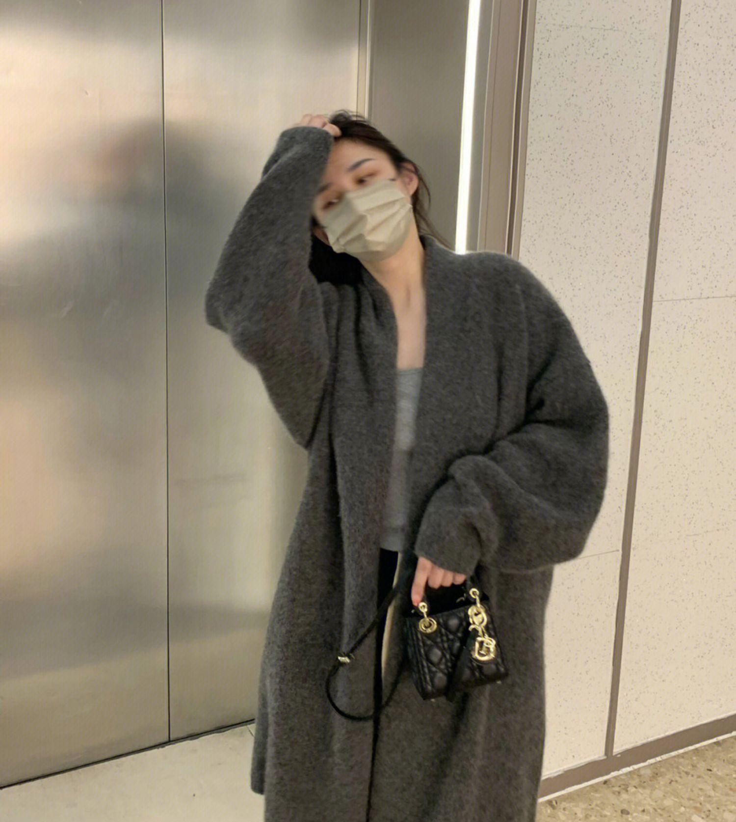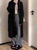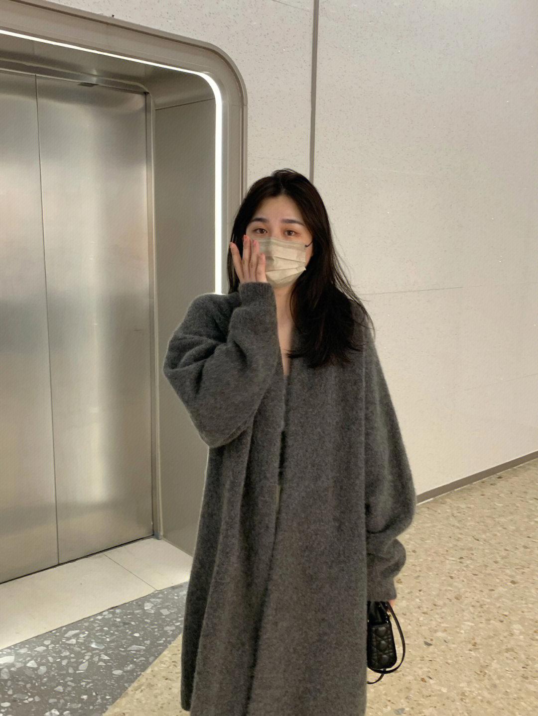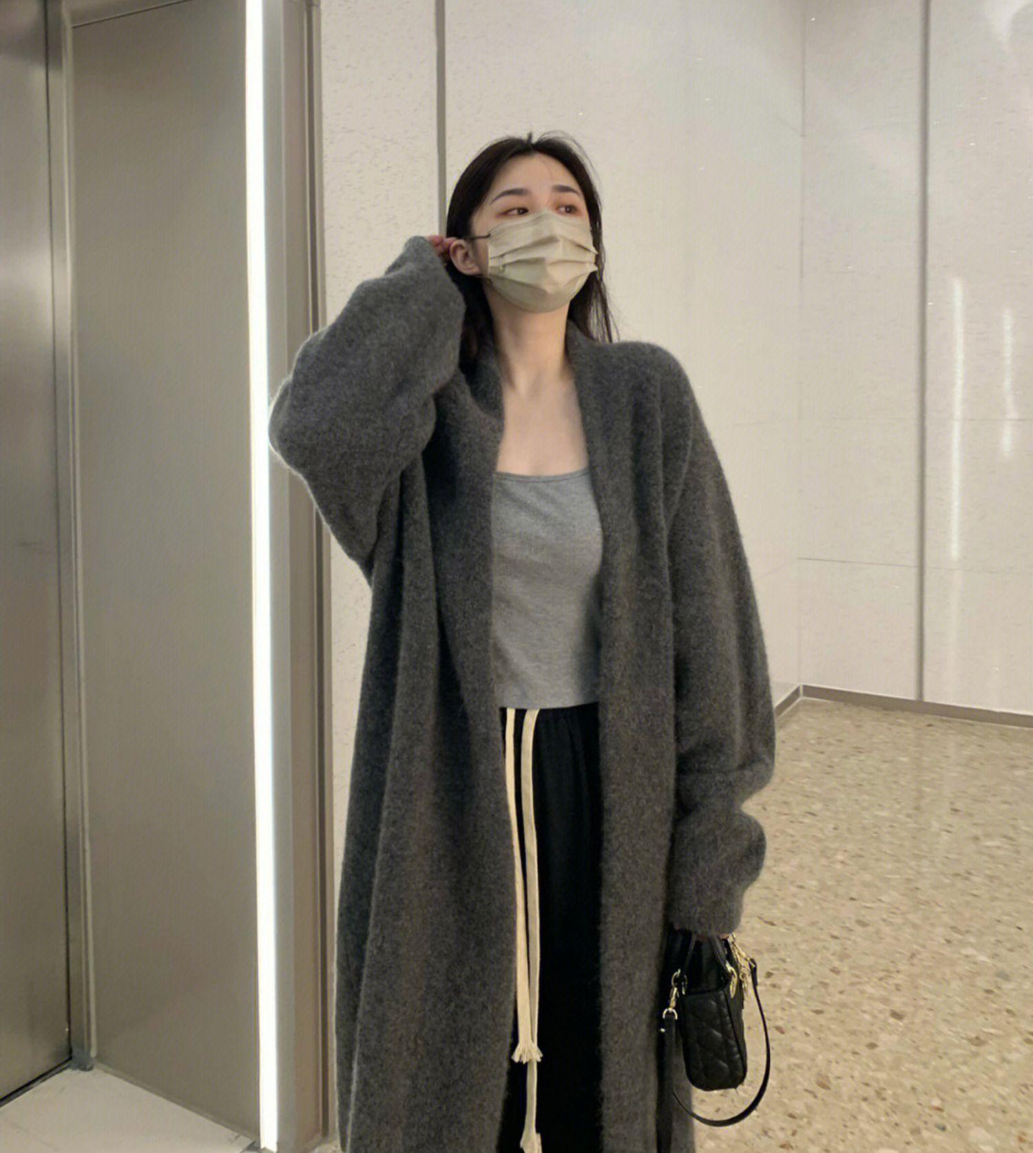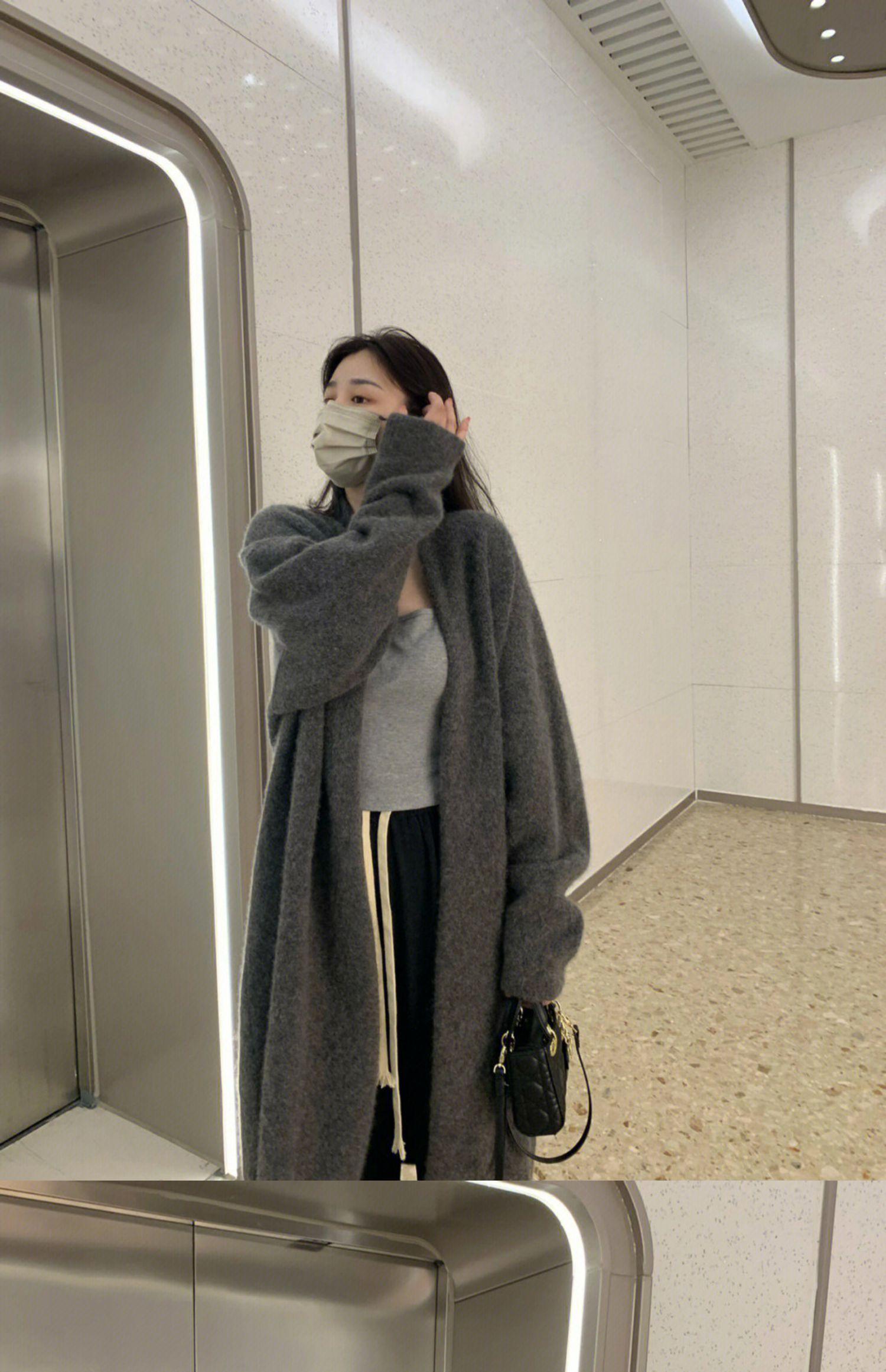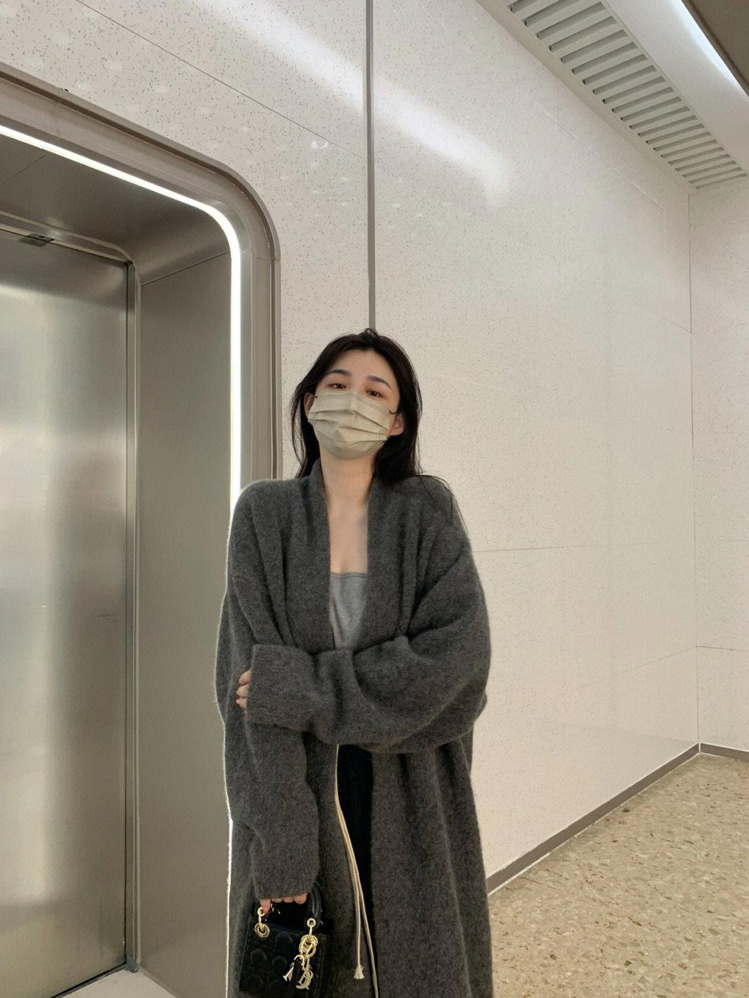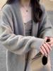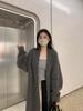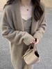Abrigo Suéter Gris de Largo Medio Sobre la Rodilla para Mujer Primavera Otoño Invierno Estilo Holgazán Grueso de Cachemira Tejido Cárdigan