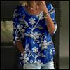 2025 Nueva Ropa de Mujer Europea y Americana de Comercio Exterior Transfronterizo Amazon AliExpress Estación Independiente Top de Manga con Cuello Redondo Estampado