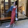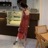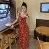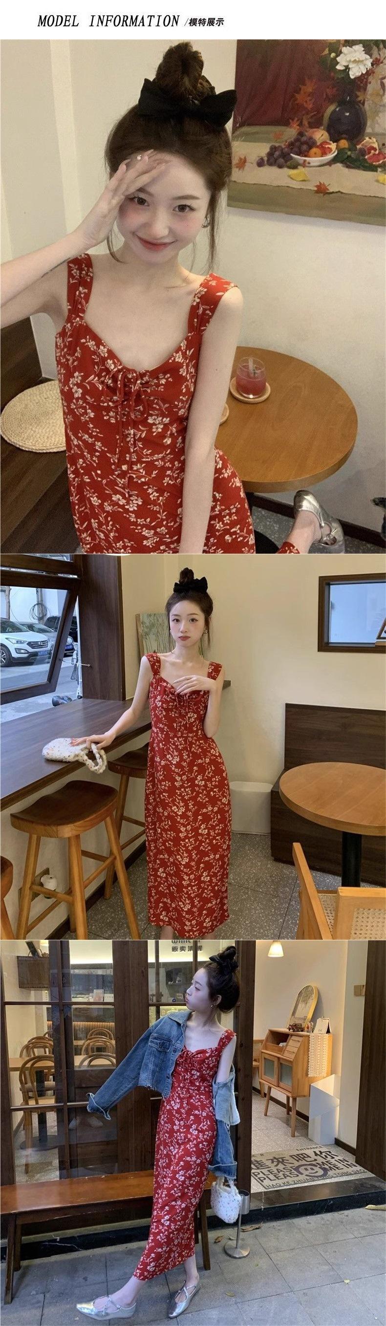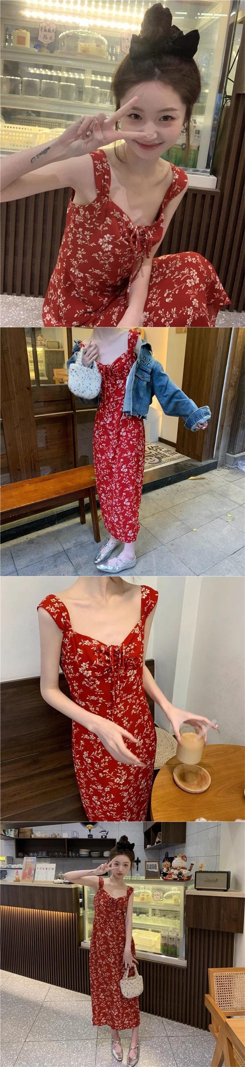 Té de la Tarde Floral 2025 Verano Nuevo Francés Retro Rojo Floral Reductor de Cintura Nicho Vestido Sling