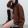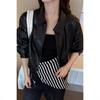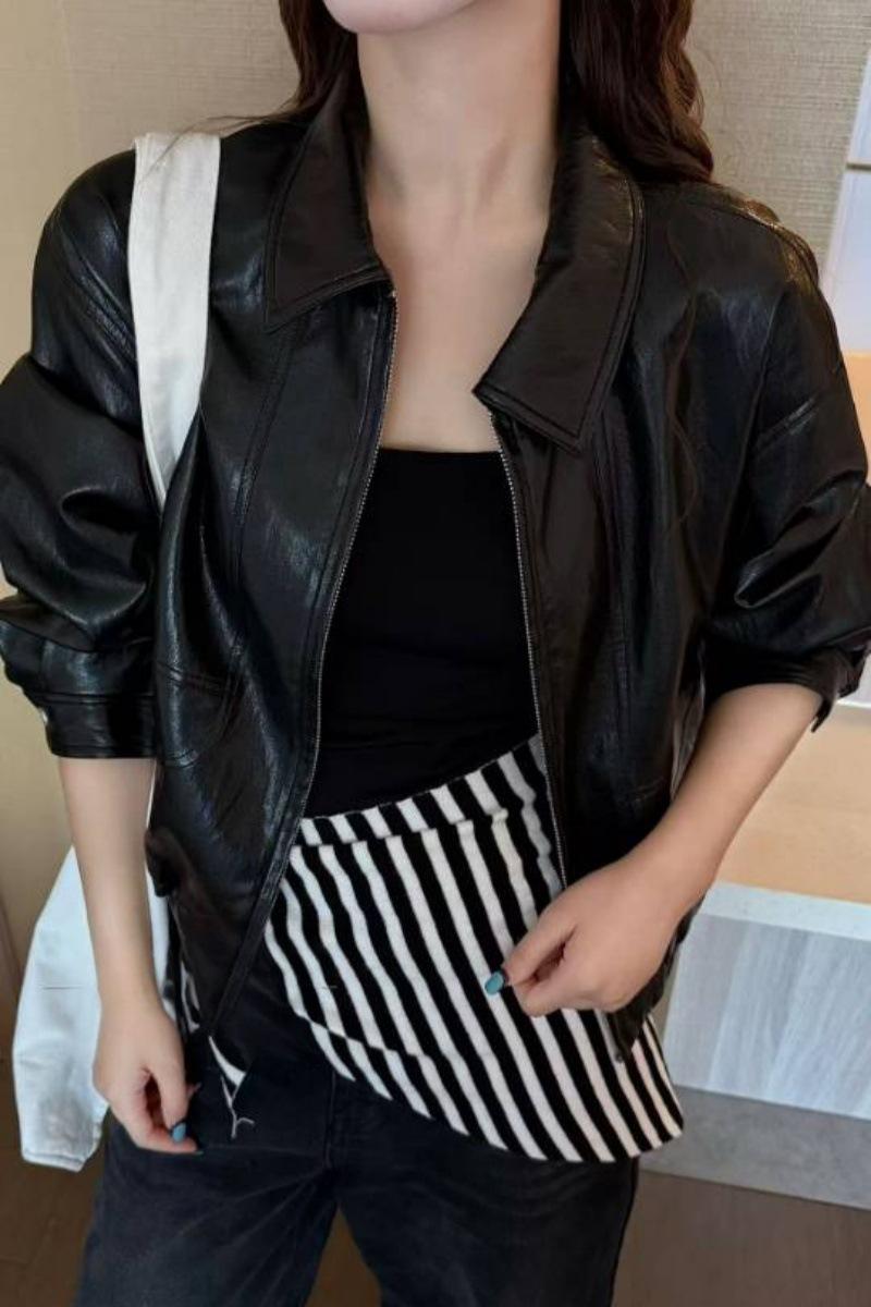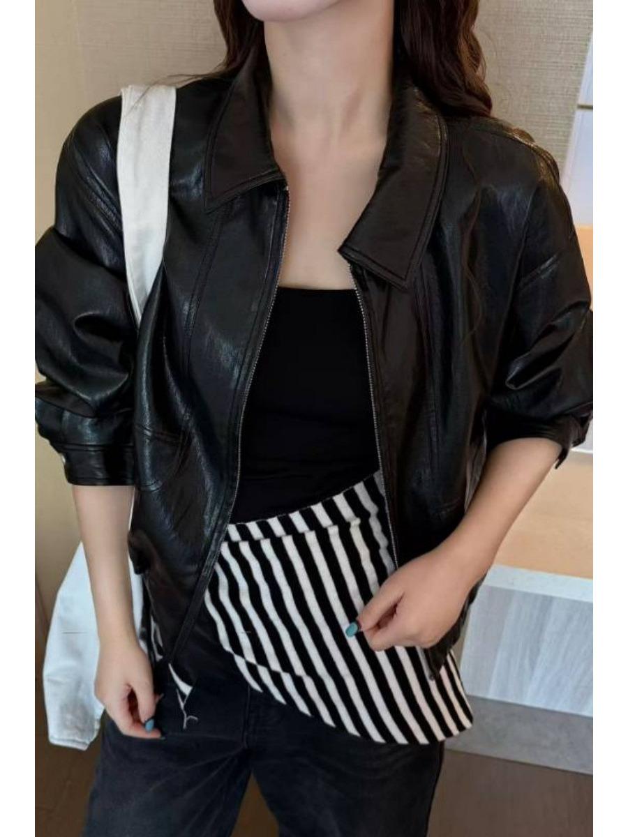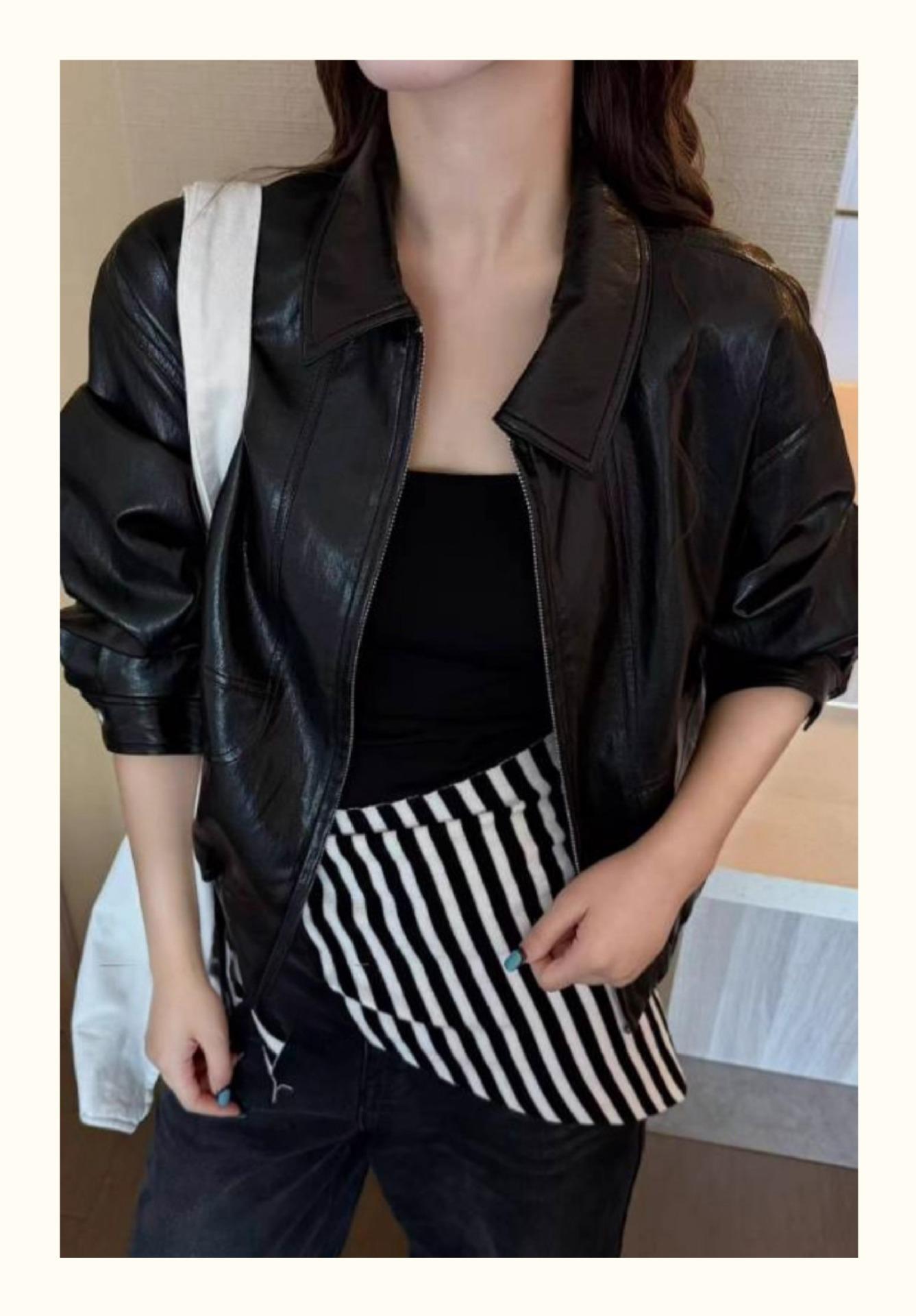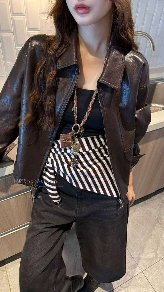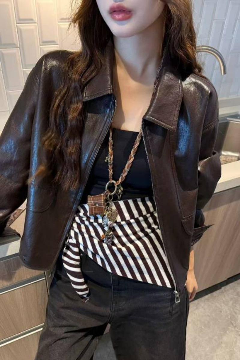 Chaqueta Corta de Cuero Retro Estilo Coreano Abrigo Mujer 2025 Otoño Nuevo Casual Temperamento Manga Larga Cuero PU Chaqueta de Motociclista Mujer