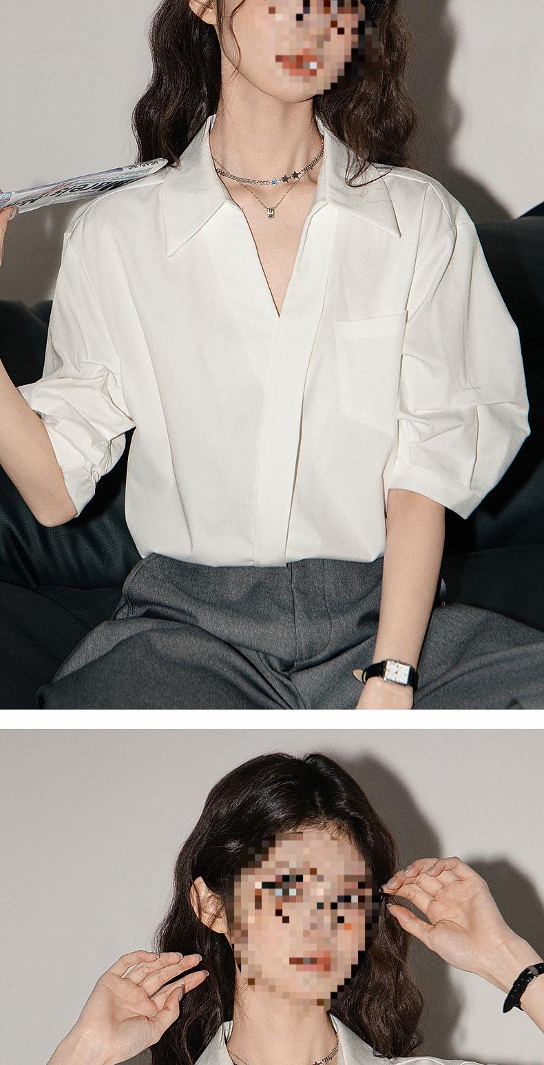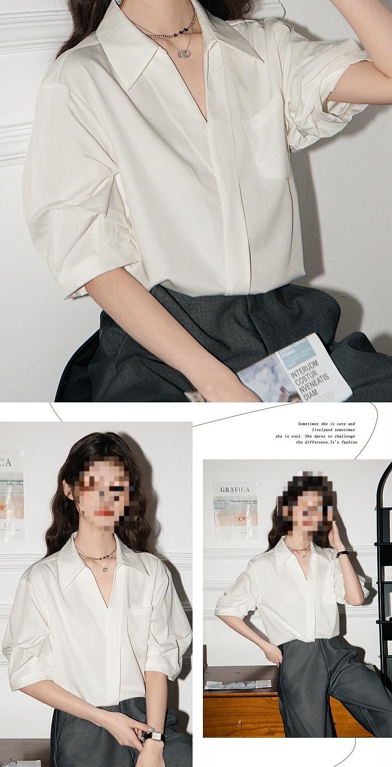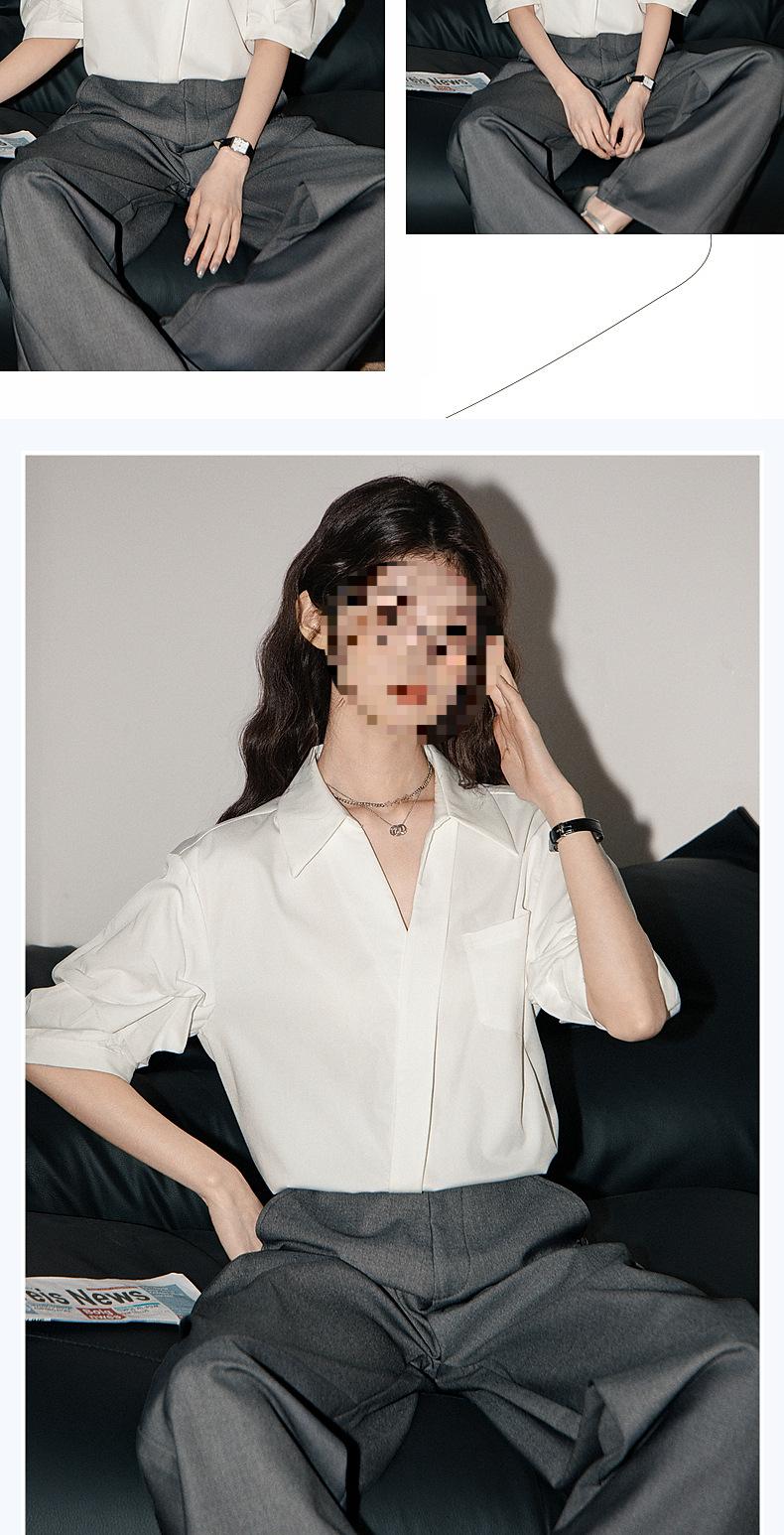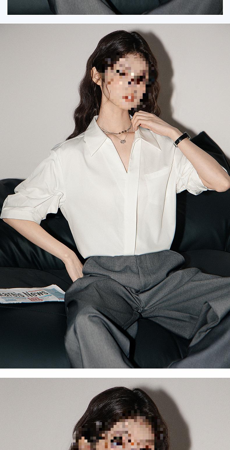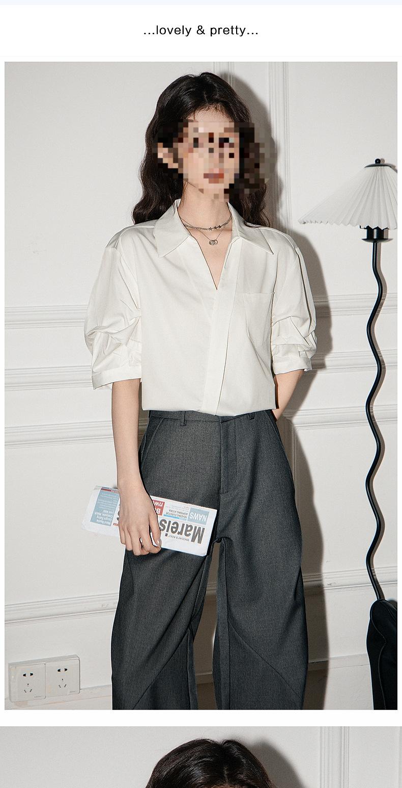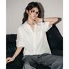 Camisa de Mujer Primavera y Verano Nueva Casual Holgada Francesa Nicho Top Cuello en V Manga Corta Camisa Blanca