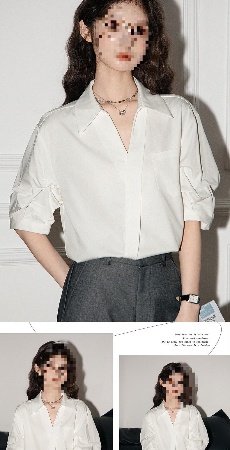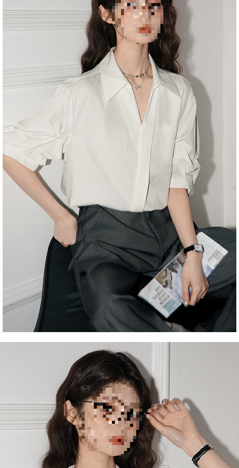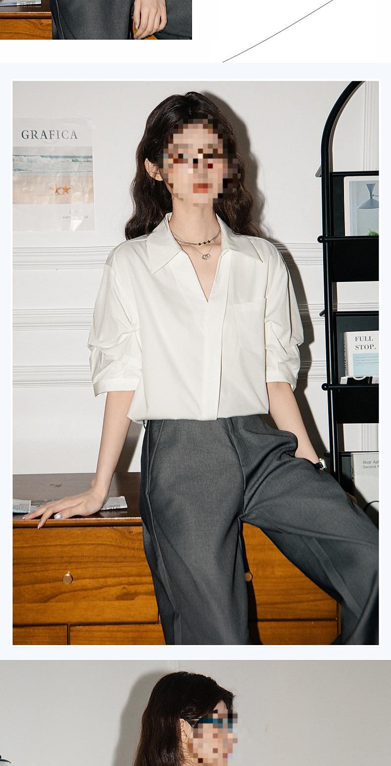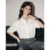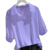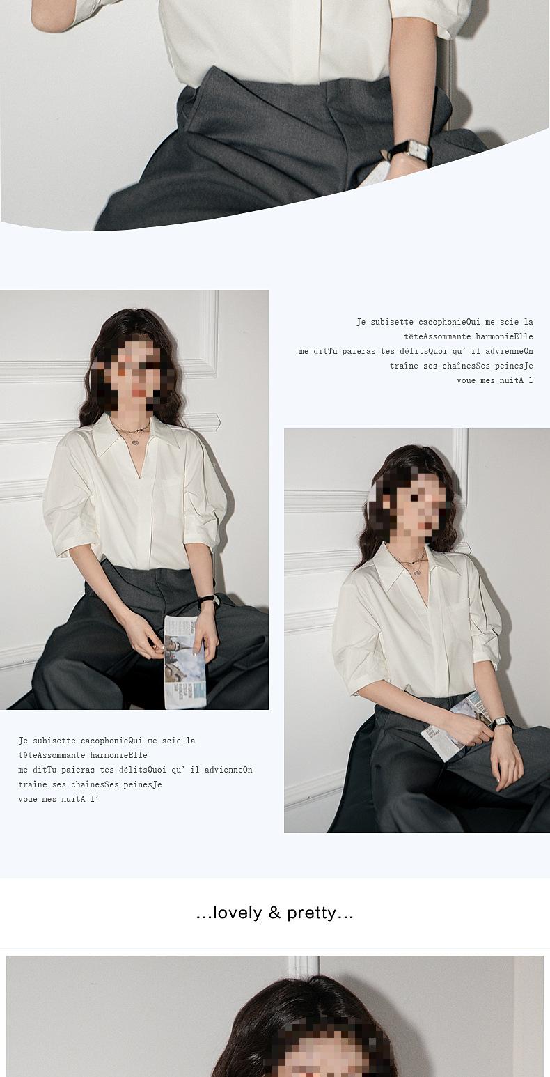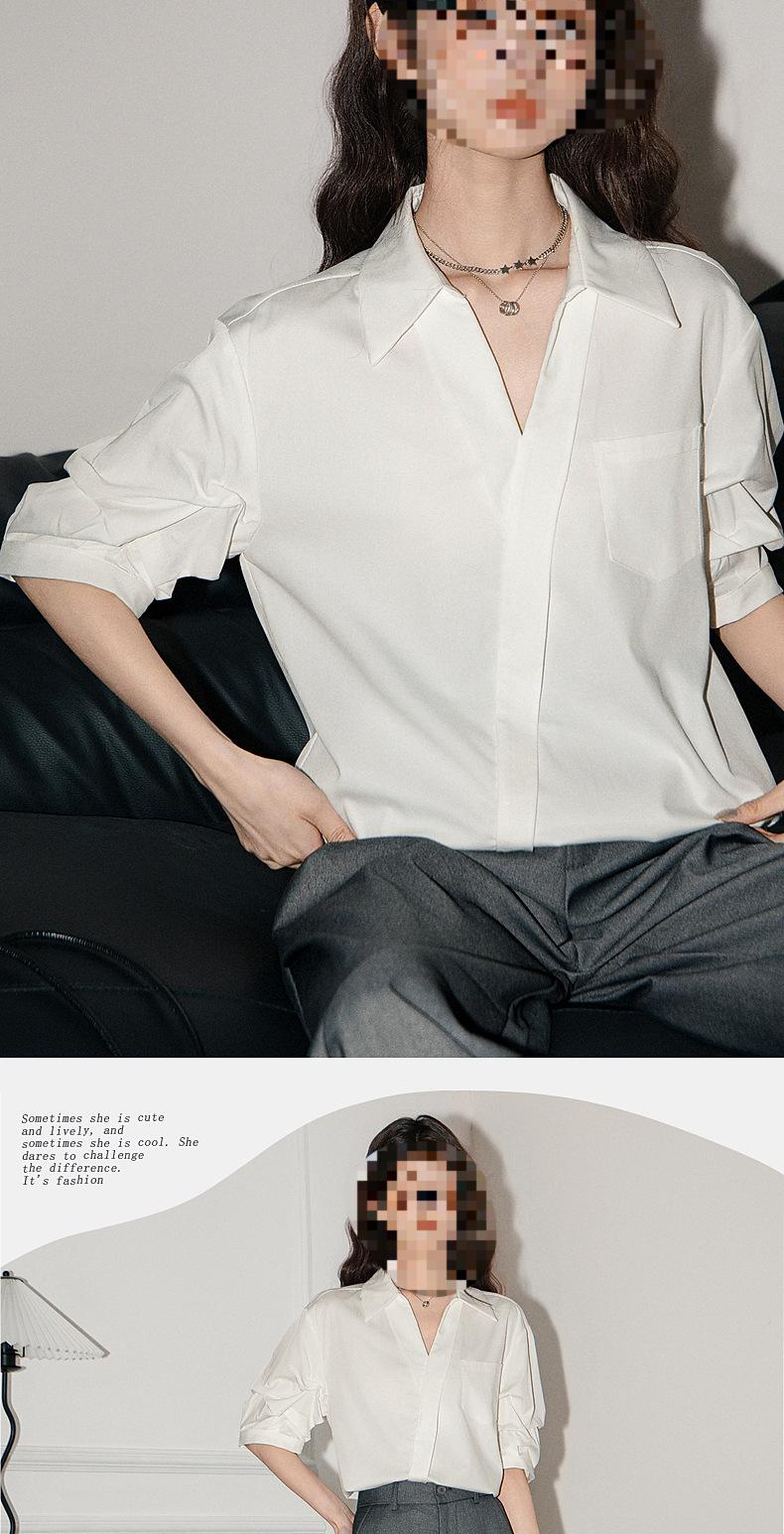Camisa de Mujer Primavera y Verano Nueva Casual Holgada Francesa Nicho Top Cuello en V Manga Corta Camisa Blanca