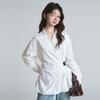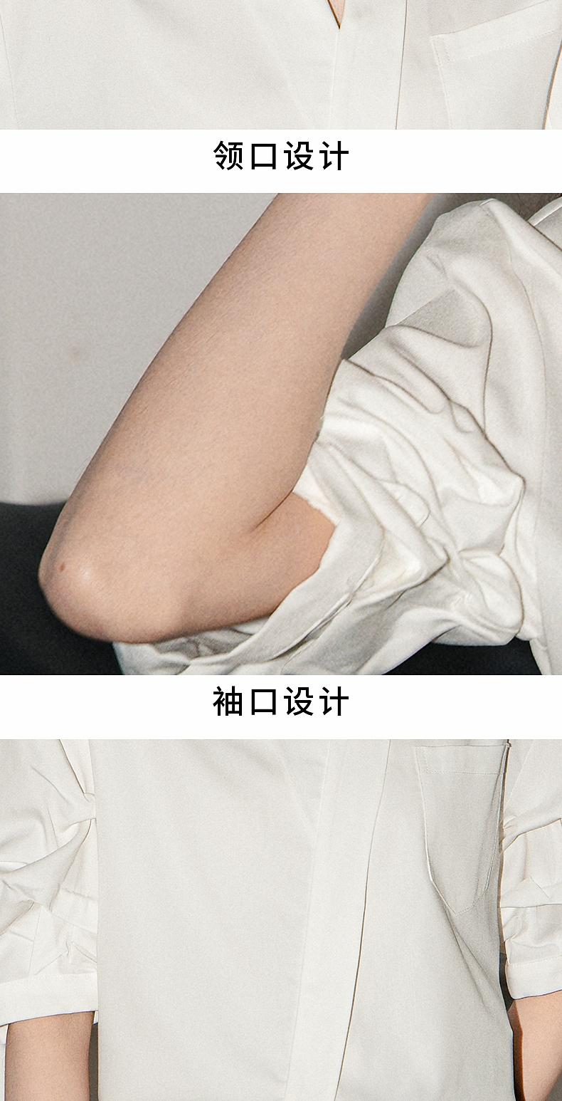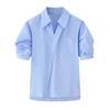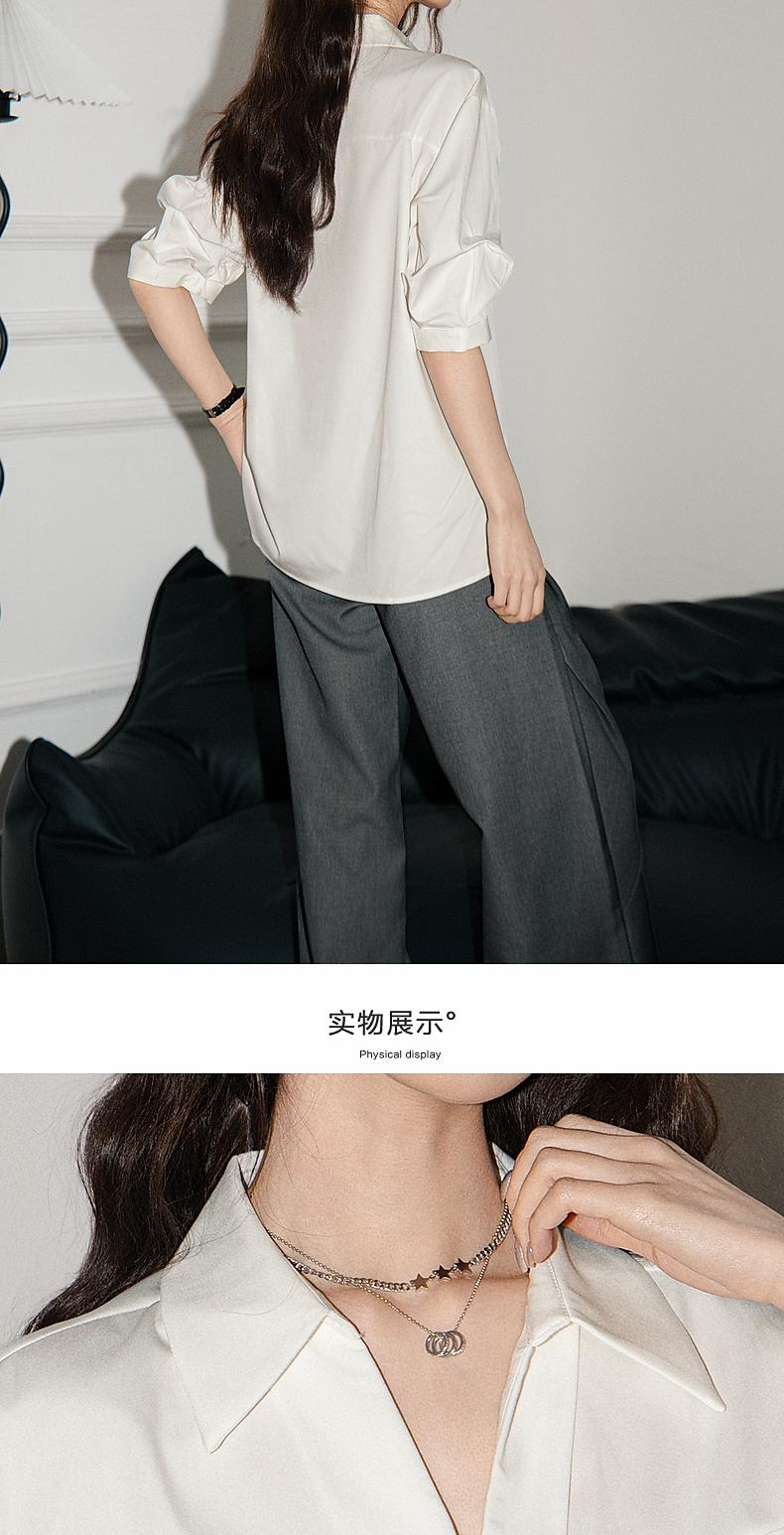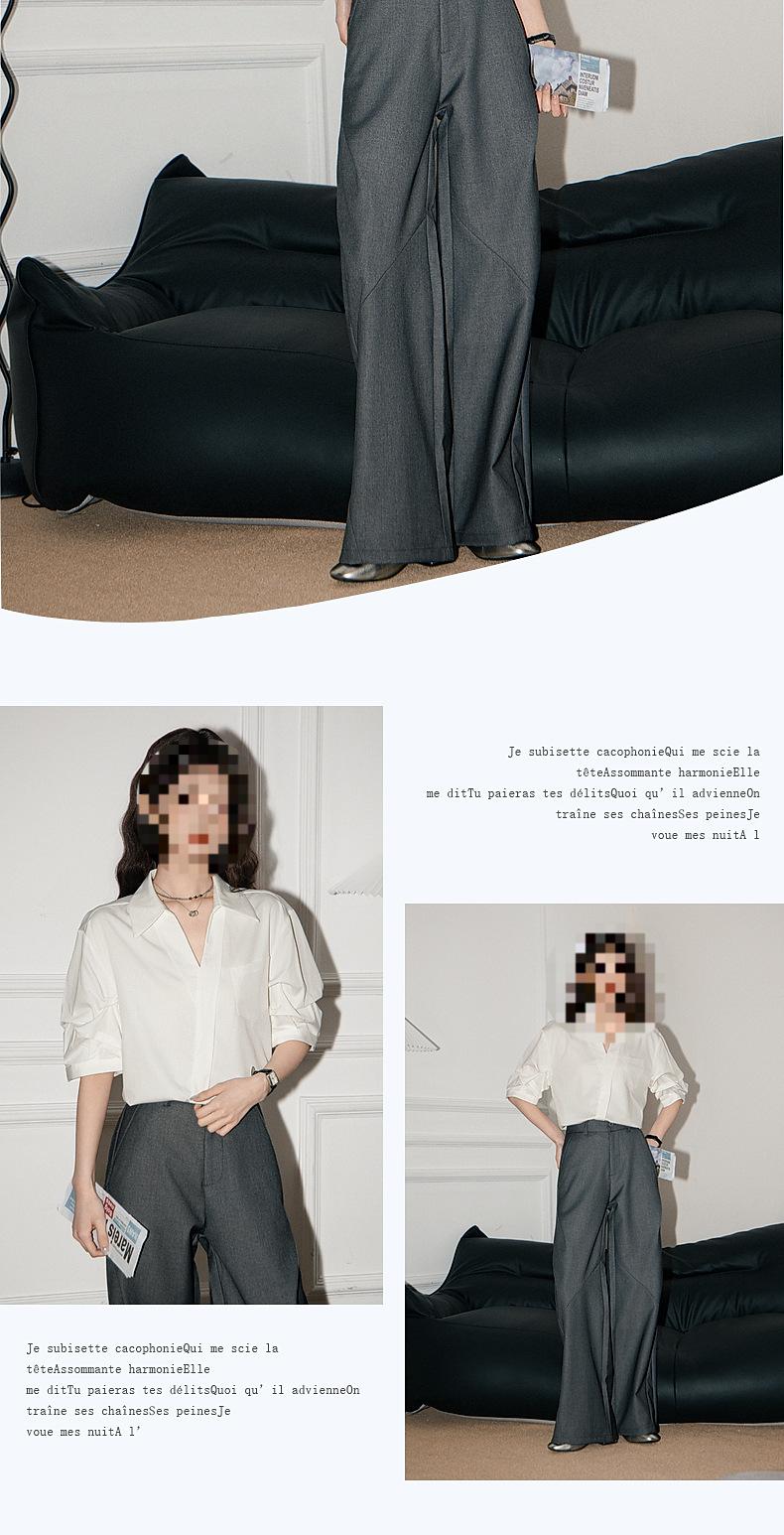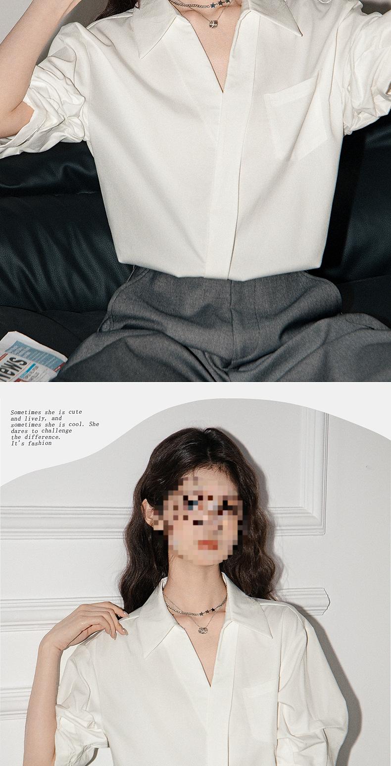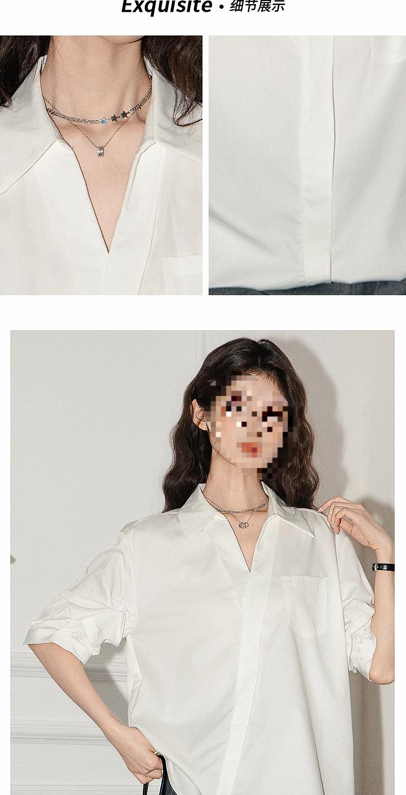 Camisa de Mujer Primavera y Verano Nueva Casual Holgada Francesa Nicho Top Cuello en V Manga Corta Camisa Blanca