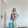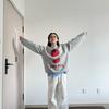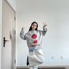 Sudadera Universitaria de Cuello Redondo para Mujer Hip-Hop Elegante Neutra Top sin Capucha Estampado Estilo Relajado Personalidad Dulce y Fresca