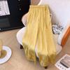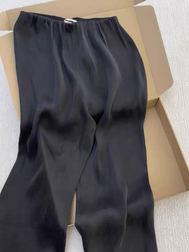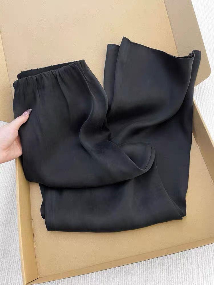 Pantalones Frescos de Seda Cupro Negra de Alta Gama para Mujer Verano 2025 Versátiles Drapeados Cintura Elástica Sueltos Pierna Ancha