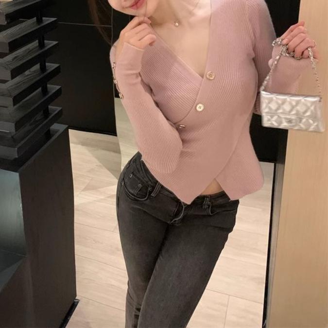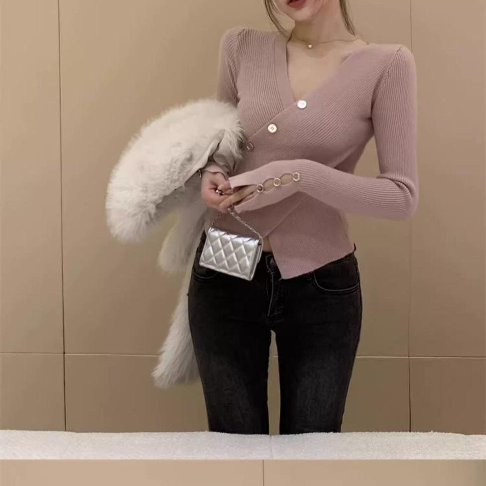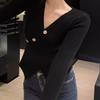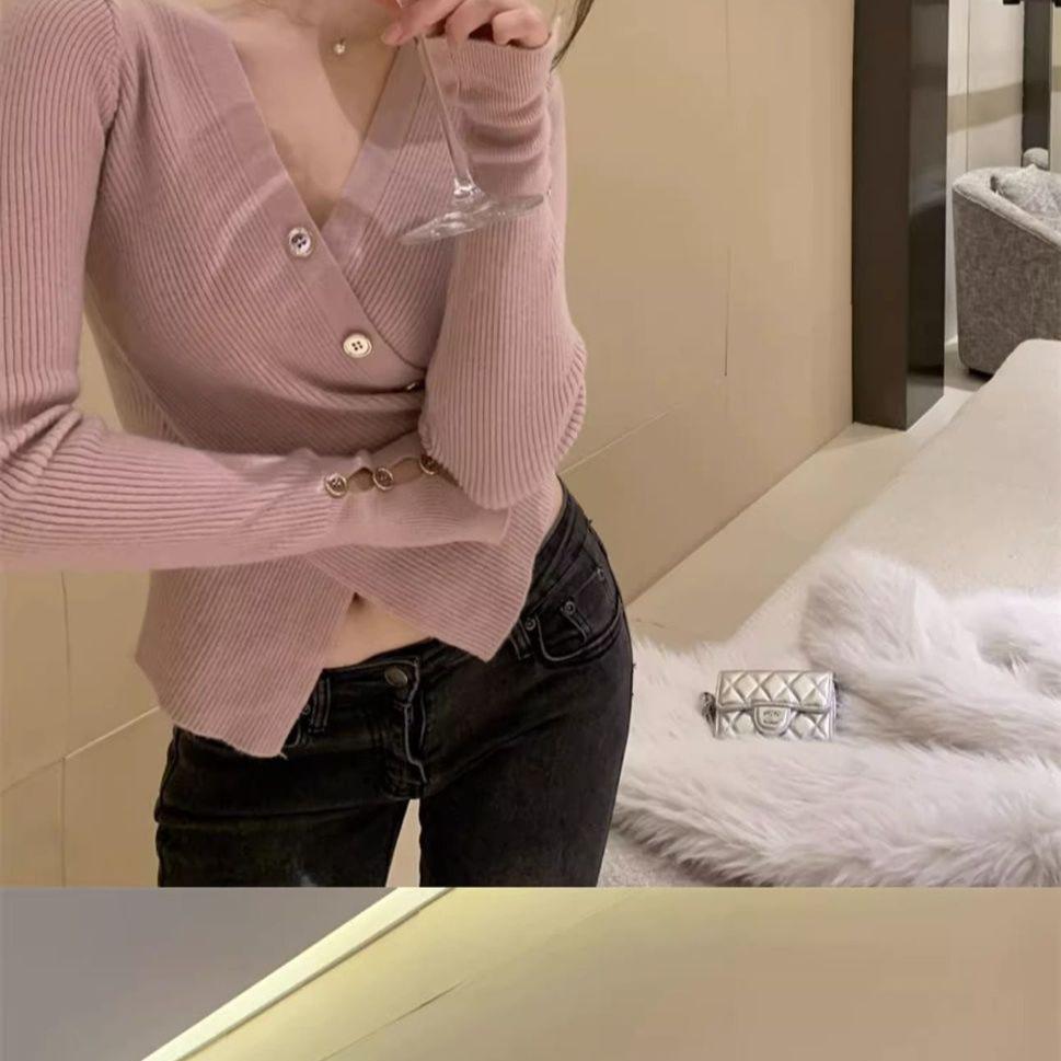 2025 Nuevo Otoño/Invierno para Mujer Diseño Dulce y Picante Sentido Abertura Base Top de Punto Nuevo Producto Ropa Interior Suéter Adelgazante