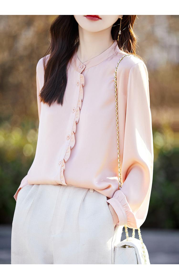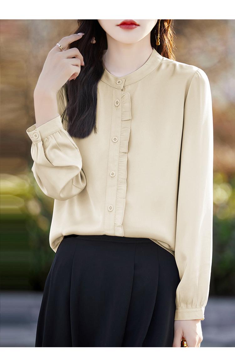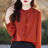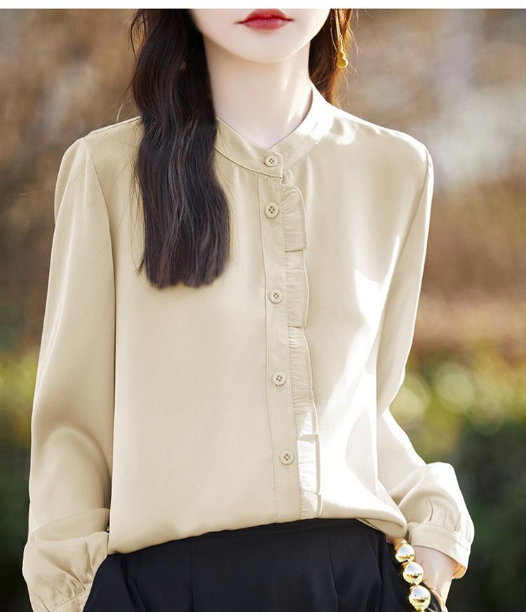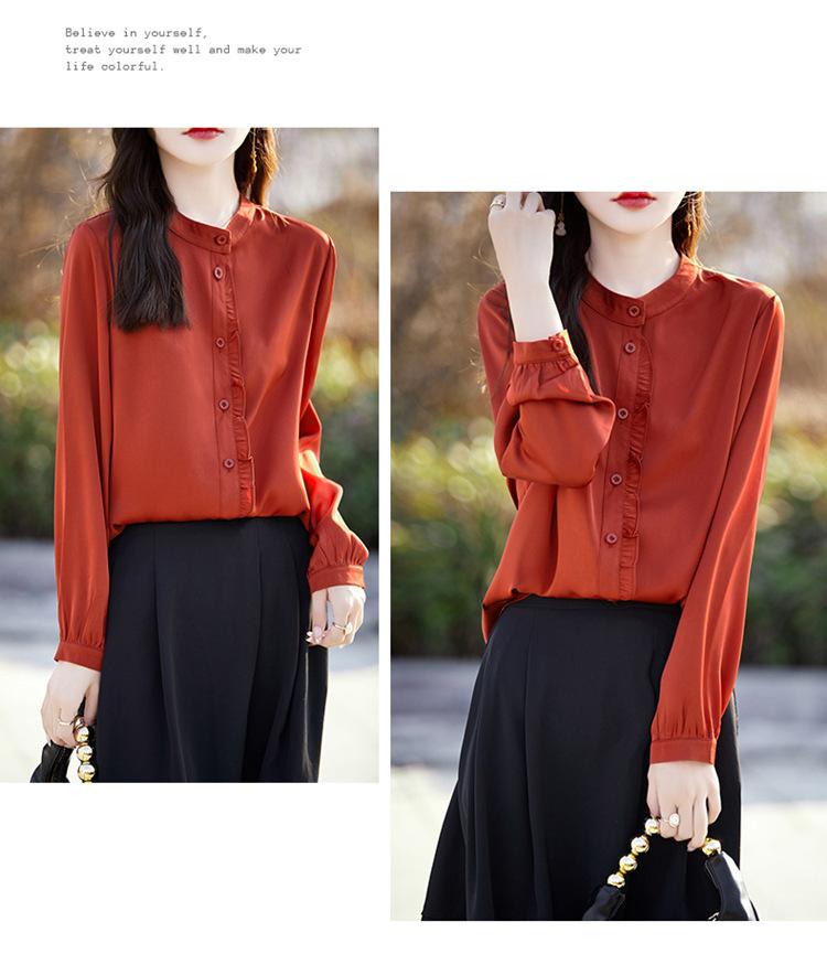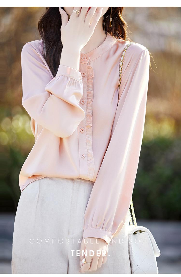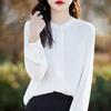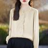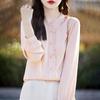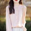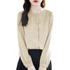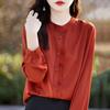 2025 Principios de Otoño Nuevo Satén Cuello Redondo Camisa de Punto Cárdigan Hongo Color Puro Holgado Versátil Camisa Top