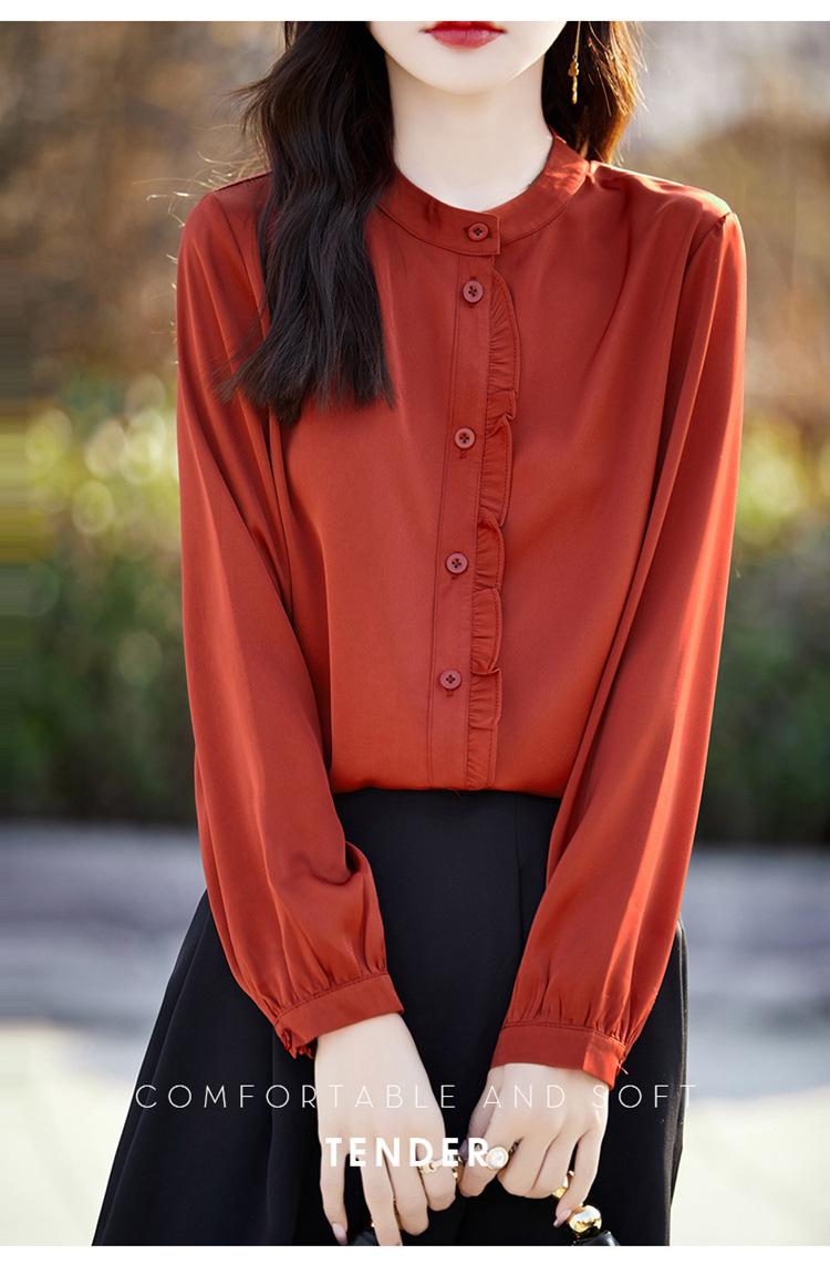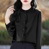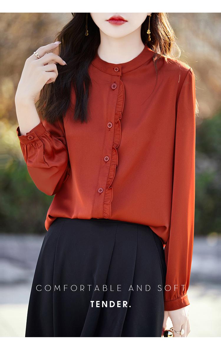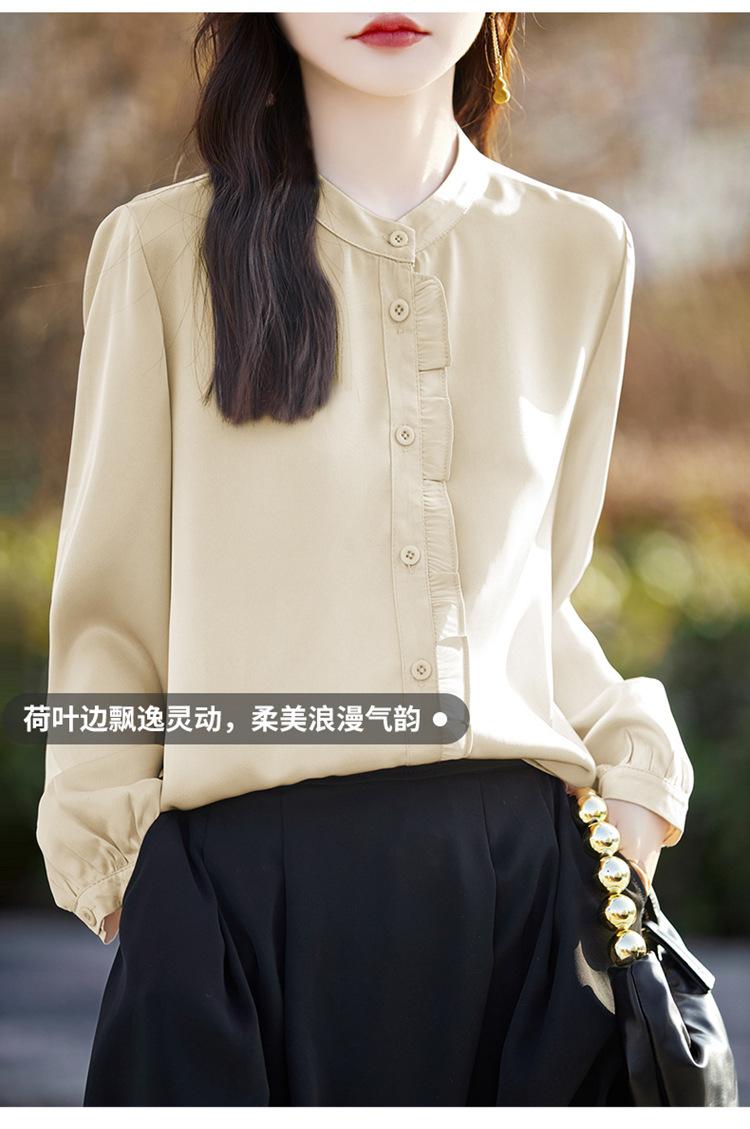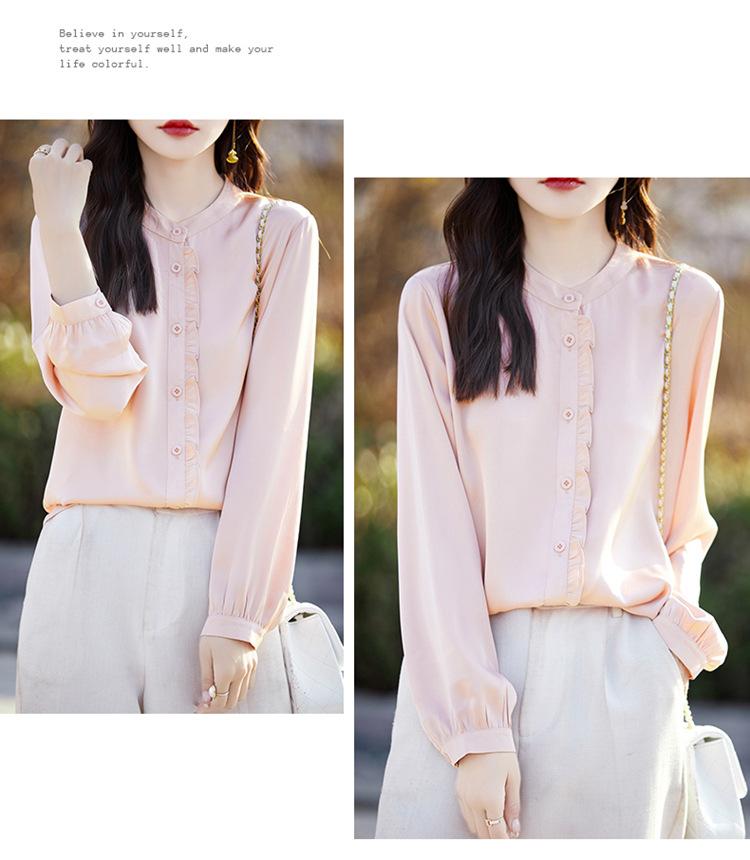 2025 Principios de Otoño Nuevo Satén Cuello Redondo Camisa de Punto Cárdigan Hongo Color Puro Holgado Versátil Camisa Top