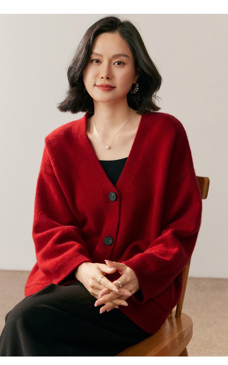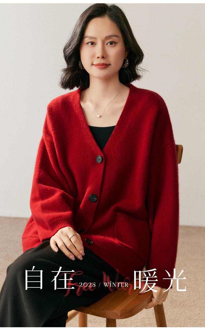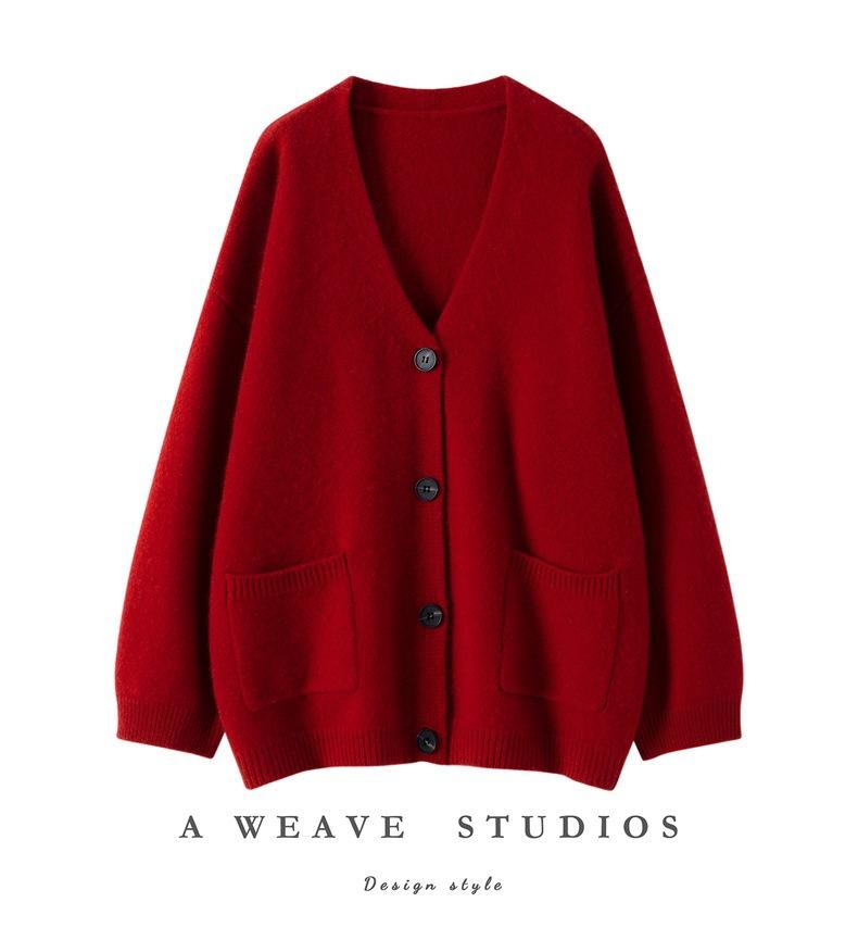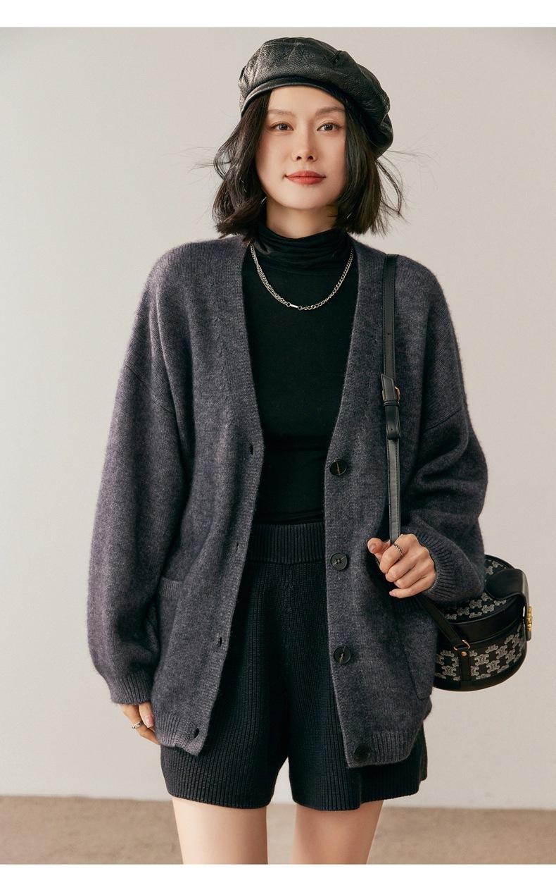 Cárdigan de Cachemira para Mujer 2025 Otoño/Invierno Espesado Cuello en V Estilo Holgazán Suelto Adelgazante Monopecho Abrigo de Punto Talla Plus
