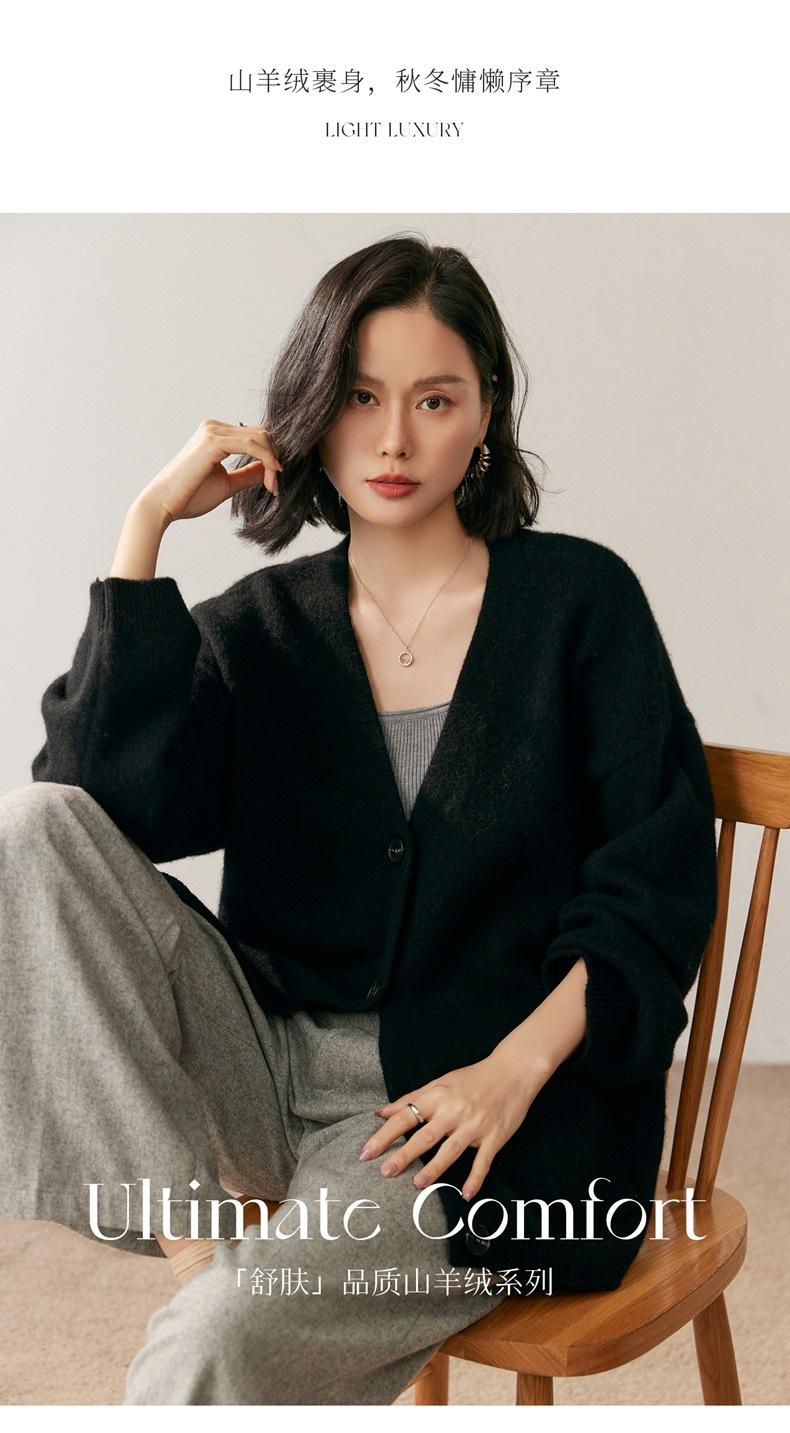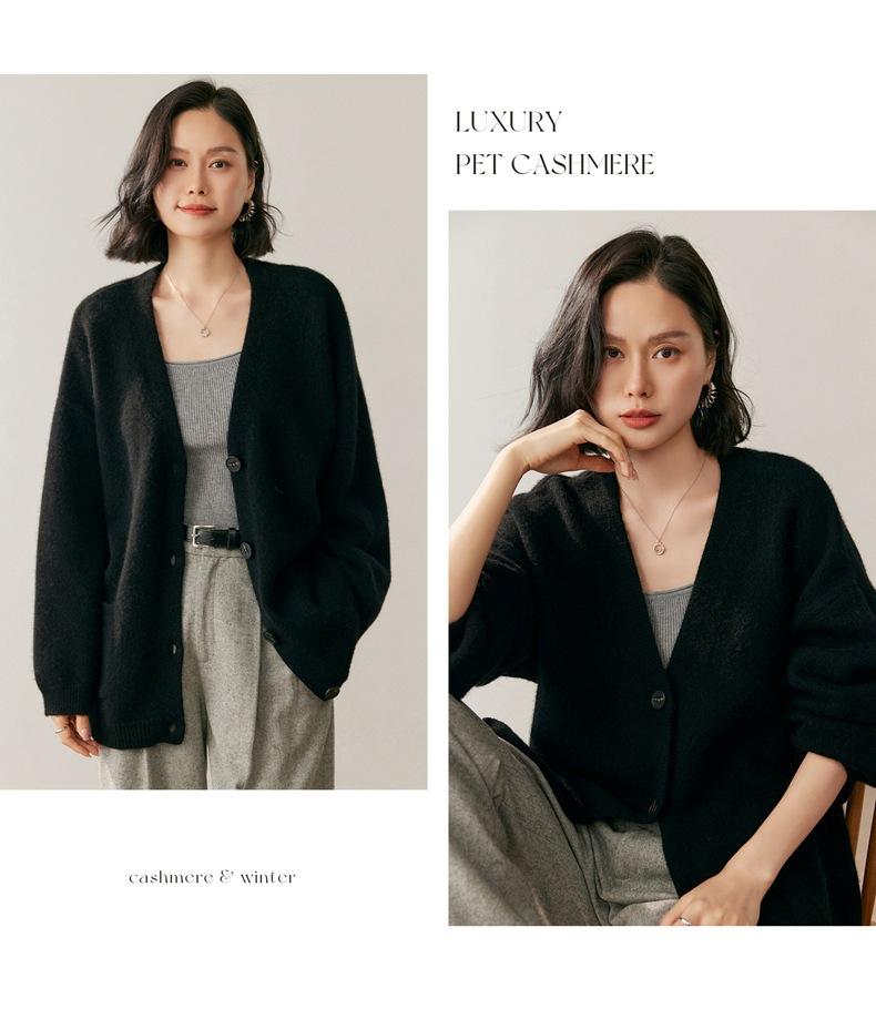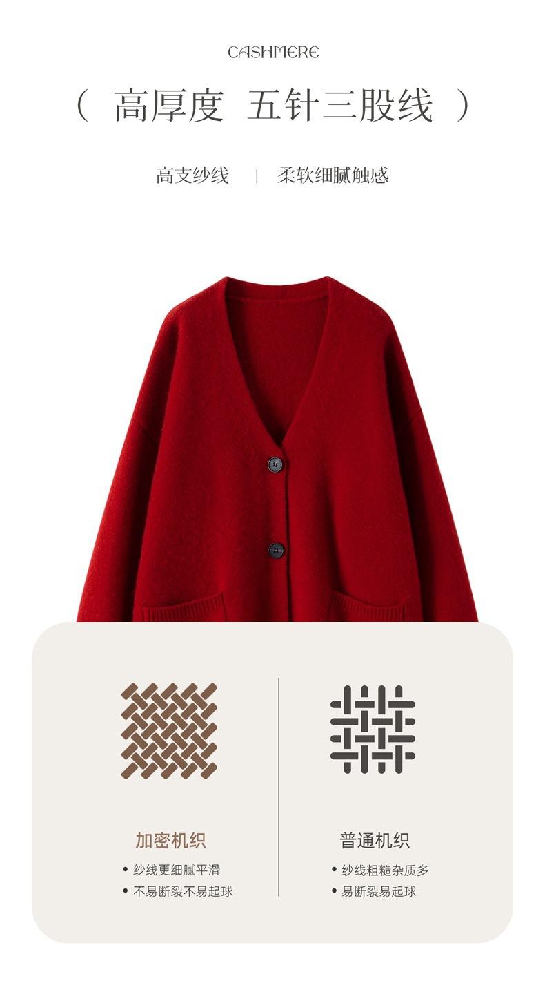 Cárdigan de Cachemira para Mujer 2025 Otoño/Invierno Espesado Cuello en V Estilo Holgazán Suelto Adelgazante Monopecho Abrigo de Punto Talla Plus