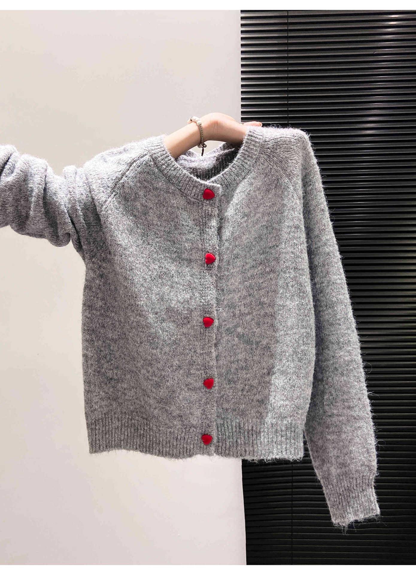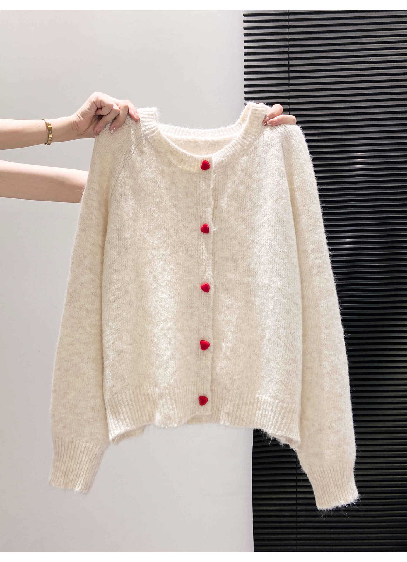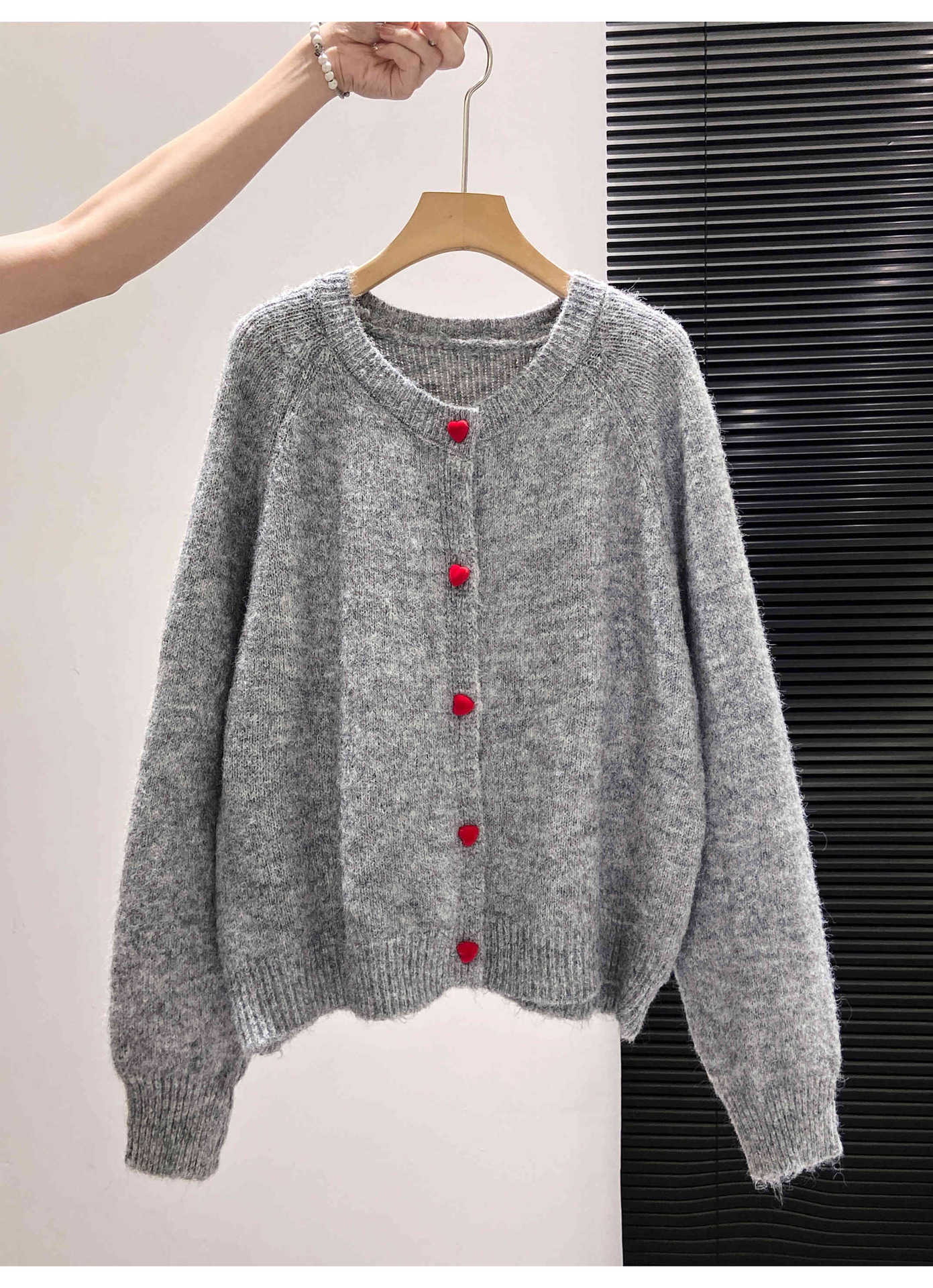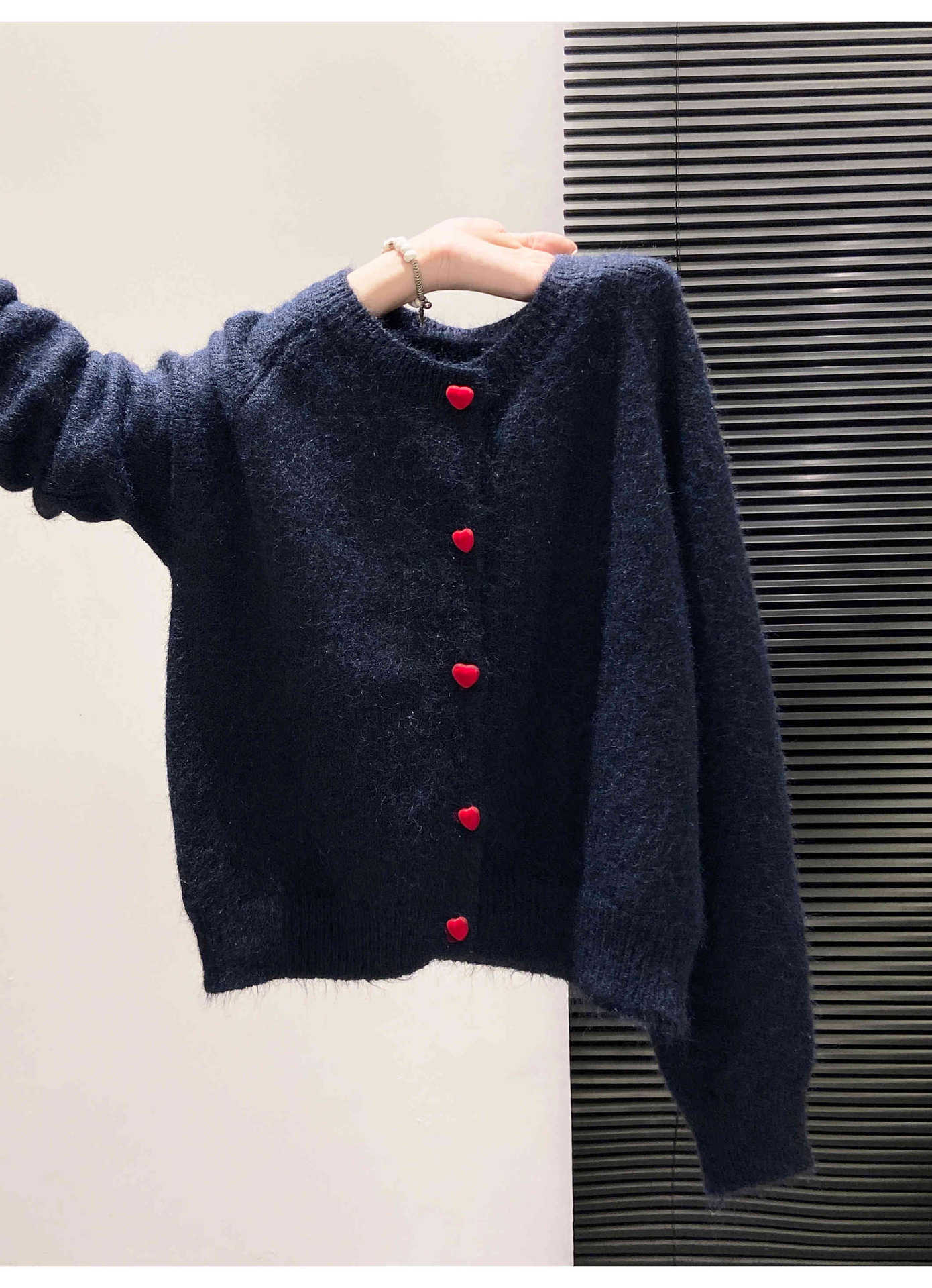 Cárdigan de punto suelto chic con diseño de botón de corazón, nuevo para otoño e invierno para mujer, chic, suave y glutinoso, abrigo superior de punto suelto