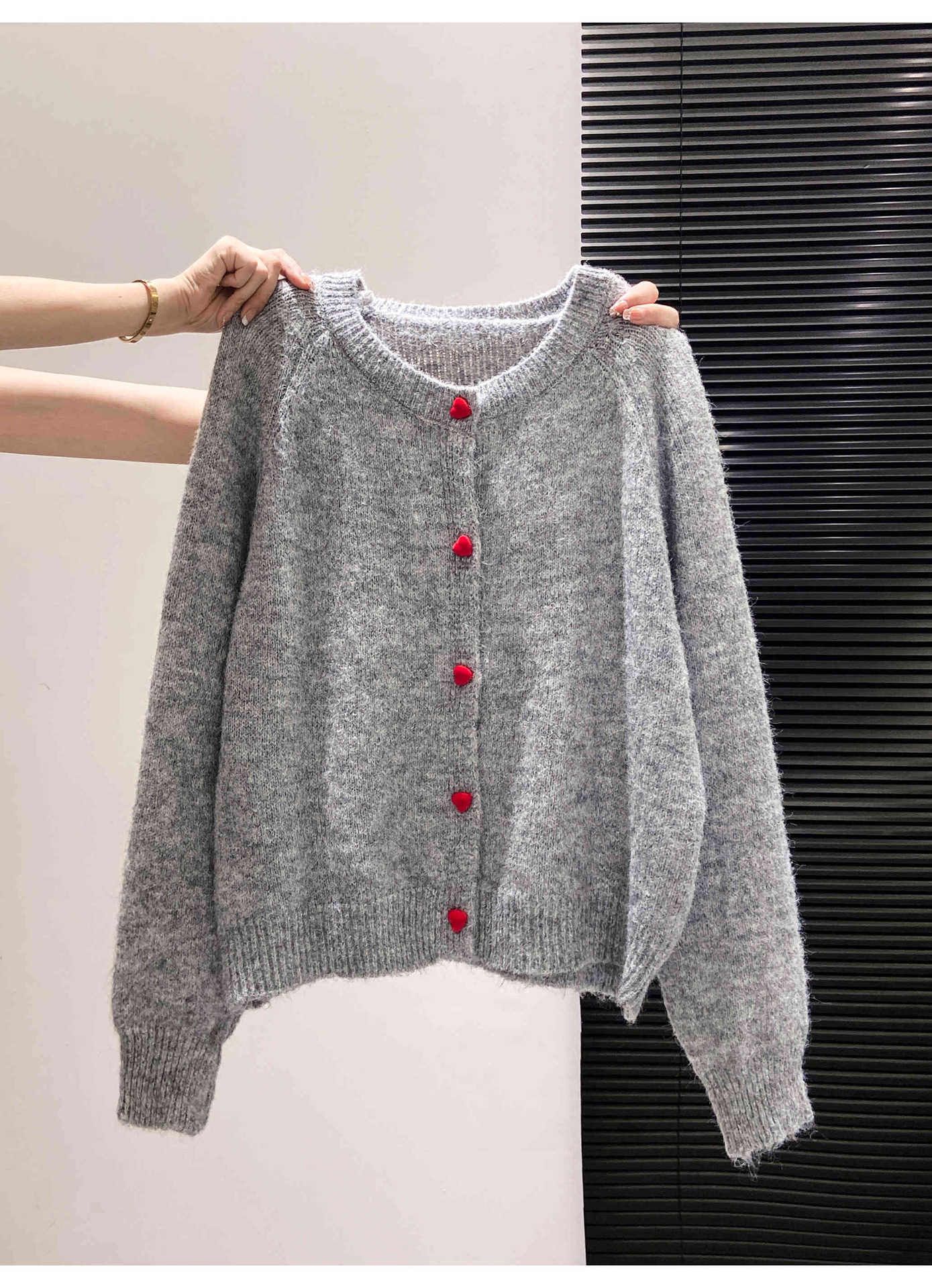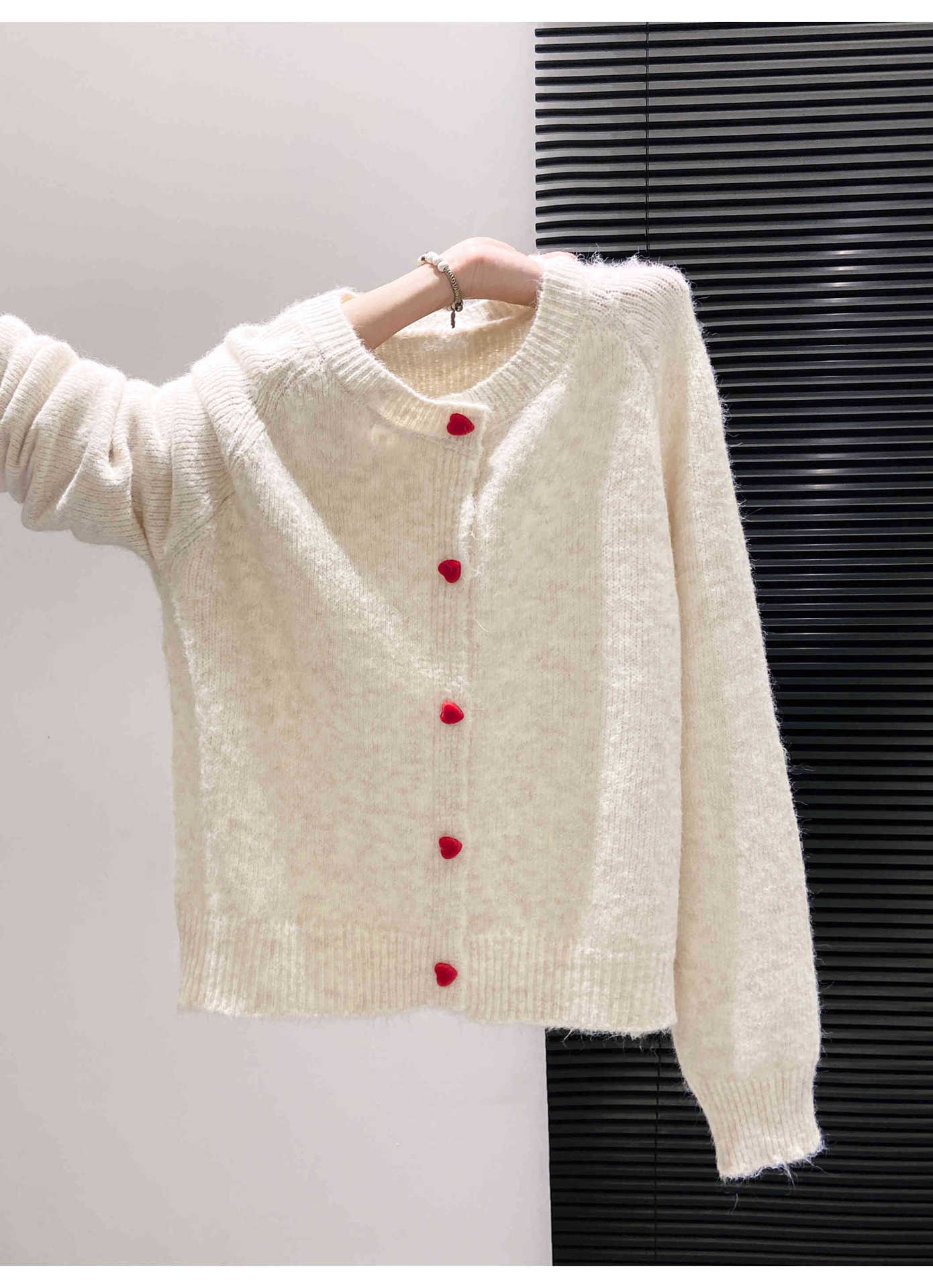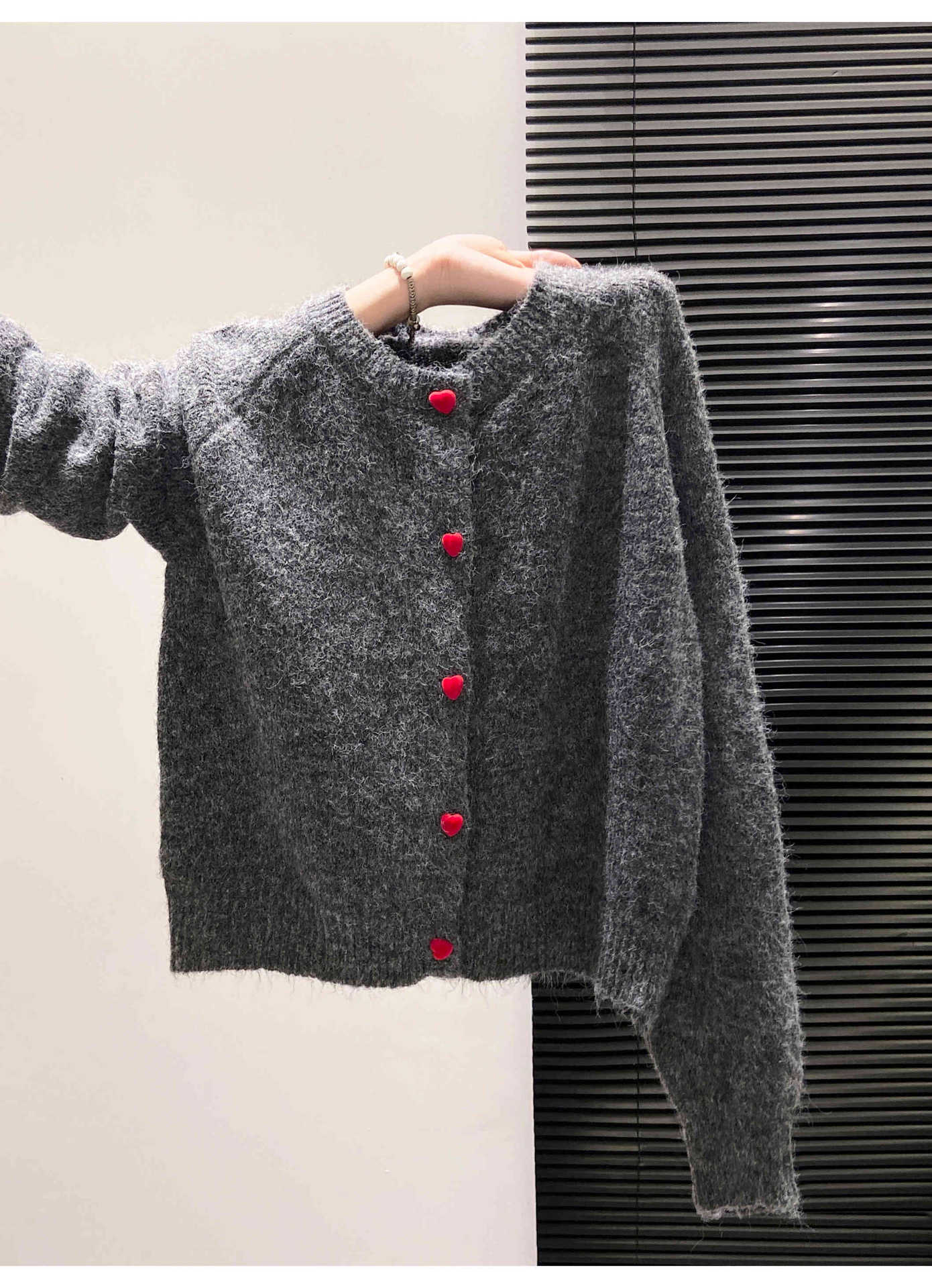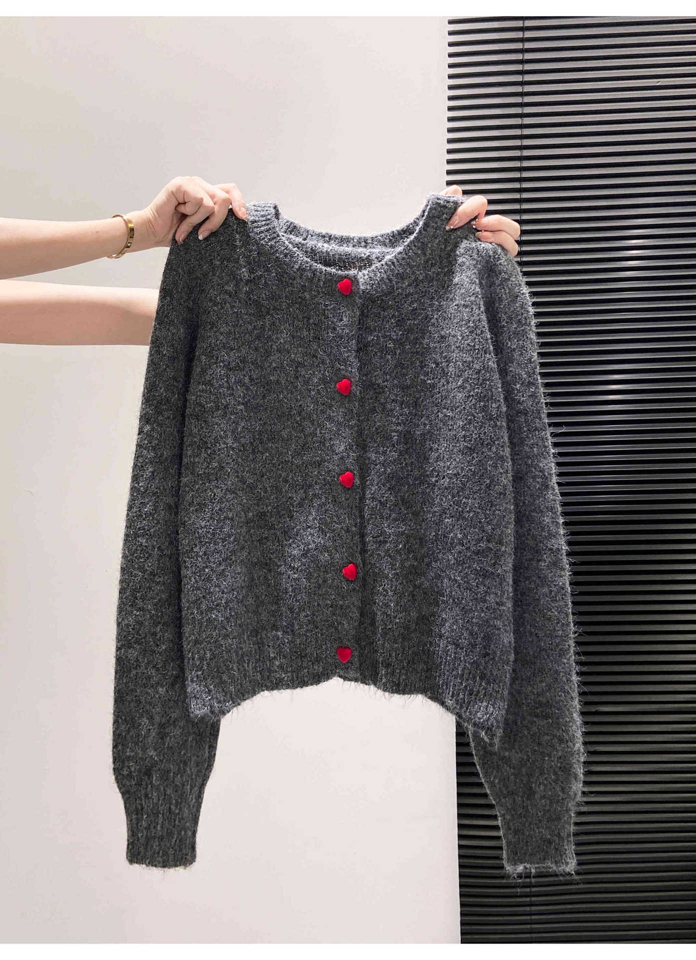 Cárdigan de punto suelto chic con diseño de botón de corazón, nuevo para otoño e invierno para mujer, chic, suave y glutinoso, abrigo superior de punto suelto