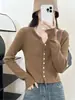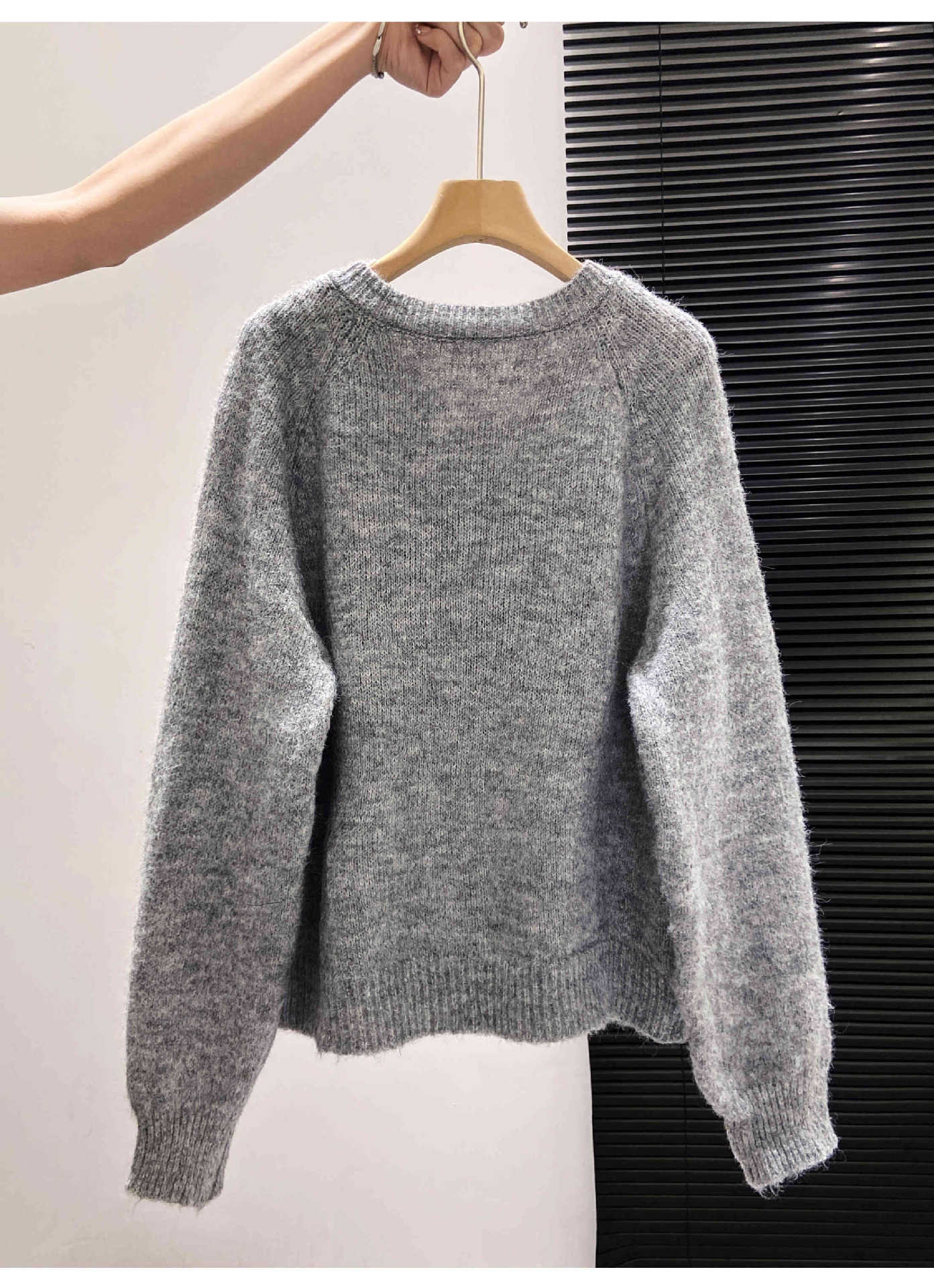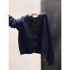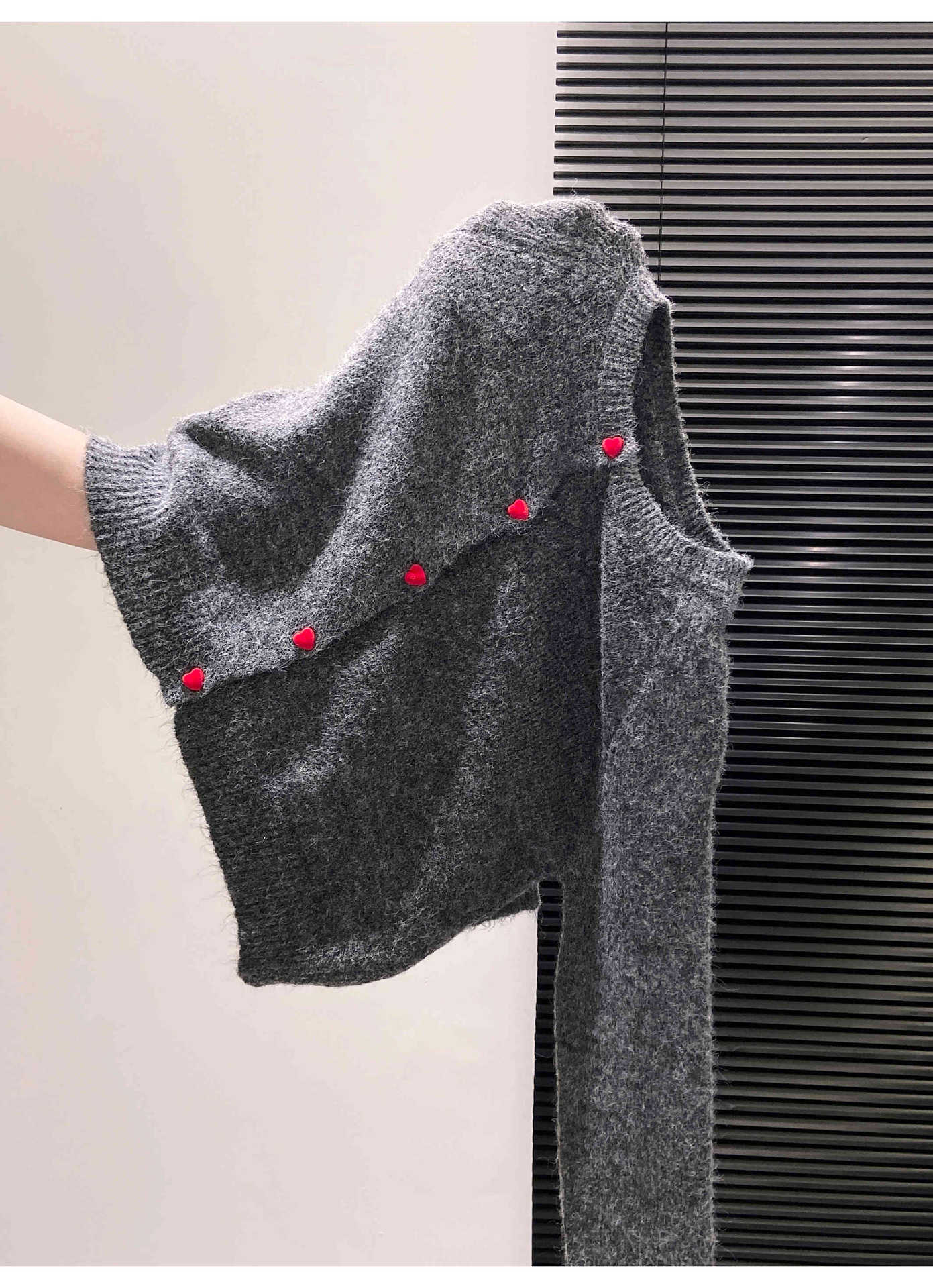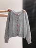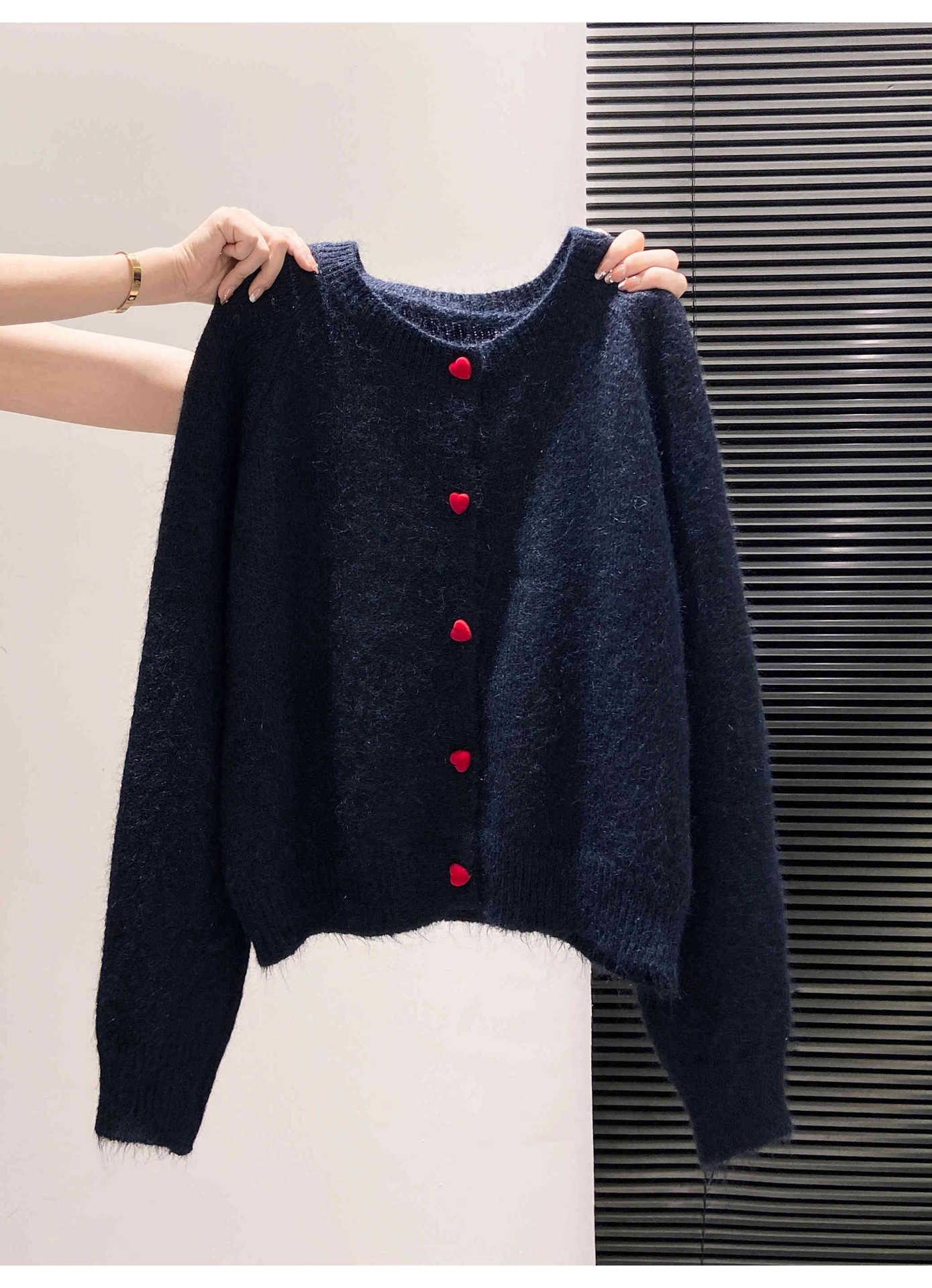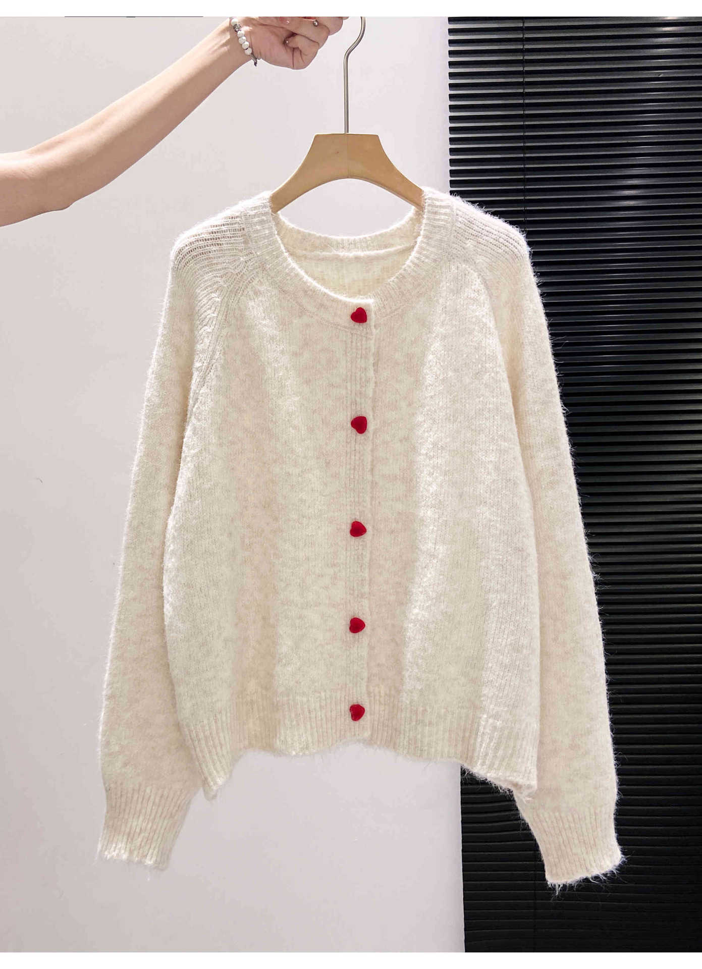 Cárdigan de punto suelto chic con diseño de botón de corazón, nuevo para otoño e invierno para mujer, chic, suave y glutinoso, abrigo superior de punto suelto