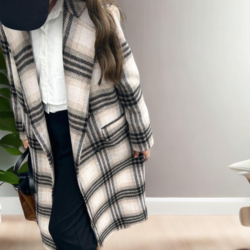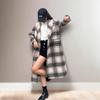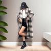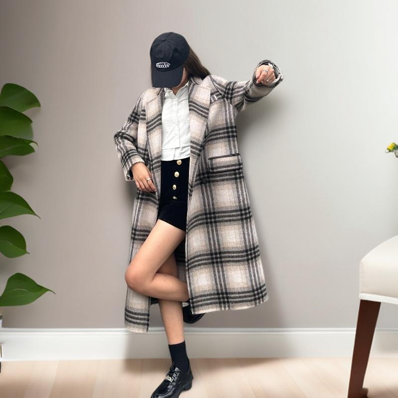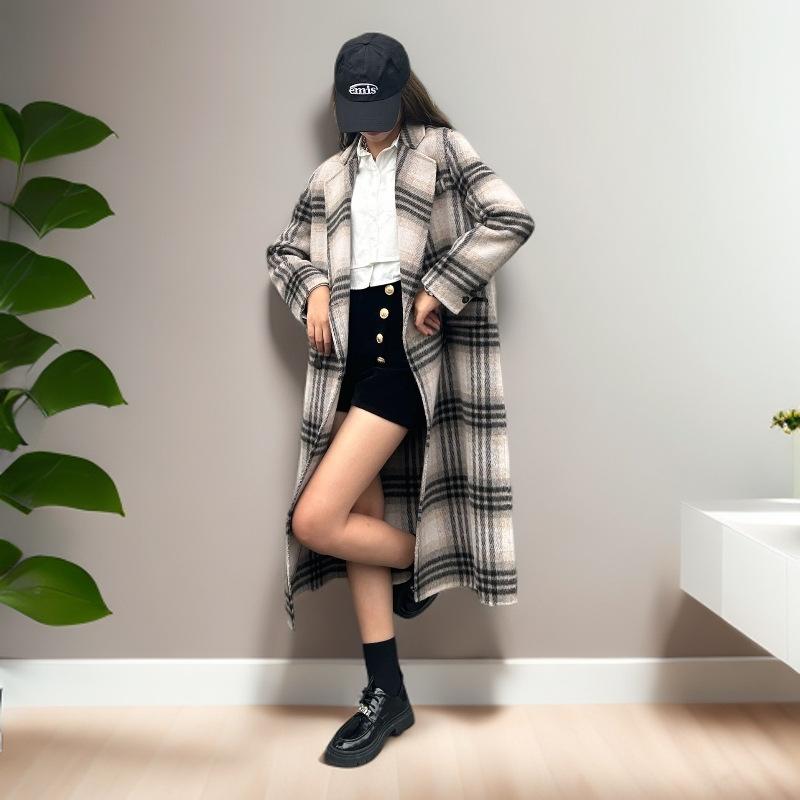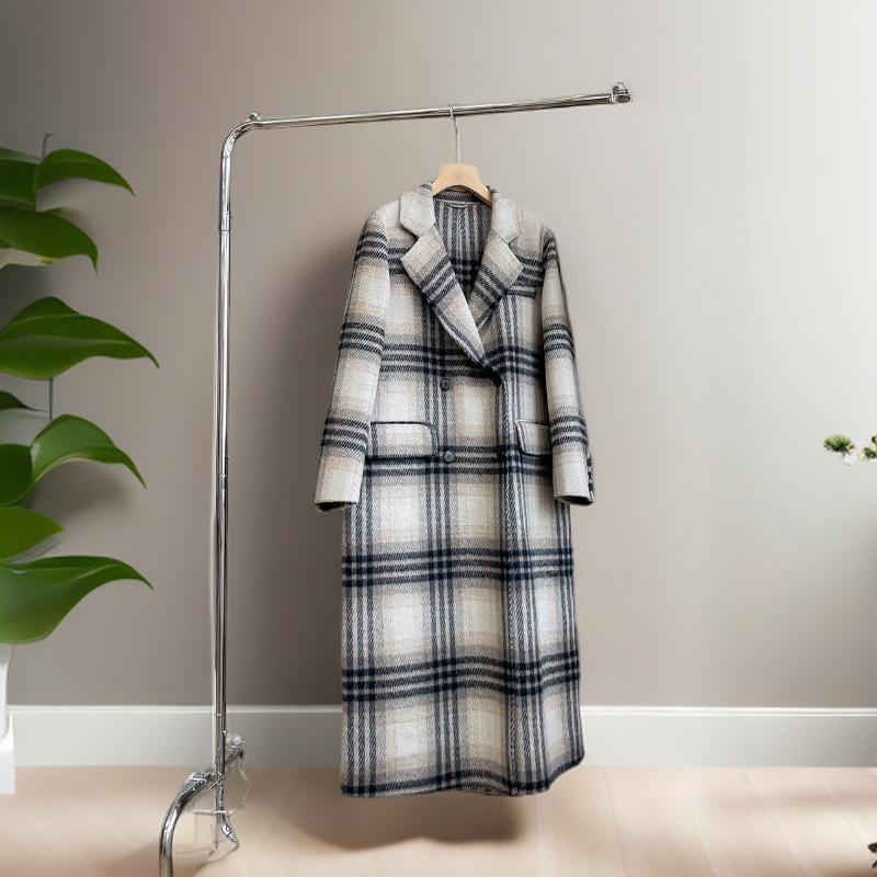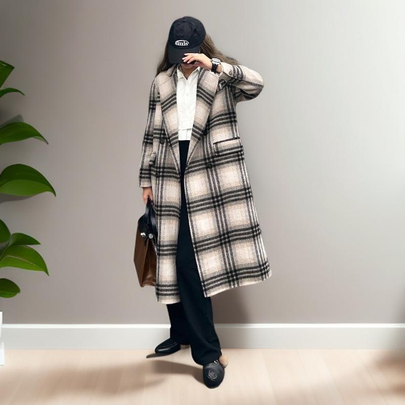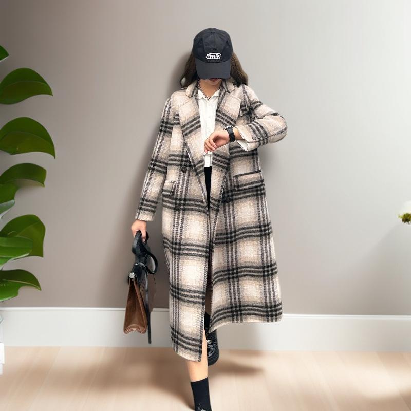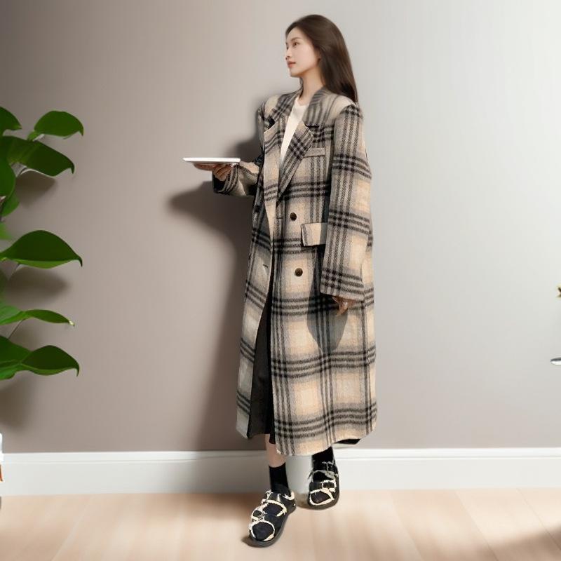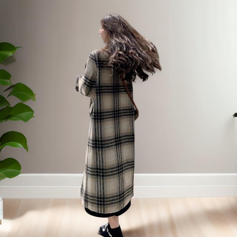 Abrigo de cuadros para mujer de cachemira de doble cara largo 2025 nuevo otoño/invierno suelto de lana temperamento socialité