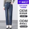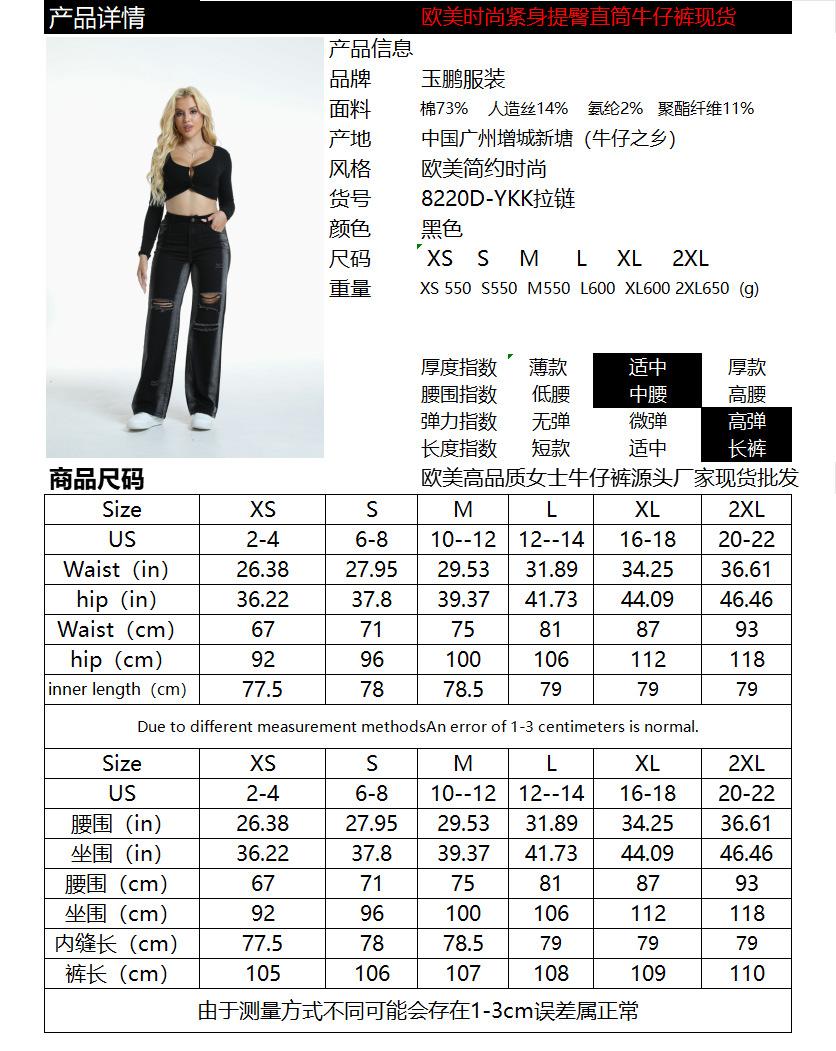 Punto de Fábrica Transfronterizo Jeans de Talla Grande para Mujer Europeos y Americanos Pantalones de Mezclilla Rectos Adelgazantes de Cintura Alta Rasgados Largos para Mujer