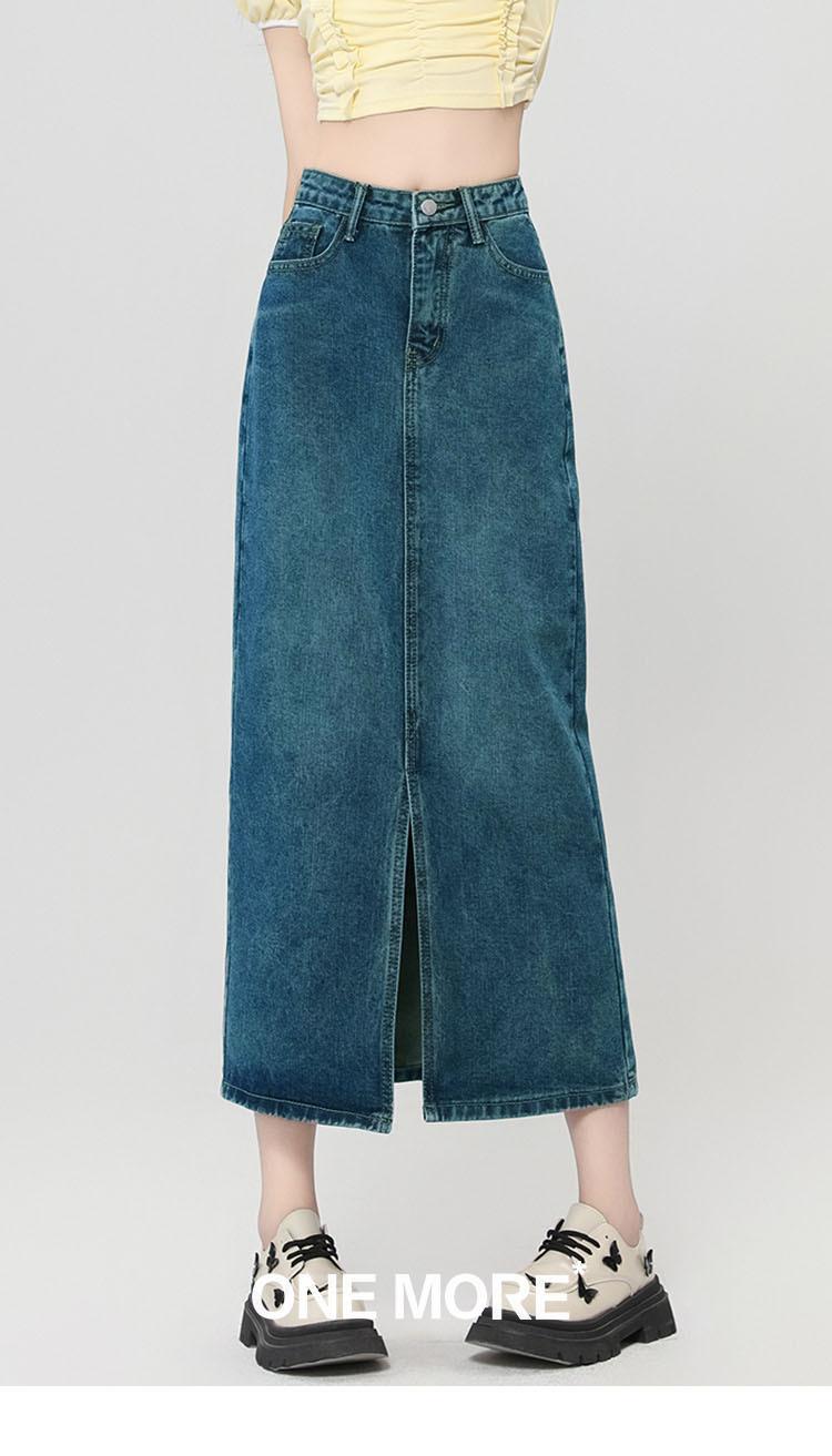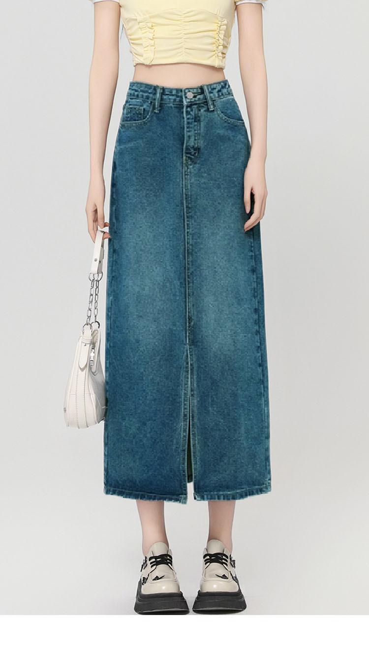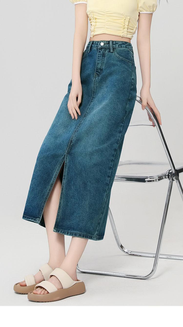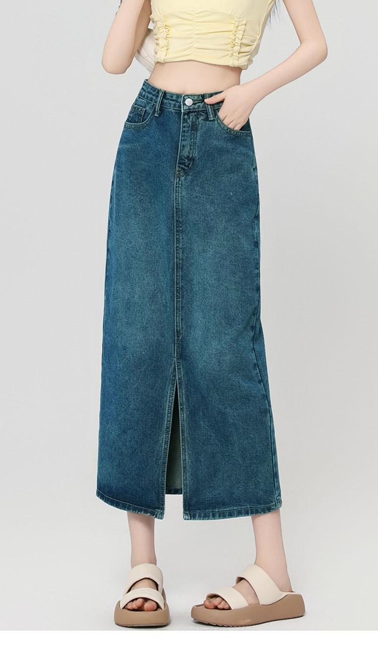 Falda Midi de Mezclilla Cómoda Adelgazante con Abertura 2025 Moda Adelgazante Cintura Alta Nueva Falda Ceñida a las Caderas Ropa Vintage para Mujer
