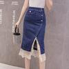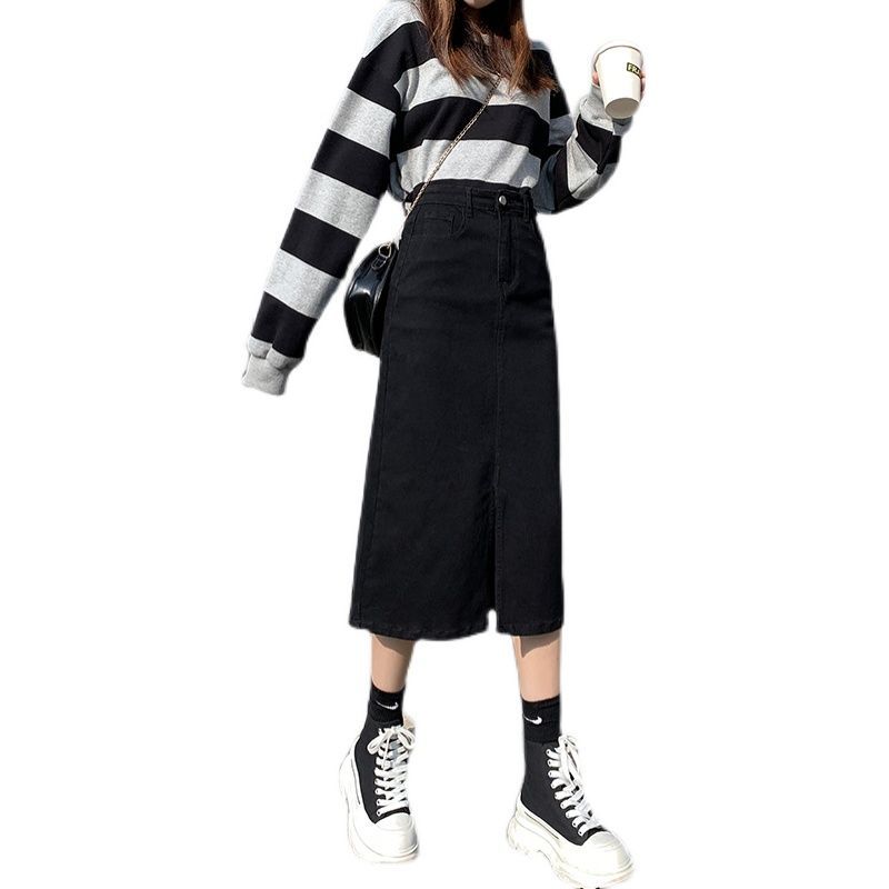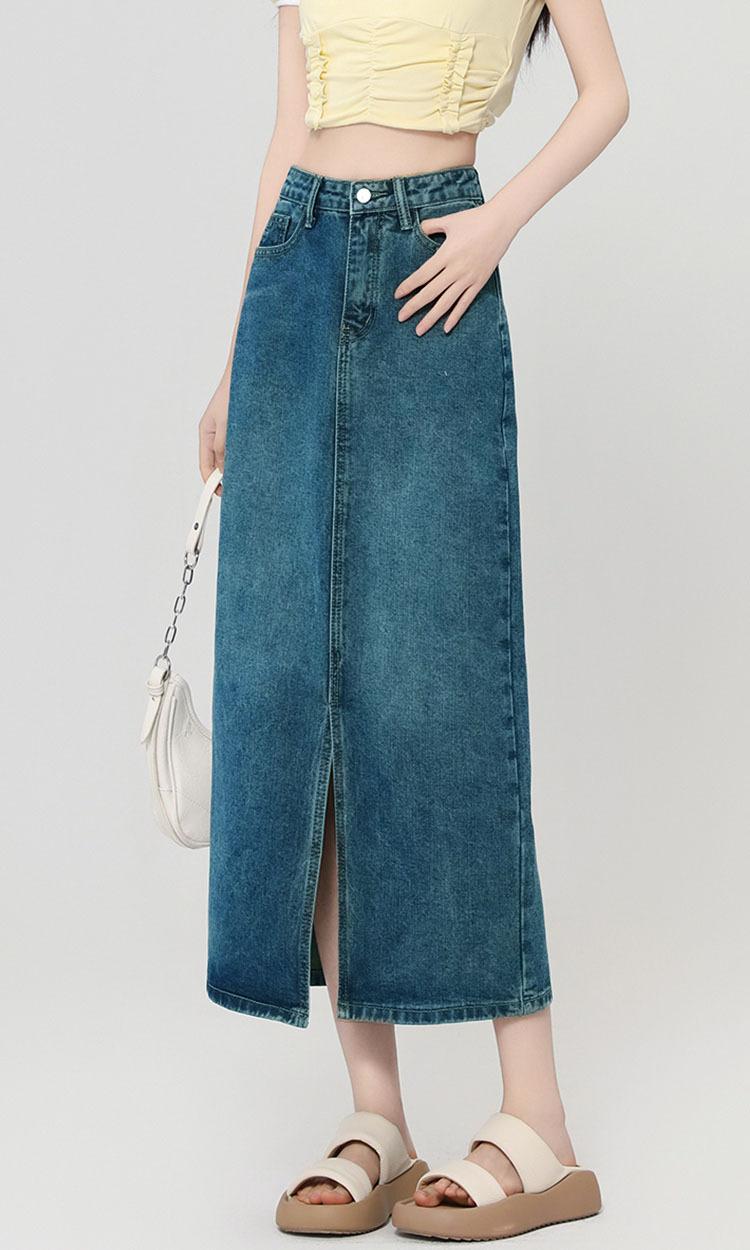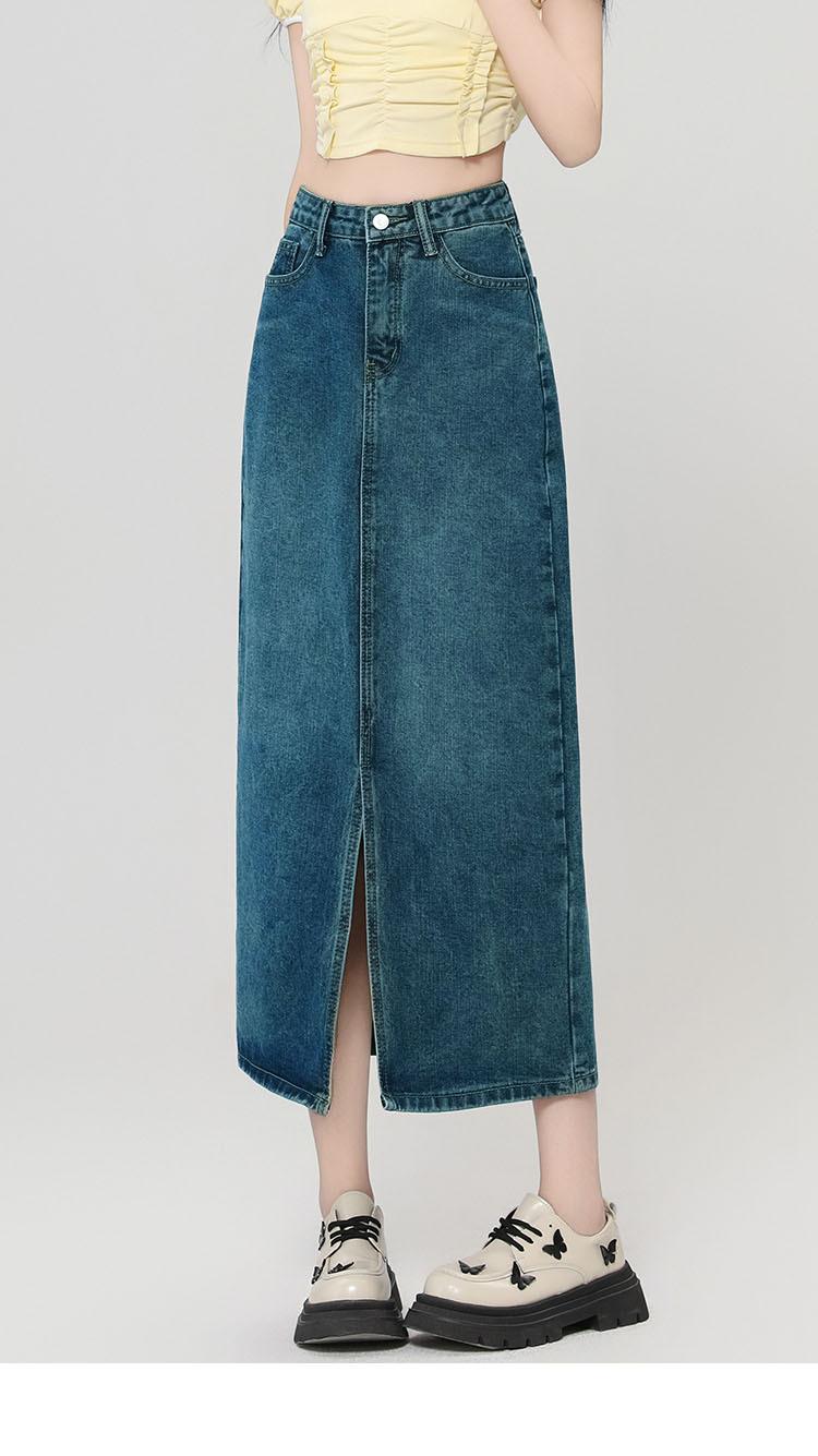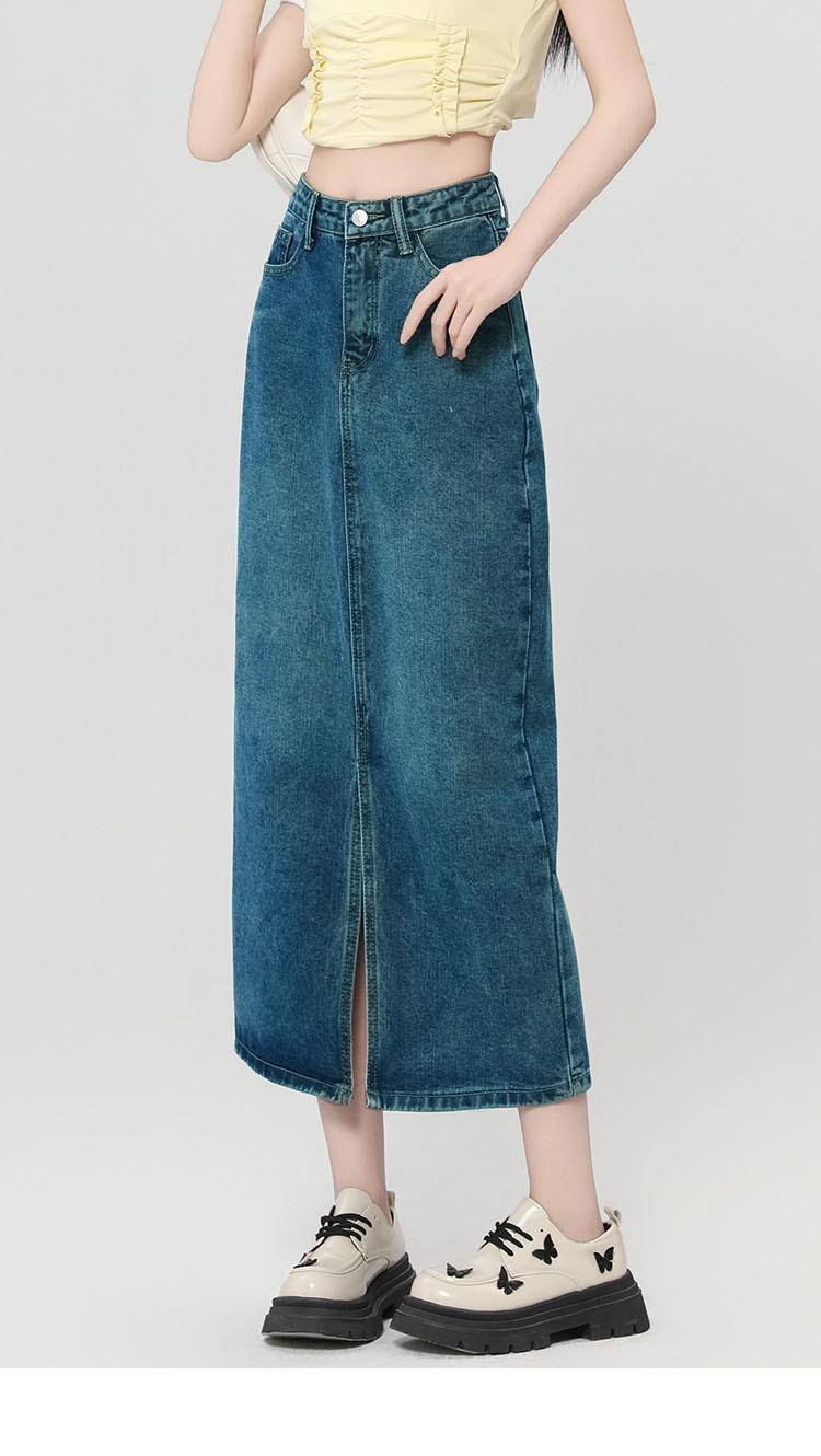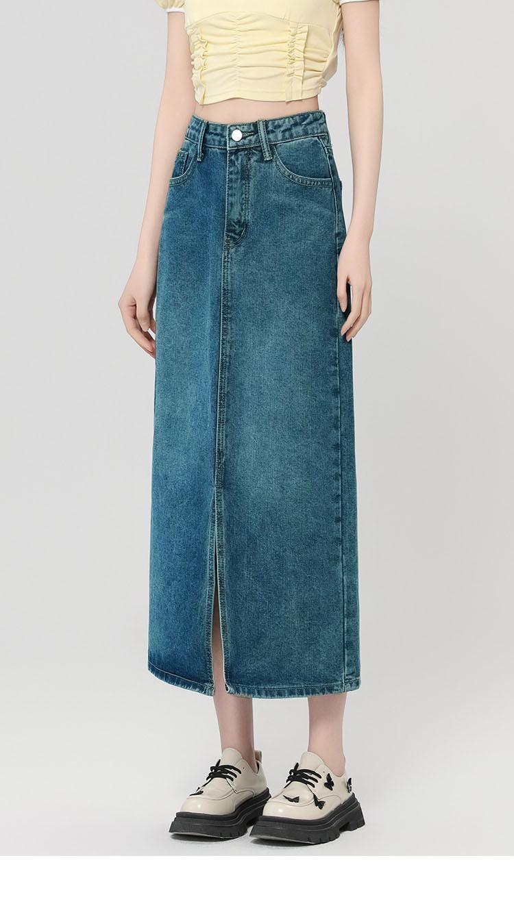 Falda Midi de Mezclilla Cómoda Adelgazante con Abertura 2025 Moda Adelgazante Cintura Alta Nueva Falda Ceñida a las Caderas Ropa Vintage para Mujer