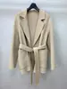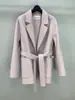 Abrigo Chaqueta de Lana de Doble Vista Estilo Traje 25 Invierno Recto Largo Medio Ropa de Trabajo Simple Pequeño con Cordones Suelto