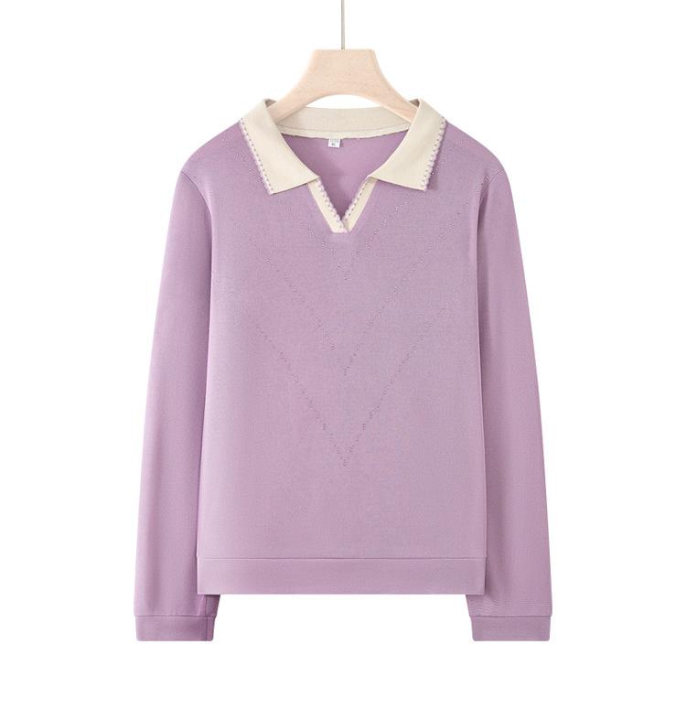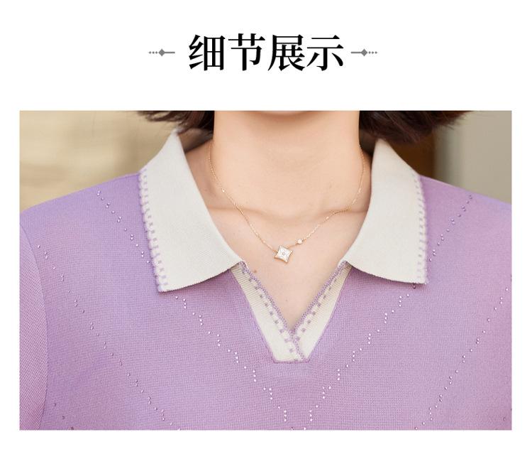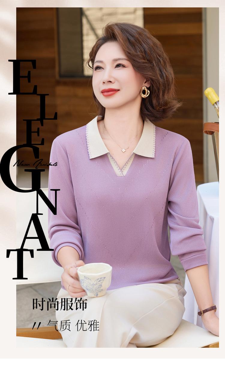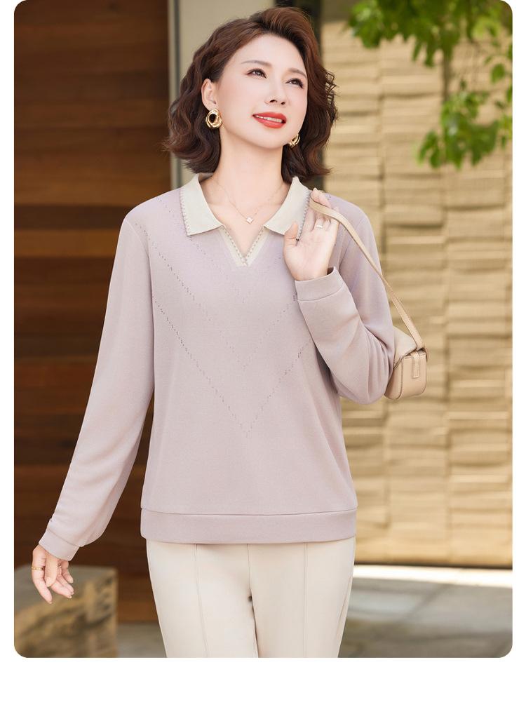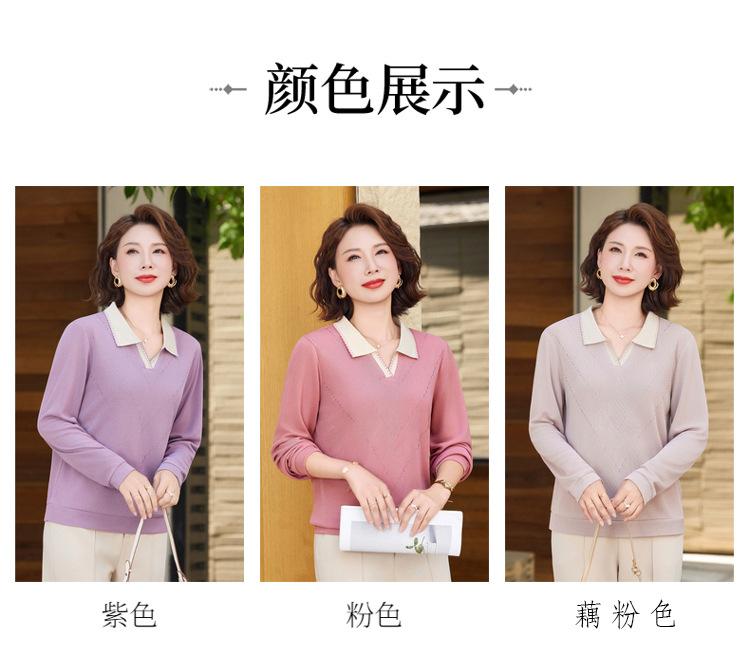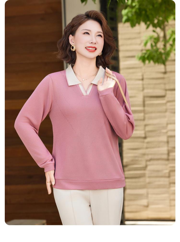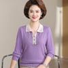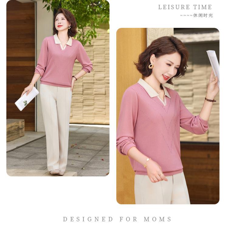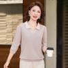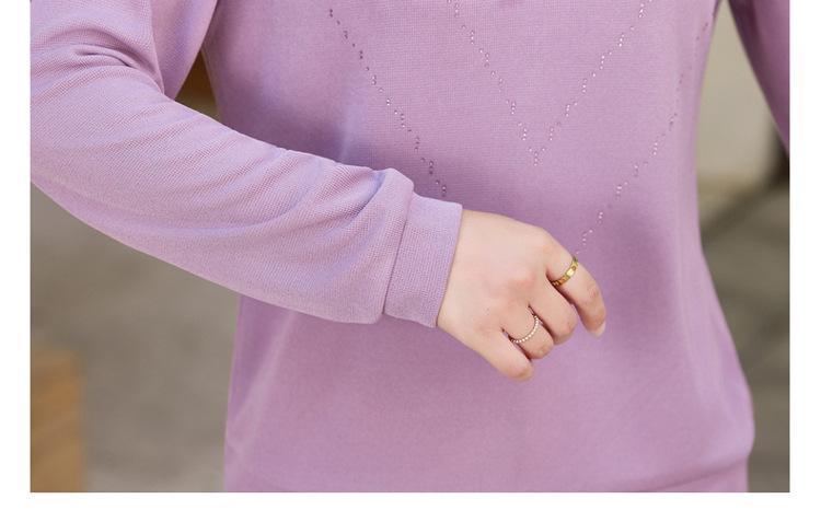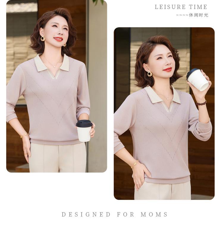 Otoño Ropa Nueva para Madres Manga Larga Cuello Vuelto Top de Punto Estilo Extranjero Talla Grande Ropa para Mujeres de Mediana Edad y Mayores Camiseta Base